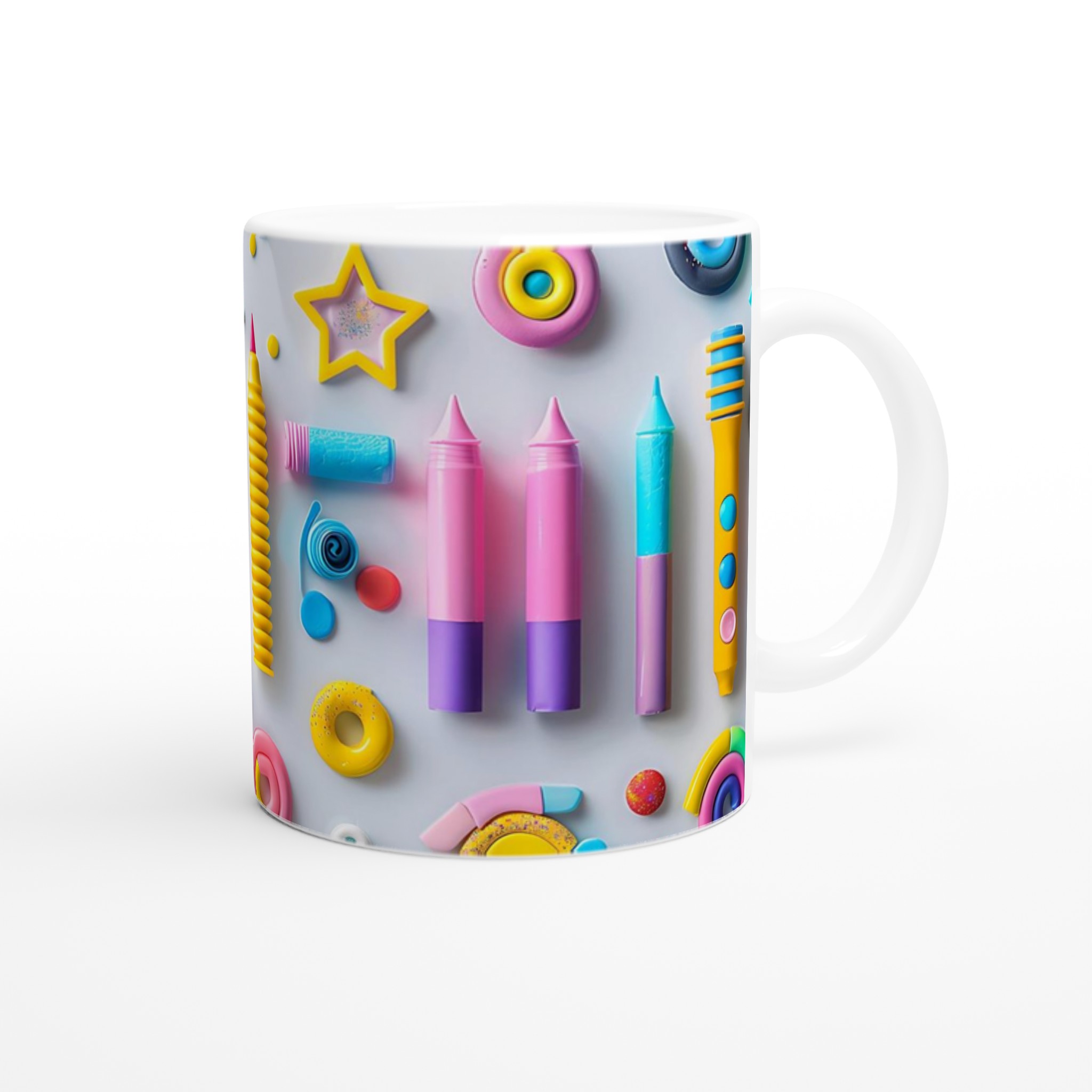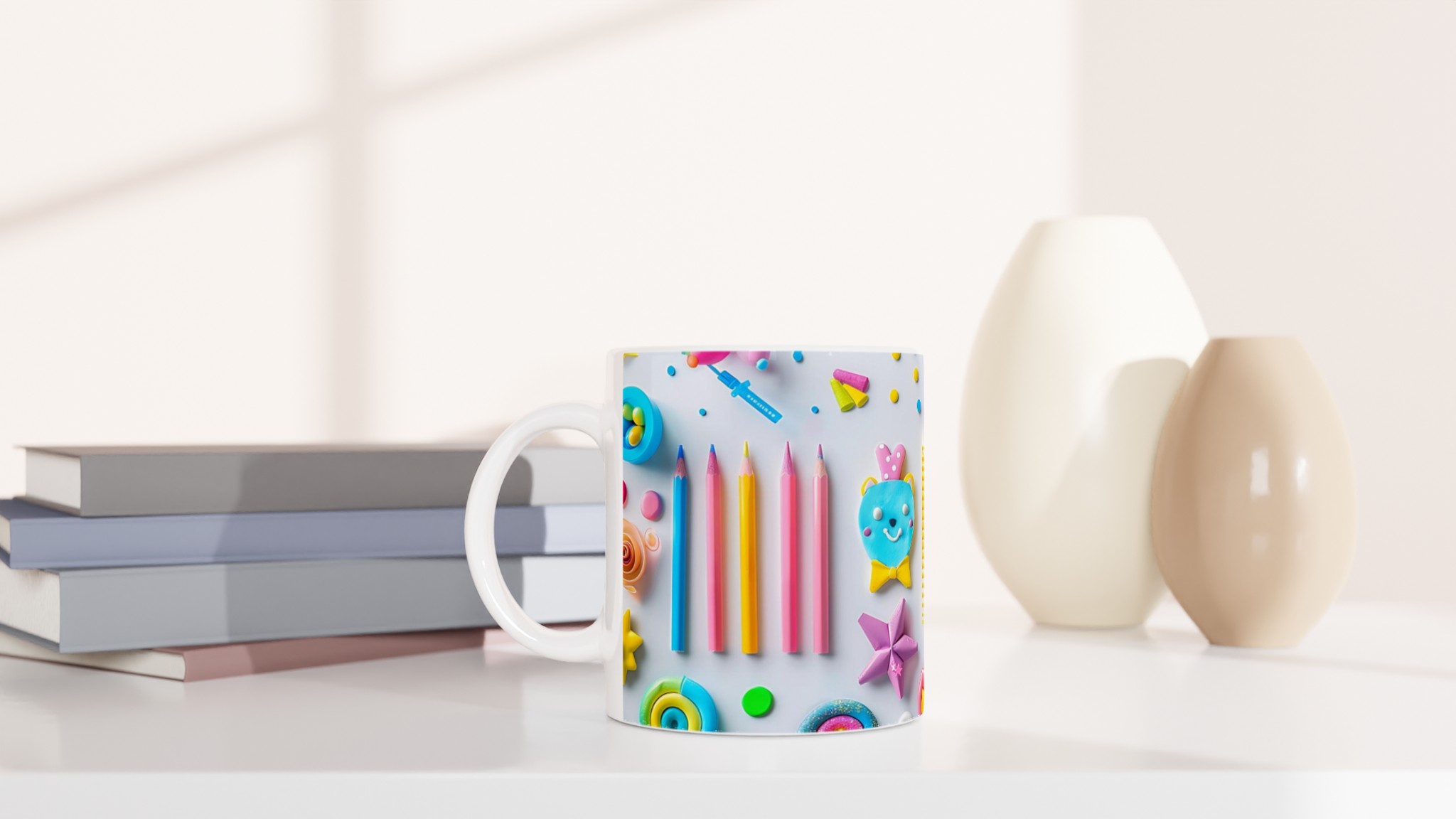 Gör varje fika till en fest med vår livfulla keramiska mugg! Inspirerad av den lekfulla charmen och de mjuka pastellfärgerna i bilden, blir den här muggen snabbt en favorit som sprider glädje och färg i din vardag. Perfekt för morgonkaffet, kvällens varma choklad eller när du bara vill njuta av en kopp te. Den blanka ytan framhäver trycken med klara och levande färger, som håller sig fina även efter många turer i mikron och diskmaskinen.