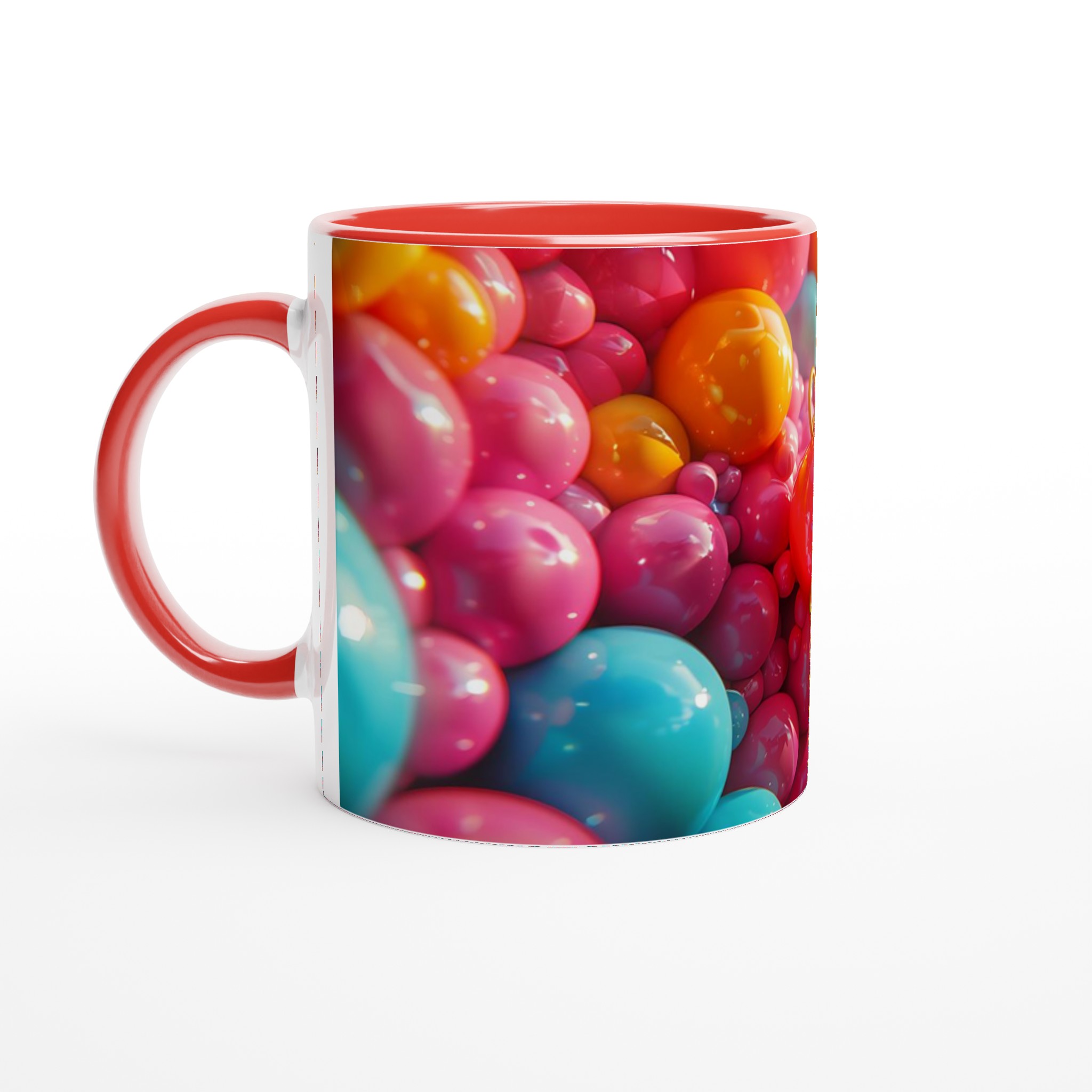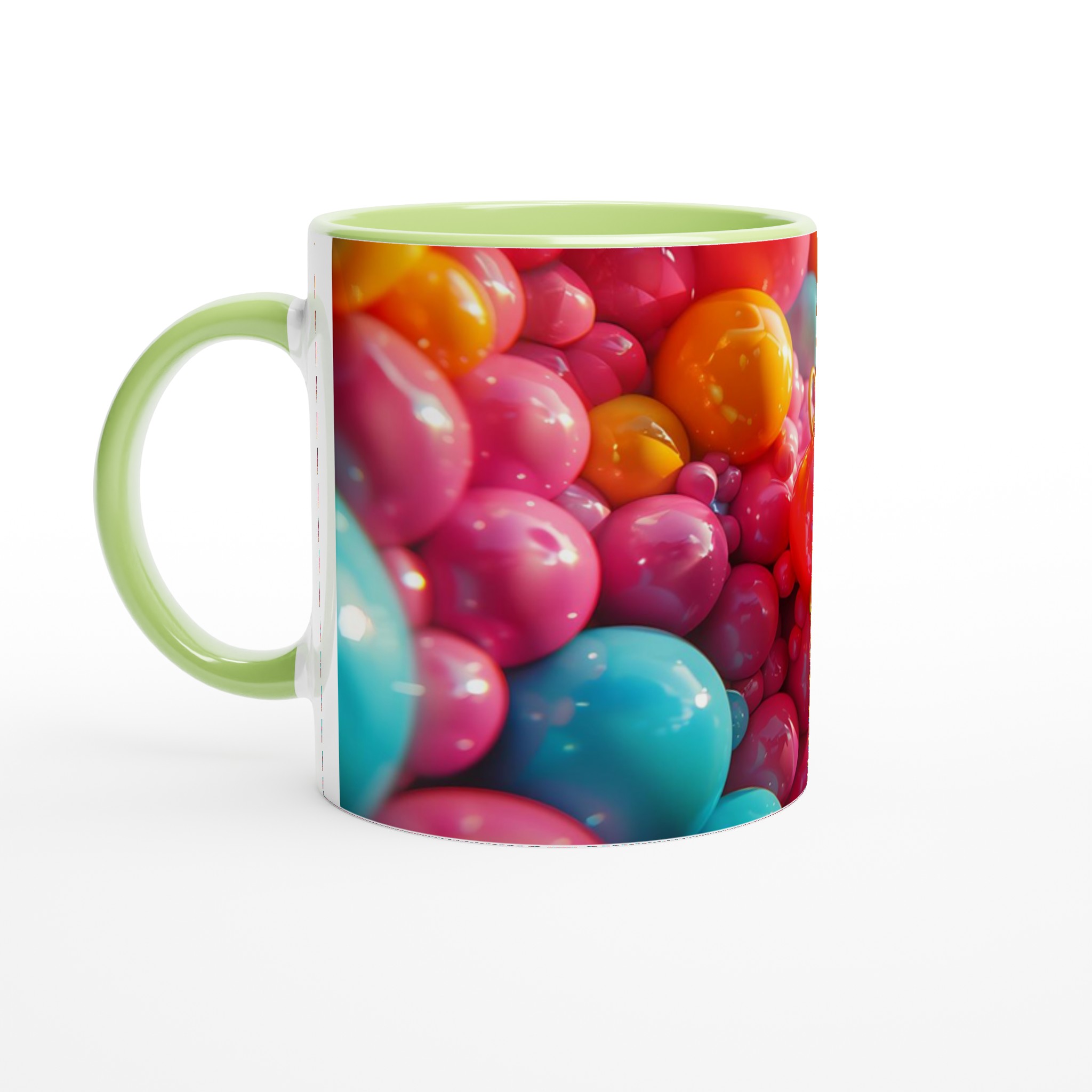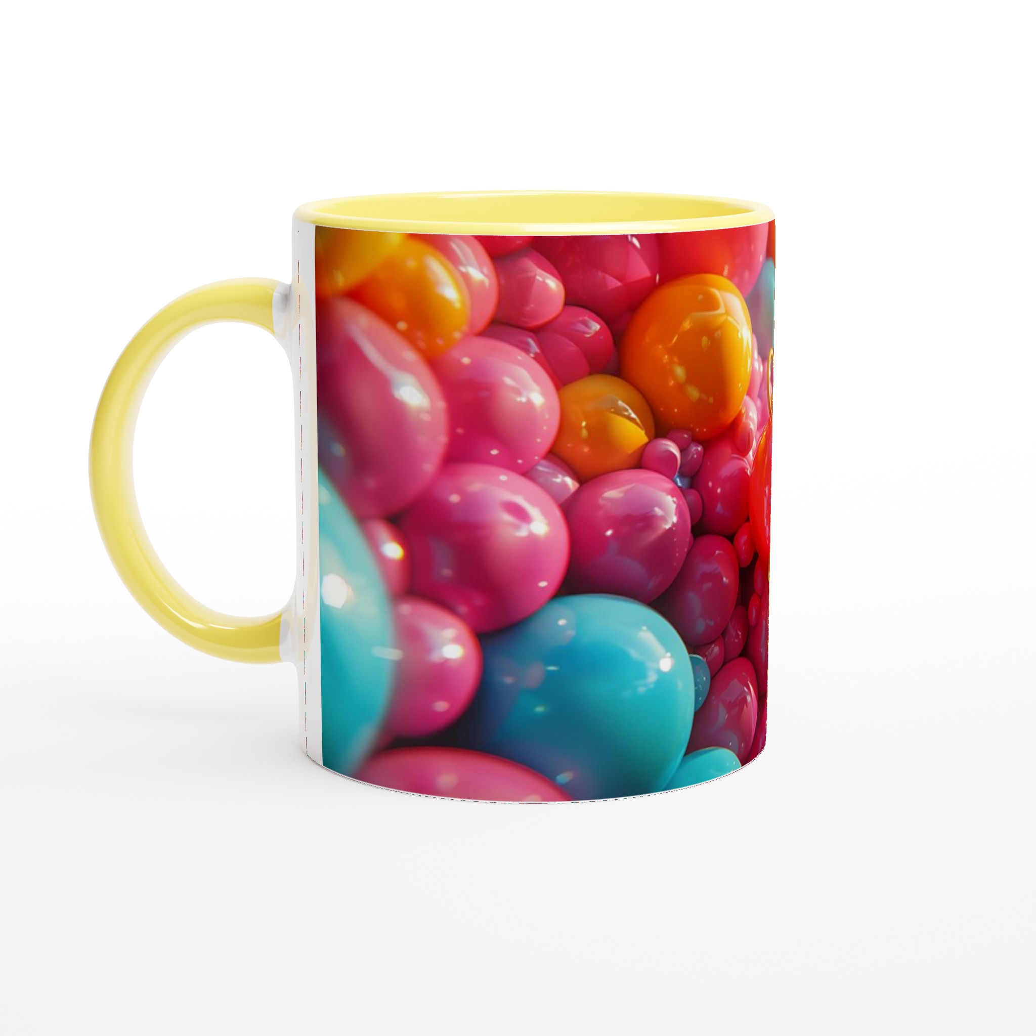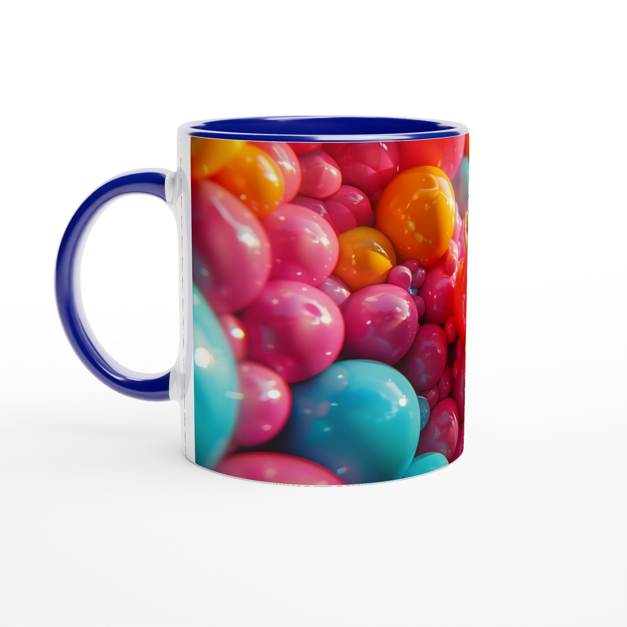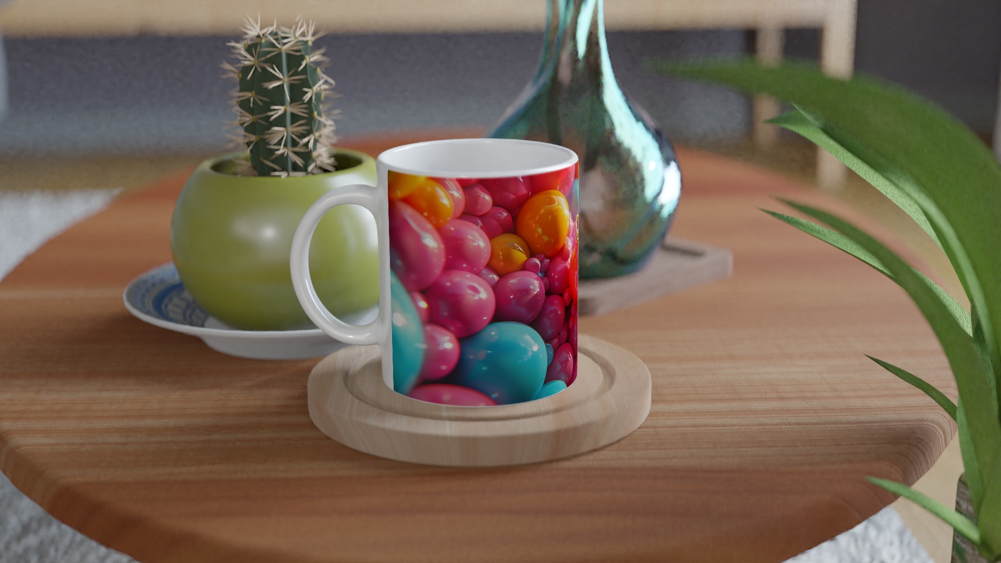 Öppna dörren till din perfekta fikapaus med den här livfulla keramiska muggen! Inspirerad av en värld av lekfulla färger och glänsande ytor, blir denna mugg snabbt en favorit som lyser upp din dag. Den är perfekt för morgonkaffet som väcker dig, kvällens mysiga varma choklad eller när du bara vill njuta av en lugn kopp te. Den blanka ytan får ditt valda tryck att framhävas med klara och levande färger, som håller sig fina även efter otaliga turer i mikron och diskmaskinen.