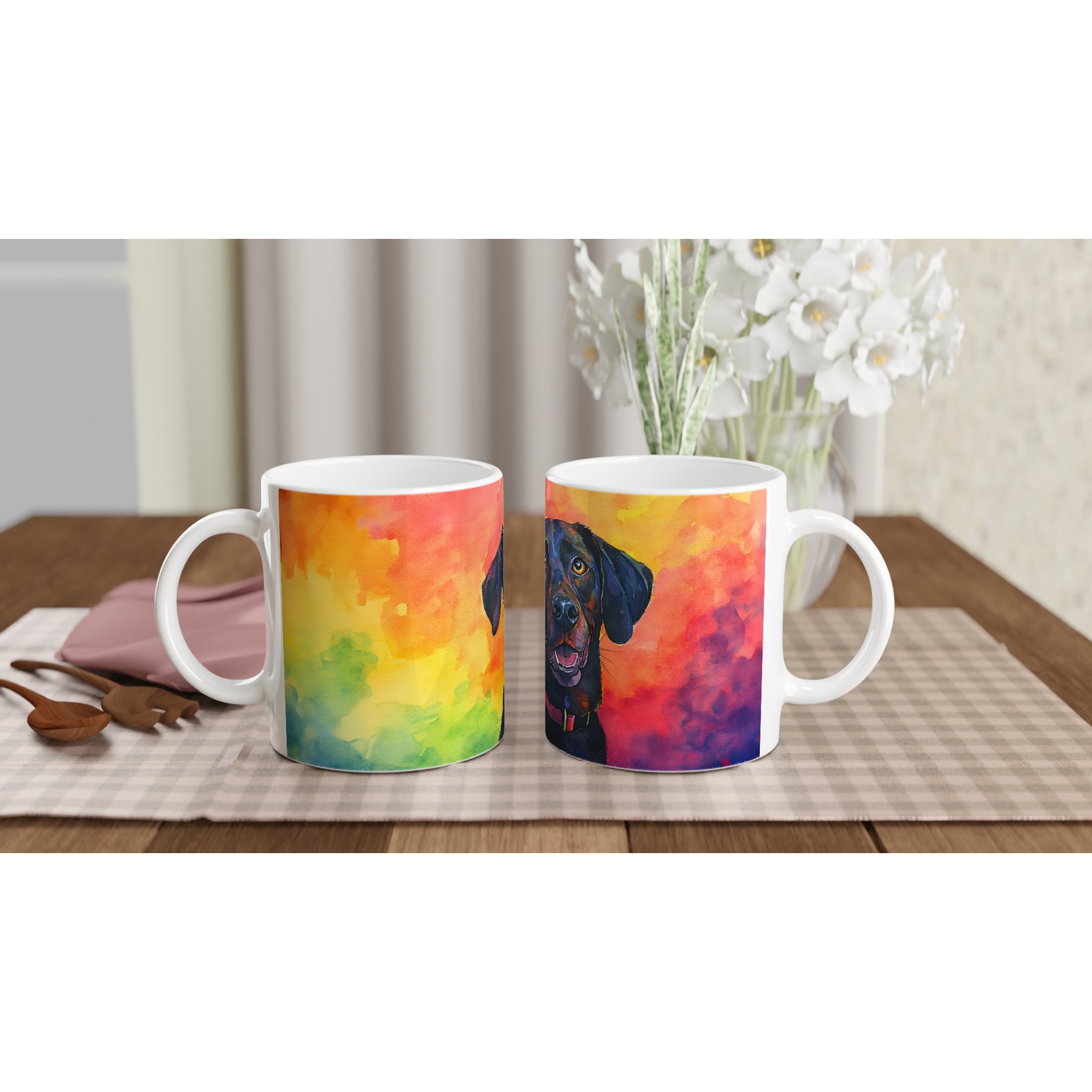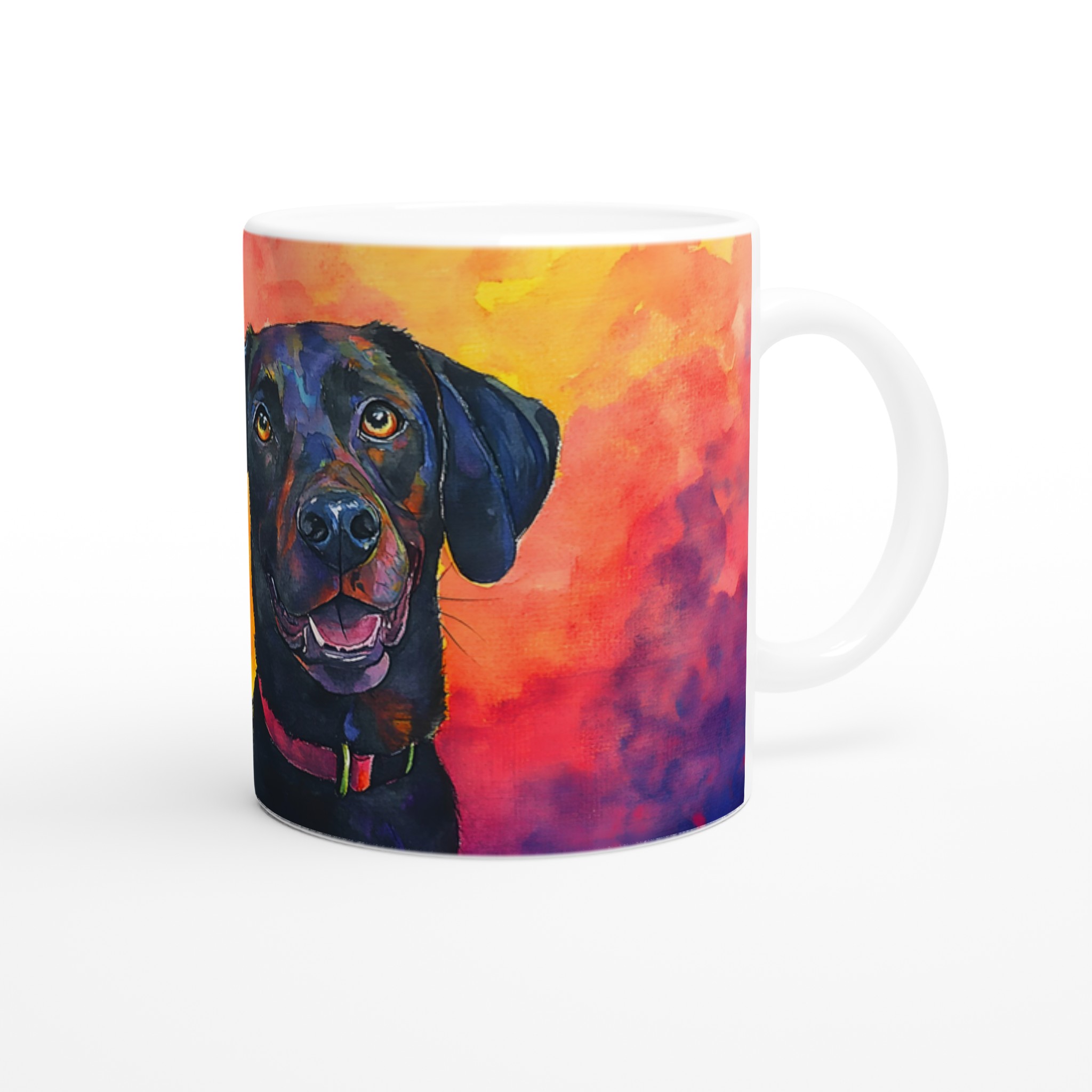 Lys upp varje fikapaus med denna unikt konstnärliga keramikmugg, prydd med en livfull labrador i en akvarellinspirerad stil. De rika färgerna och det glada uttrycket hos hunden, mot en bakgrund av böljande regnbågsnyanser, skapar en känsla av glädje och kreativitet. Denna mugg är perfekt för dig som älskar hundar och uppskattar konstnärliga uttryck i vardagen, vare sig det är för morgonkaffet, en värmande kopp te eller en härlig varm choklad.