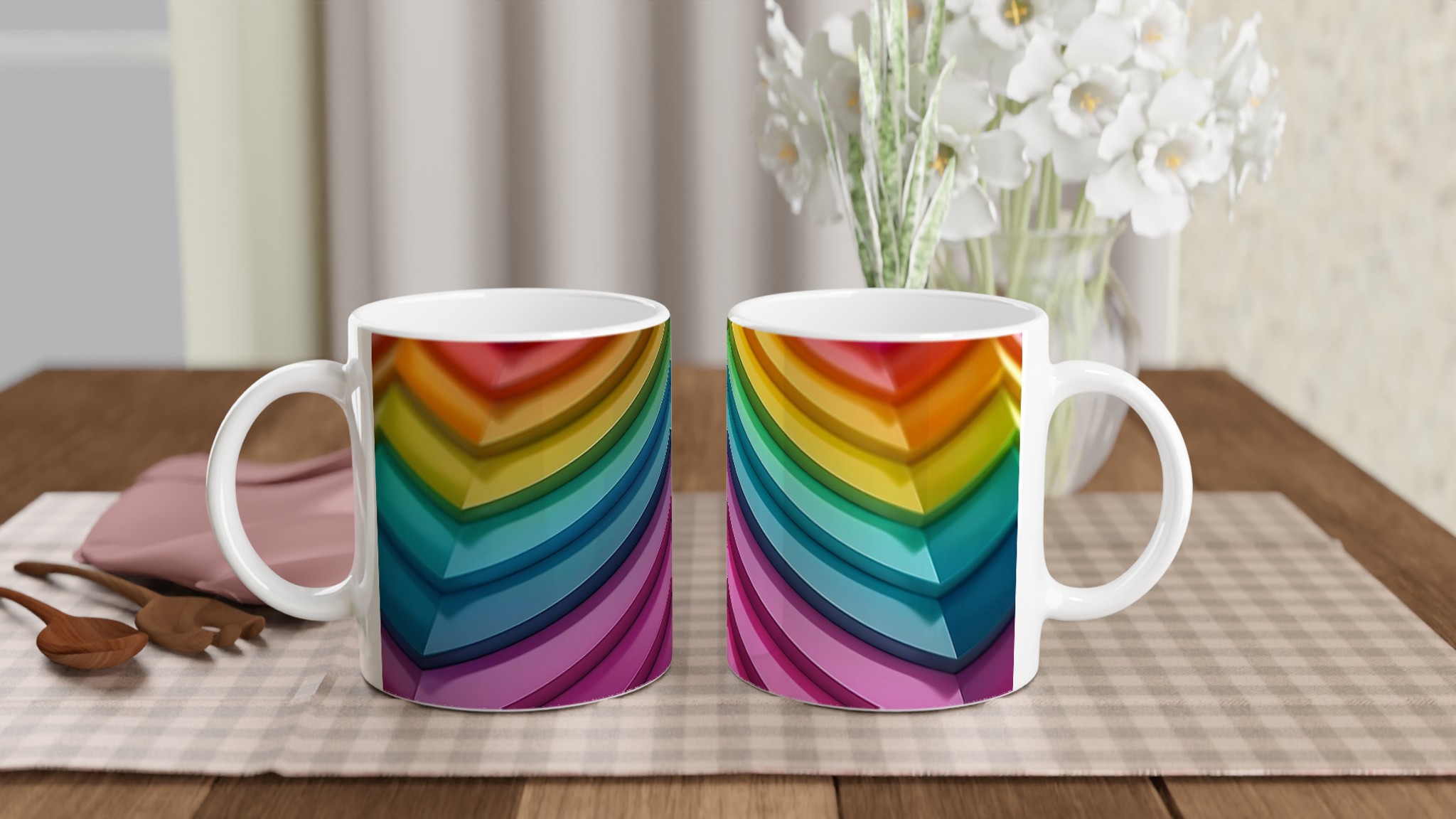 Lys upp varje fikapaus med denna stilrena och vackra keramikmugg, perfekt för alla dagens stunder – morgonkaffet, en värmande kopp te eller en härlig varm choklad. Den blanka vita ytan gör att trycken framträder klart och färgstarkt, vilket gör muggen till en riktig favorit i vardagen. Föreställ dig den sprudlande glädjen när du varje dag använder en mugg som strålar av regnbågens alla färger – det är som en daglig dos av positiv energi direkt i din hand. Välj din favoritfärg för att matcha ditt humör eller samla alla för en verkligt levande samling!