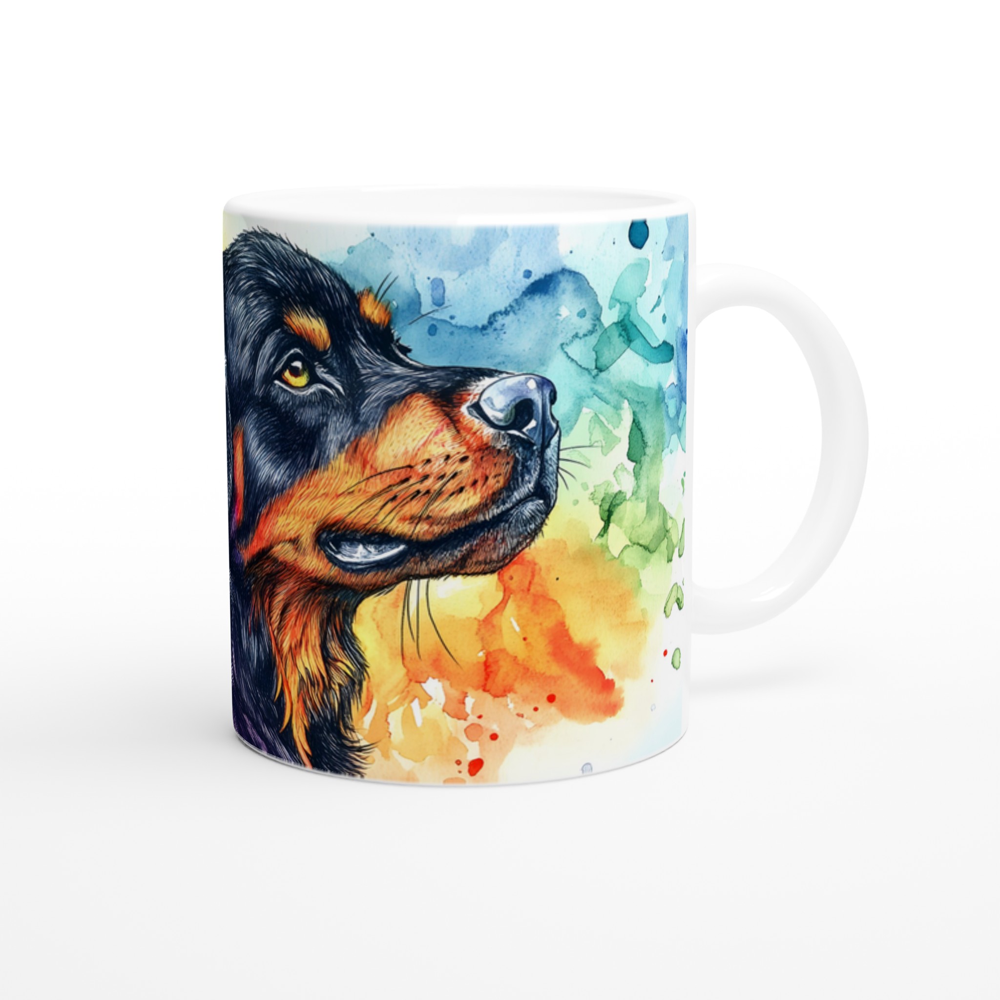 Muggen rymmer 11 oz (ca 3,25 dl), en lagom storlek för både jobb och hemmabruk. Den passar lika bra som en personlig vardagsmugg som en uppskattad present till familj, vänner eller kollegor. Ge bort en bit konst och glädje – perfekt för djurälskare och konstentusiaster! Beställ din unika Rottweiler-mugg idag och låt varje klunk bli en färgstark upplevelse.