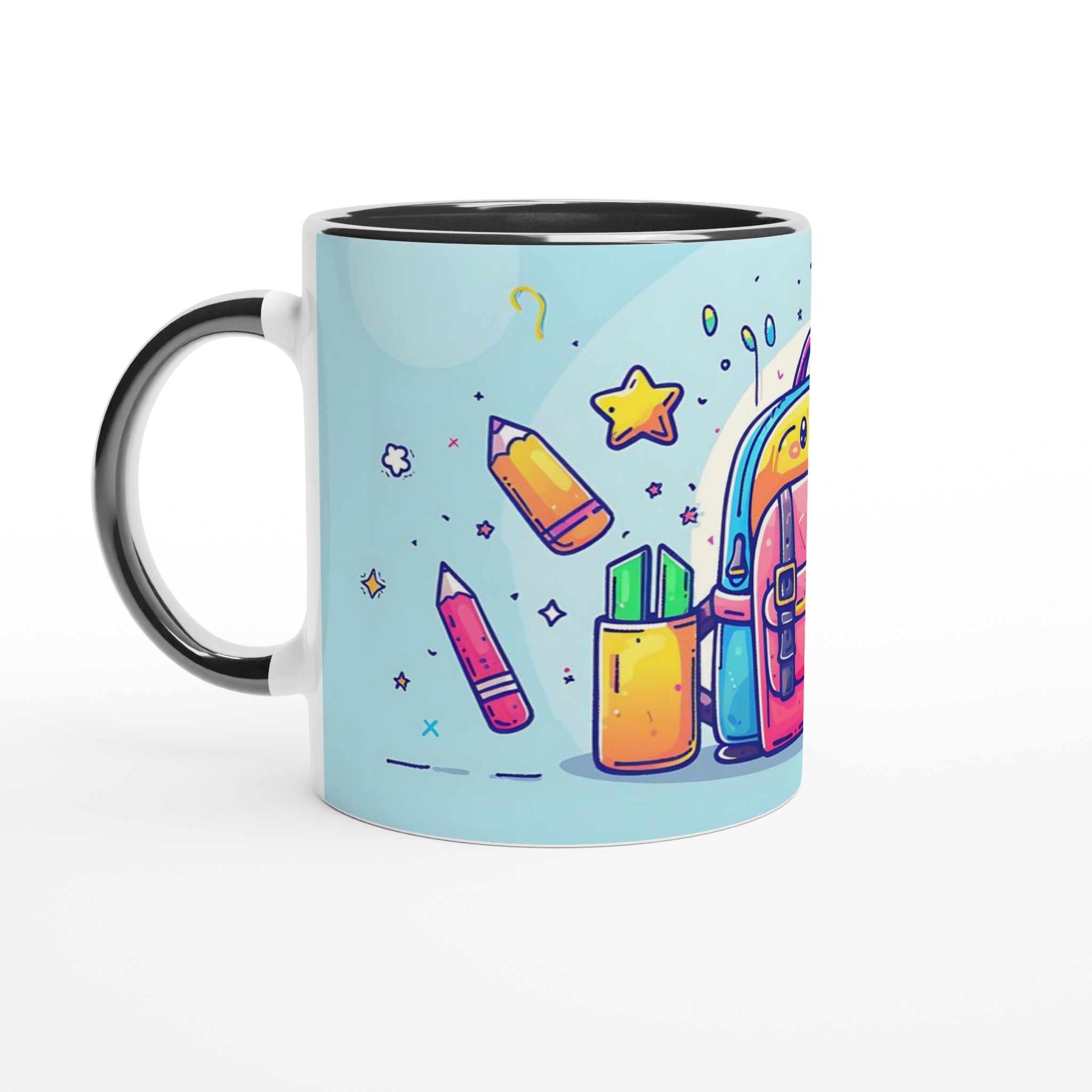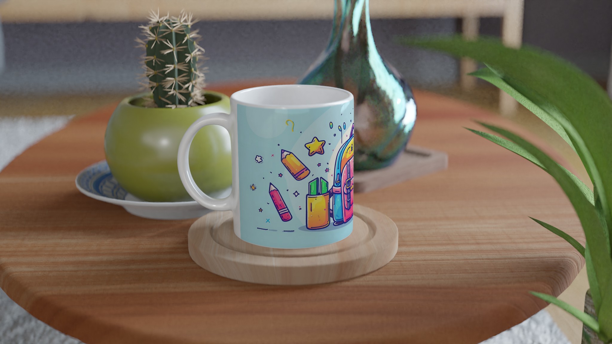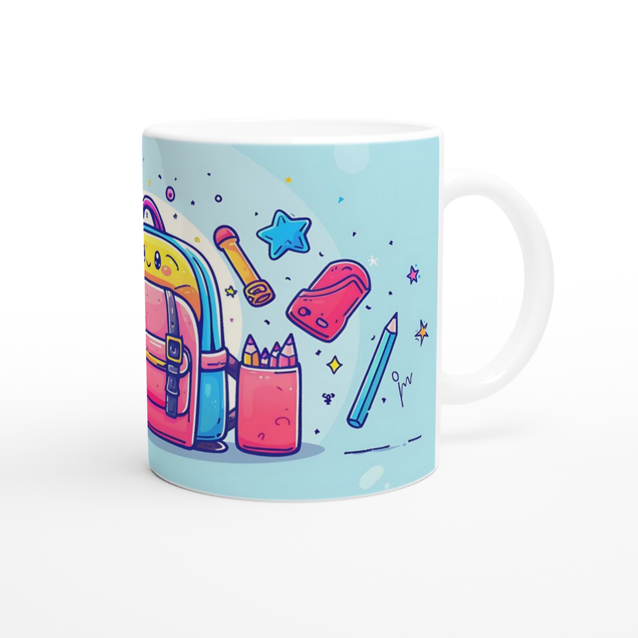 Väck kreativiteten och glädjen med vår ”Färgglad skolstart” keramiska mugg! Denna charmiga mugg är perfekt för alla små konstnärer och skolstartare, med sitt lekfulla motiv av en glad ryggsäck omgiven av pennor och suddgummin i livfulla färger. Det är den perfekta vardagsfavoriten för morgonkaffet (eller snarare, morgonmjölken!), kvällens varma choklad eller närhelst du vill njuta av en mysig stund. Den blanka ytan framhäver trycket med klara och levande färger, som håller sig fina även efter många turer i mikron och diskmaskinen, redo för dagens äventyr.