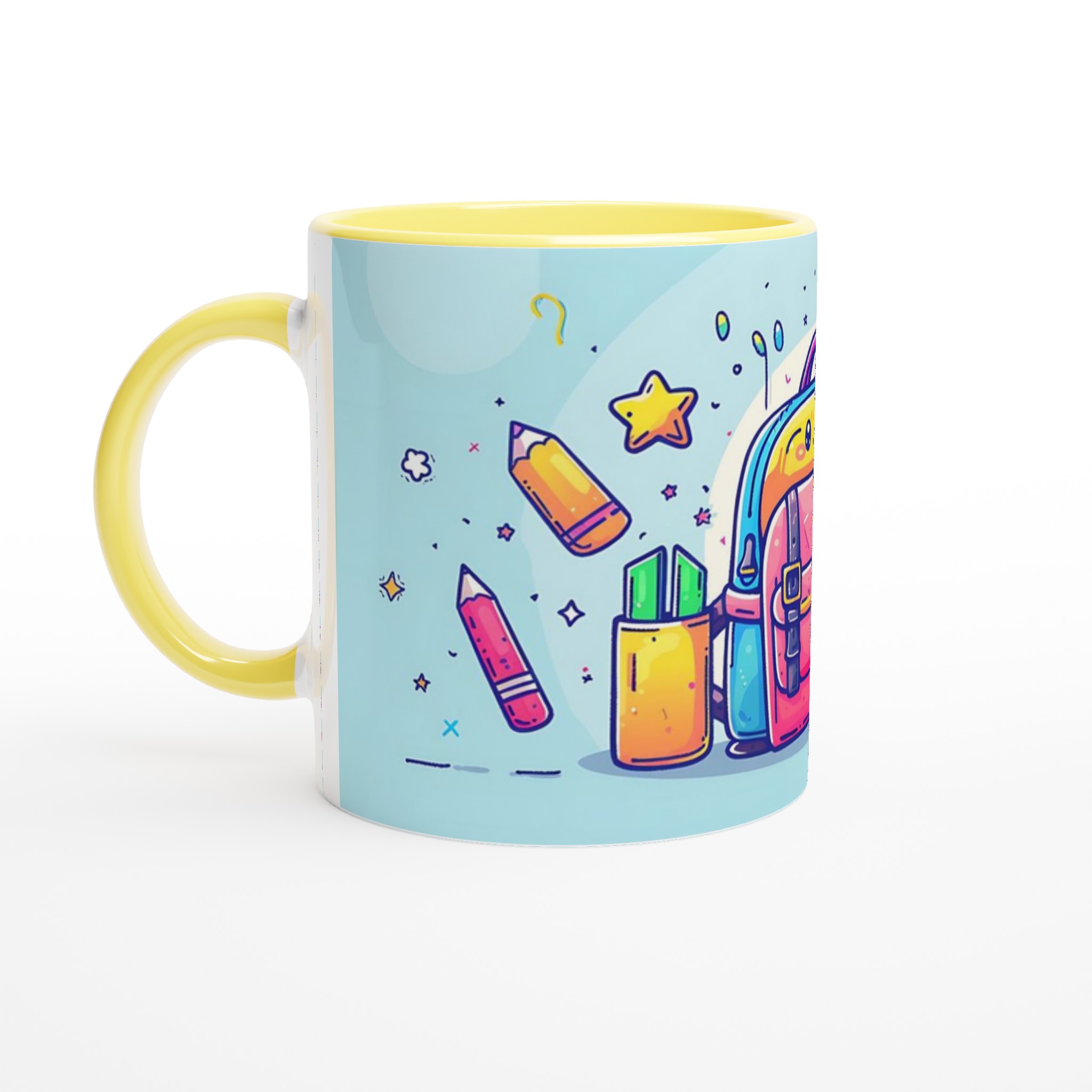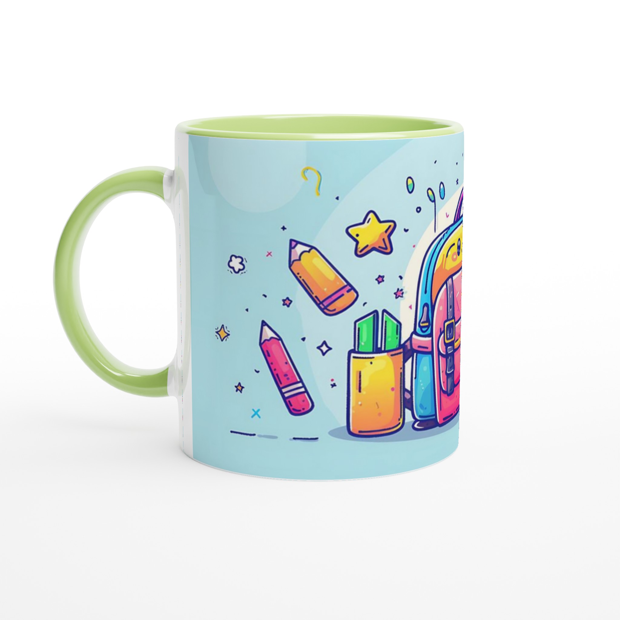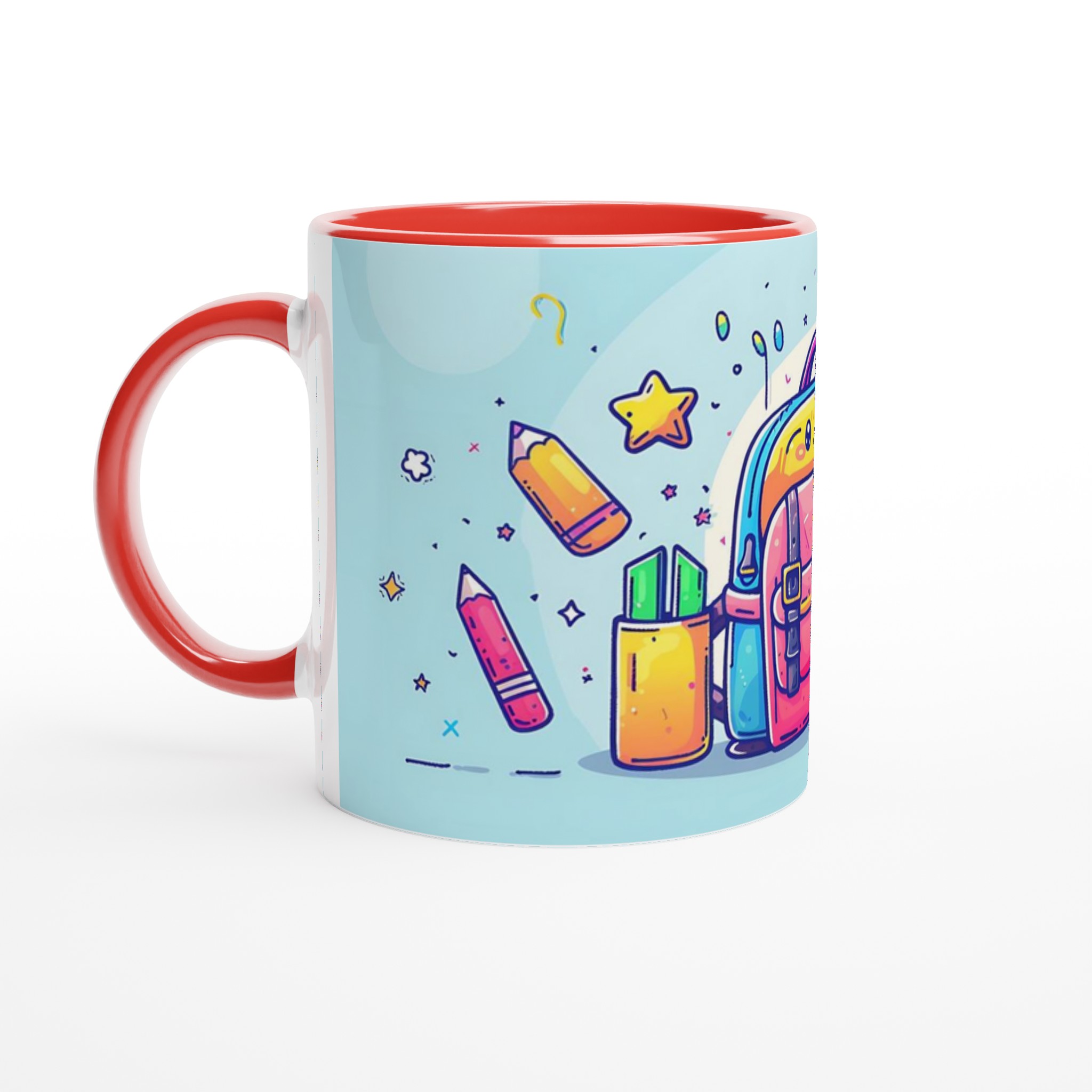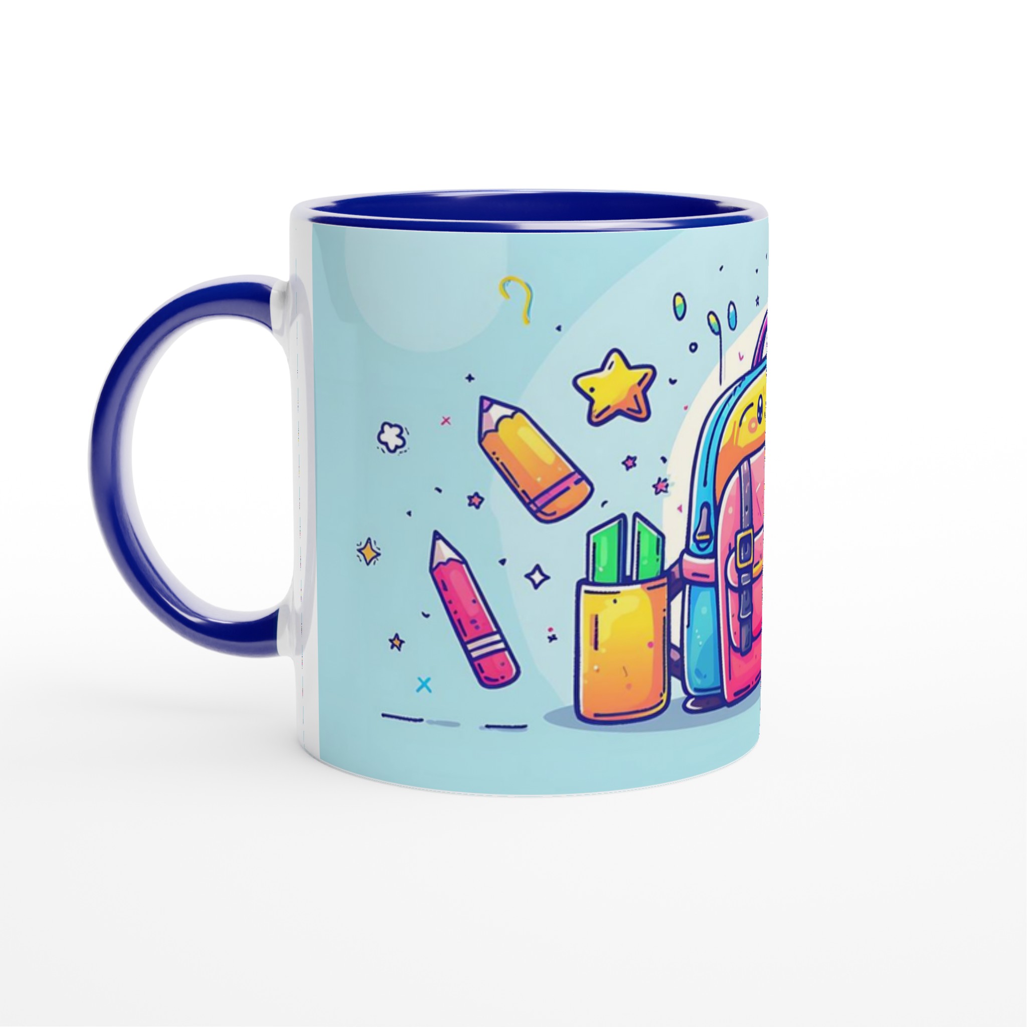 Väck kreativiteten och glädjen med vår ”Färgglad skolstart” keramiska mugg! Denna charmiga mugg är perfekt för alla små konstnärer och skolstartare, med sitt lekfulla motiv av en glad ryggsäck omgiven av pennor och suddgummin i livfulla färger. Det är den perfekta vardagsfavoriten för morgonkaffet (eller snarare, morgonmjölken!), kvällens varma choklad eller närhelst du vill njuta av en mysig stund. Den blanka ytan framhäver trycket med klara och levande färger, som håller sig fina även efter många turer i mikron och diskmaskinen, redo för dagens äventyr.