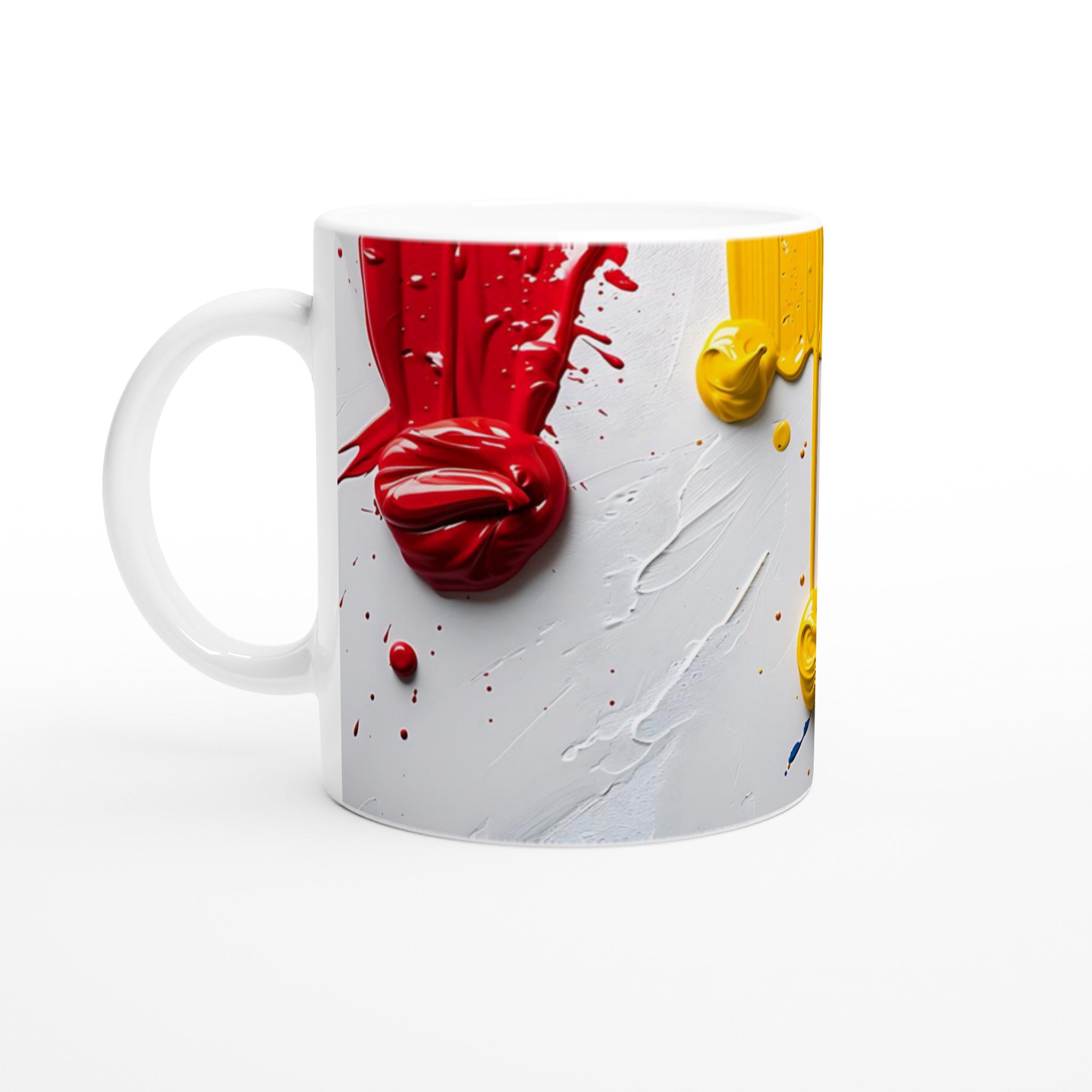 Inspirerad av den lekfulla dynamiken hos rinnande färg, ger denna mugg din dryckesupplevelse en kreativ touch. Den blanka vita ytan ger ett skarpt och levande tryck som verkligen sticker ut, oavsett om det är en personlig design, ett roligt citat eller en present till någon du tycker om.