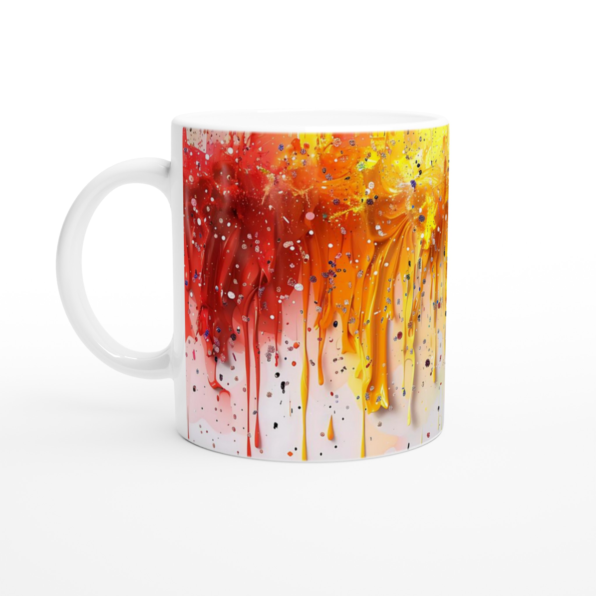 Väck dina sinnen varje morgon med en explosion av färg! Inspirerad av den livfulla paletten i naturens mest glädjefyllda ögonblick, kombinerar denna mugg konstnärlig stil med vardagsfunktionalitet. Med en design som påminner om lekfulla färgdroppar och glittrande konfetti, förvandlar den varje dryck till en fest. Och det bästa? Du kan anpassa den efter din egen stil genom att välja bland en regnbåge av färger: Klassisk Ceramic White, solig Ceramic Yellow, charmig Ceramic Pink, lugnande Ceramic Green, passionerad Ceramic Red, elegant Ceramic Black, eller den djupa Ceramic Blue. Varje nyans är vald för att komplettera din personliga touch och förvandla din mugg till ett konstverk.