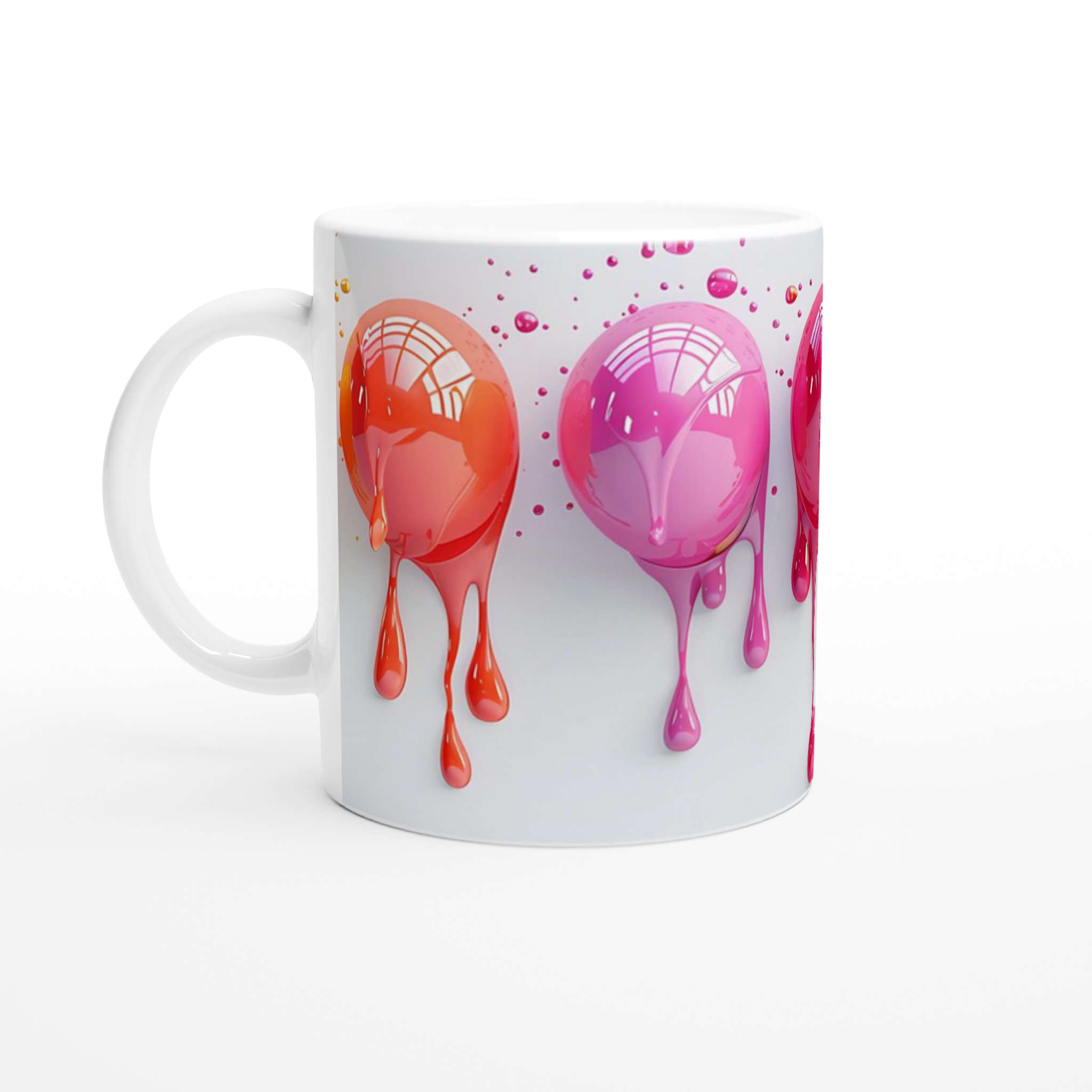 Inspirerad av lekfulla droppande färger, kommer denna mugg i en blank yta som ger ett skarpt och levande tryck som verkligen sticker ut. Oavsett om det är en personlig design, ett roligt citat eller en present till någon du tycker om, kommer din design att se fantastisk ut mot den vita bakgrunden eller den livfulla färgen du väljer.