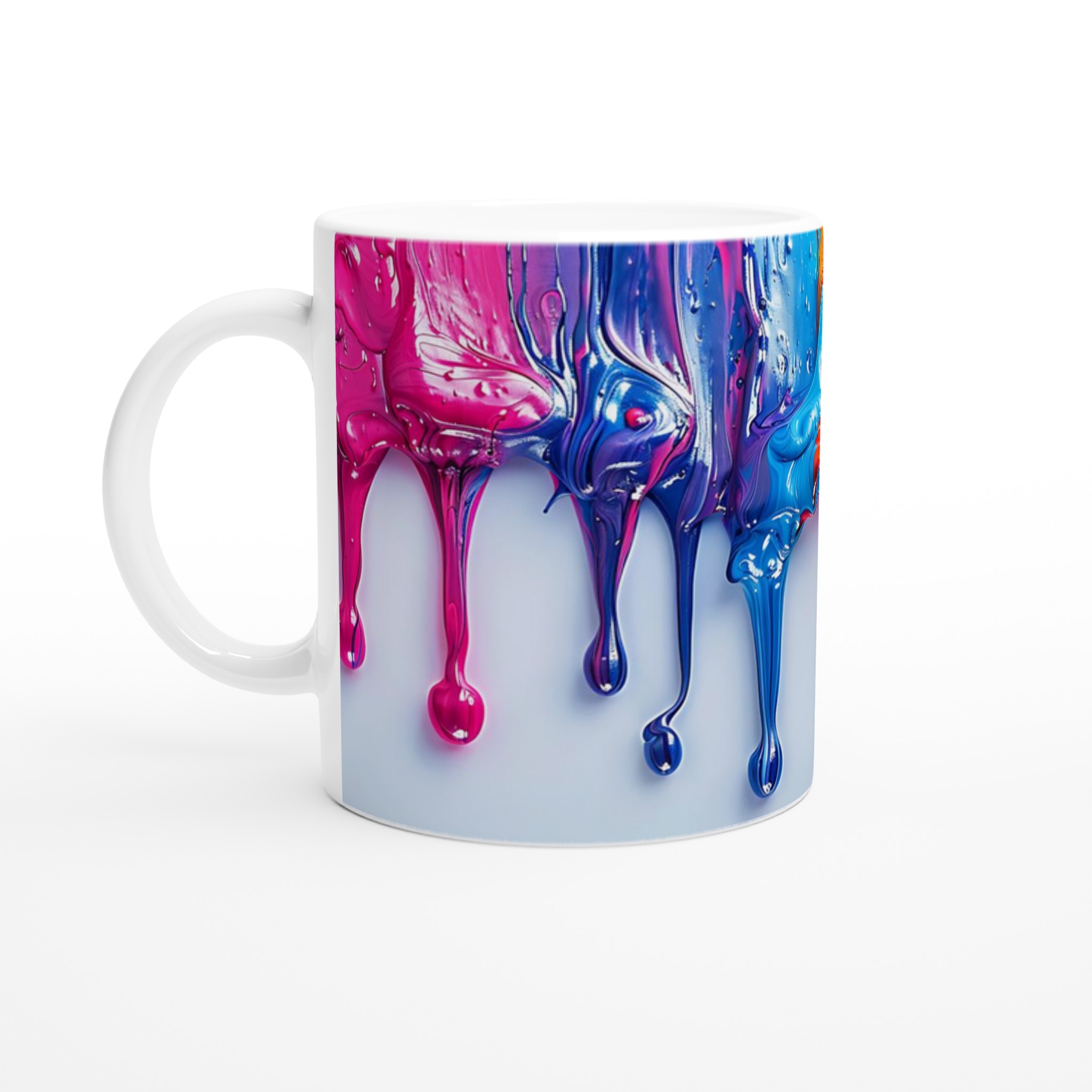 Inspirerad av konstens djup och glädje, erbjuder vi en mugg som förvandlar din dryckesupplevelse till en färgexplosion. Den blanka ytan ger ett skarpt och levande tryck som verkligen sticker ut, oavsett om det är en personlig design, ett roligt citat eller en present till någon du tycker om.