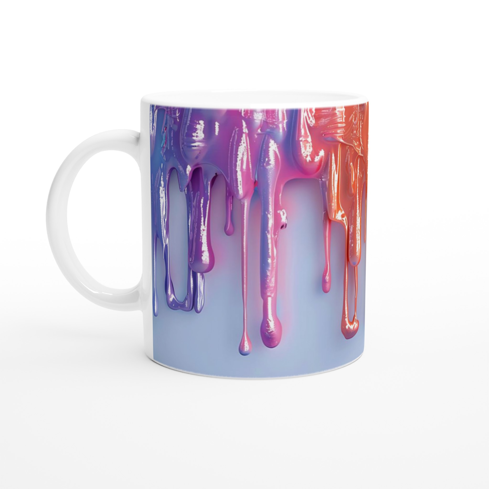 Inspirerad av den livliga och dynamiska färgpaletten från smält godis och neonljus, erbjuder denna mugg en explosion av glädje i varje klunk. Den blanka vita ytan ger ett skarpt och levande tryck som verkligen sticker ut, oavsett om det är en personlig design, ett roligt citat eller en present till någon du tycker om.