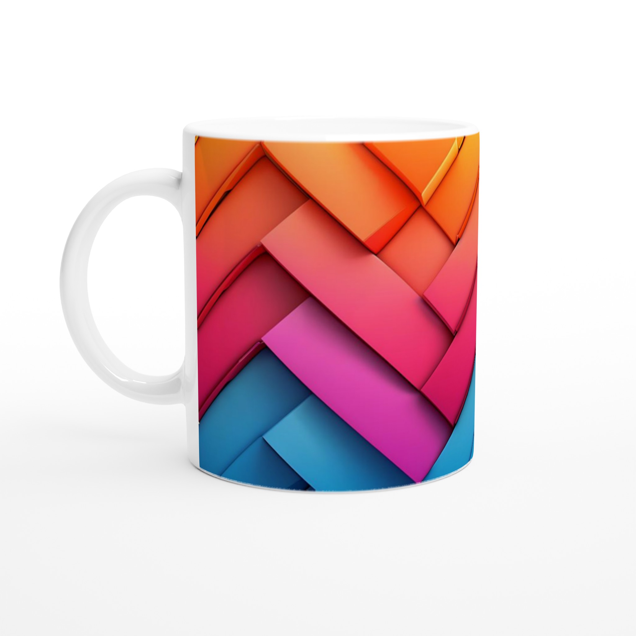 Inspirerad av den dynamiska paletten från orange till djupblått, ger denna mugg dina designer en energisk bakgrund som fångar ögat. Den blanka vita ytan ger ett skarpt och levande tryck som verkligen sticker ut, oavsett om det är en personlig design, ett roligt citat eller en present till någon du tycker om.