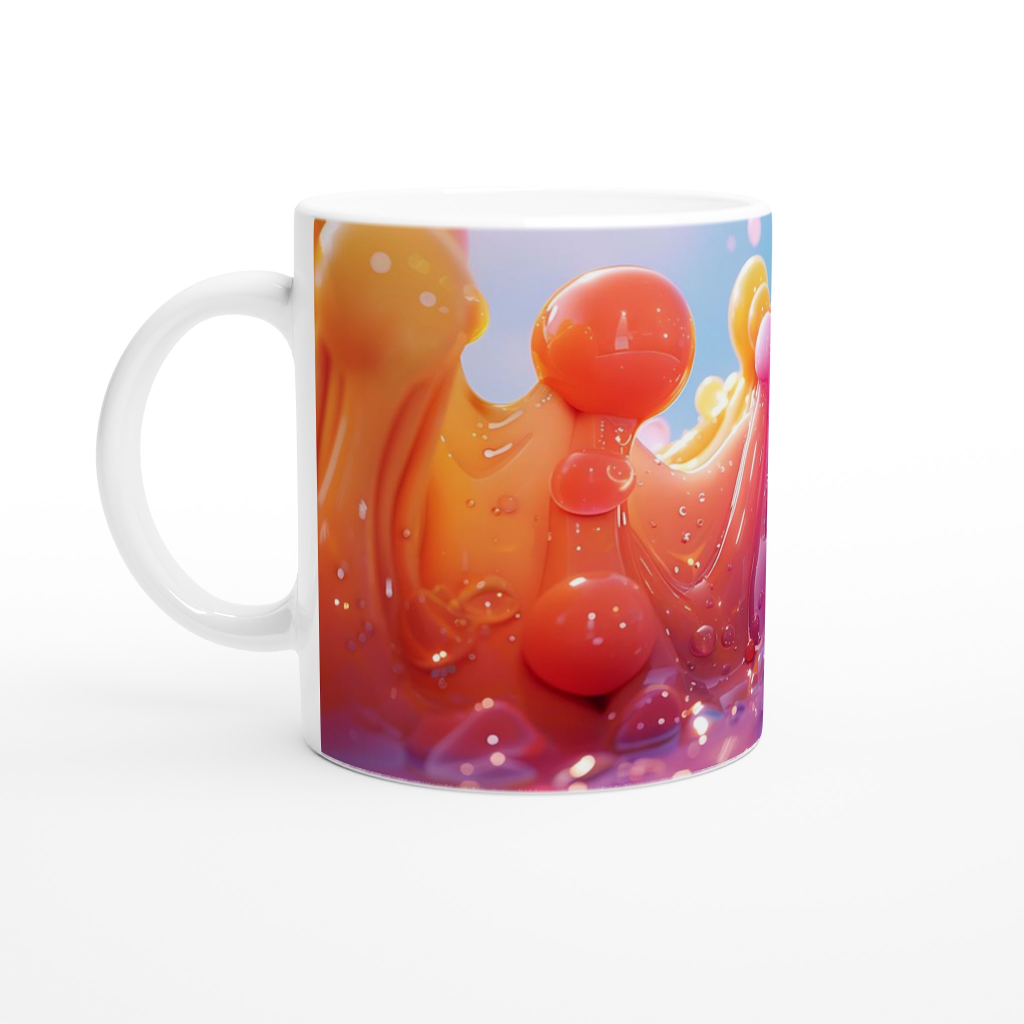 Inspirerad av lekfulla, livfulla färger som dansar i glansig yta, ger denna mugg en explosion av glädje till din vardag. Den blanka vita ytan ger ett skarpt och levande tryck som verkligen sticker ut, oavsett om det är en personlig design, ett roligt citat eller en present till någon du tycker om.