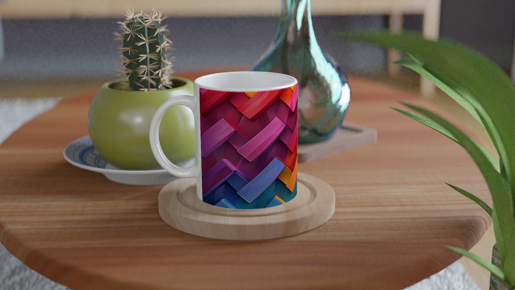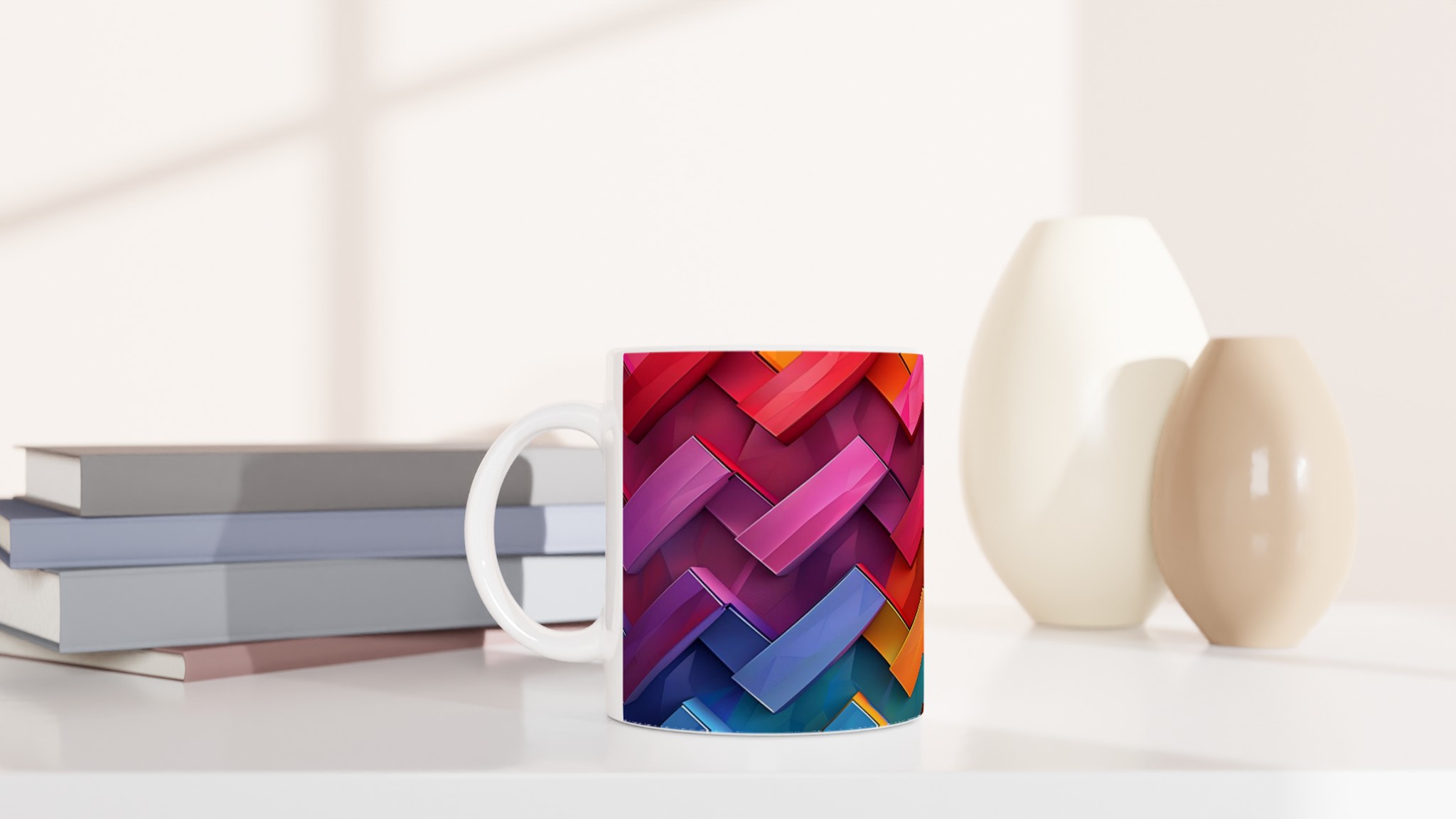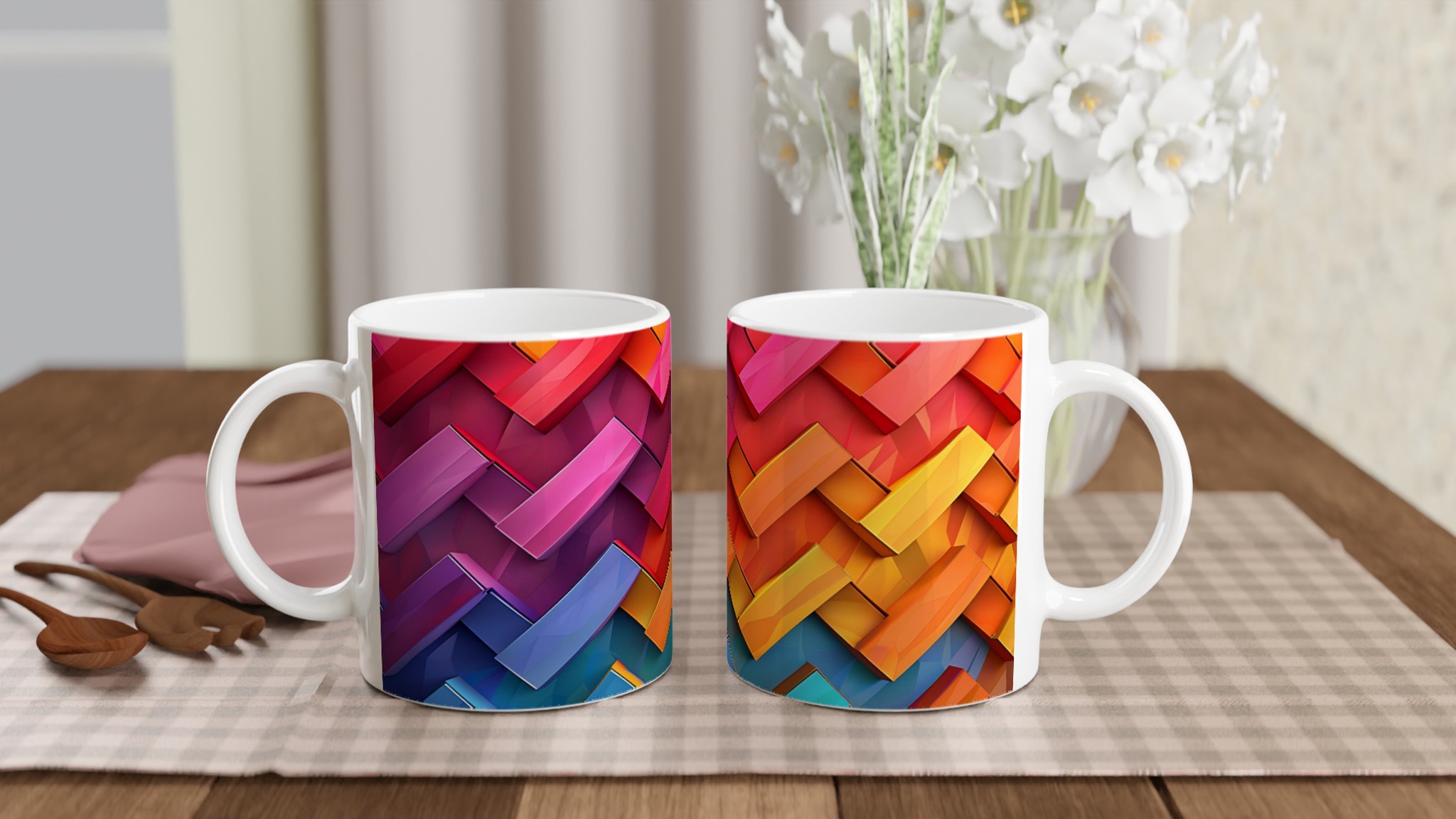 Lyft din fikastund med denna färgsprakande och visuellt dynamiska keramikmugg, inspirerad av den moderna konstens djärva estetik. De geometriska formerna i regnbågens alla färger ger en energifylld start på dagen eller en lekfull paus från vardagen. Denna mugg är inte bara en dryckesbehållare, utan ett konstverk i sig, perfekt för att addera en pop av färg och personlighet till ditt hem eller kontor.
