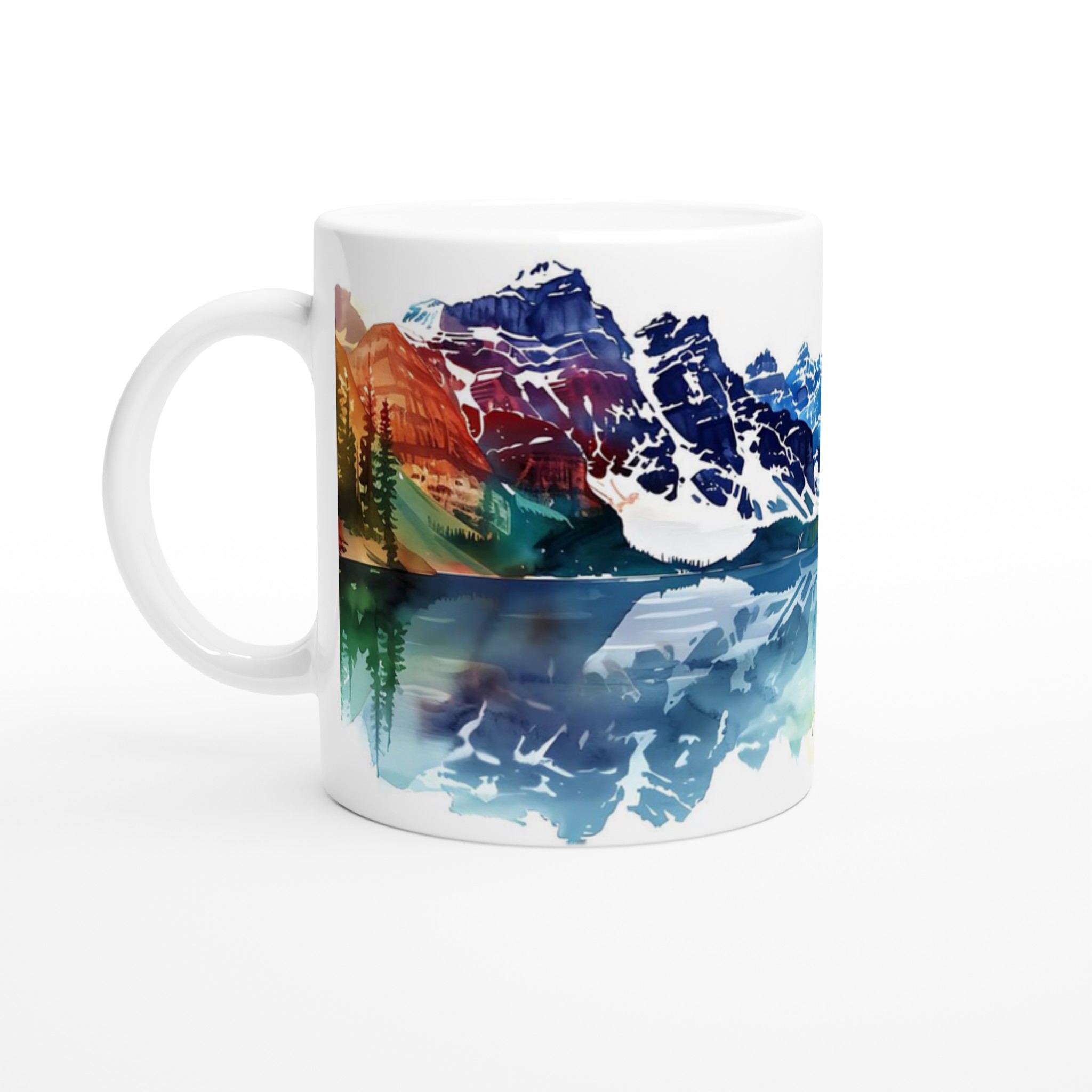 Färgsprakande Akvarell Berglandskap Mugg – Levande 11oz Keramikmugg i ditt val av 7 nyanser