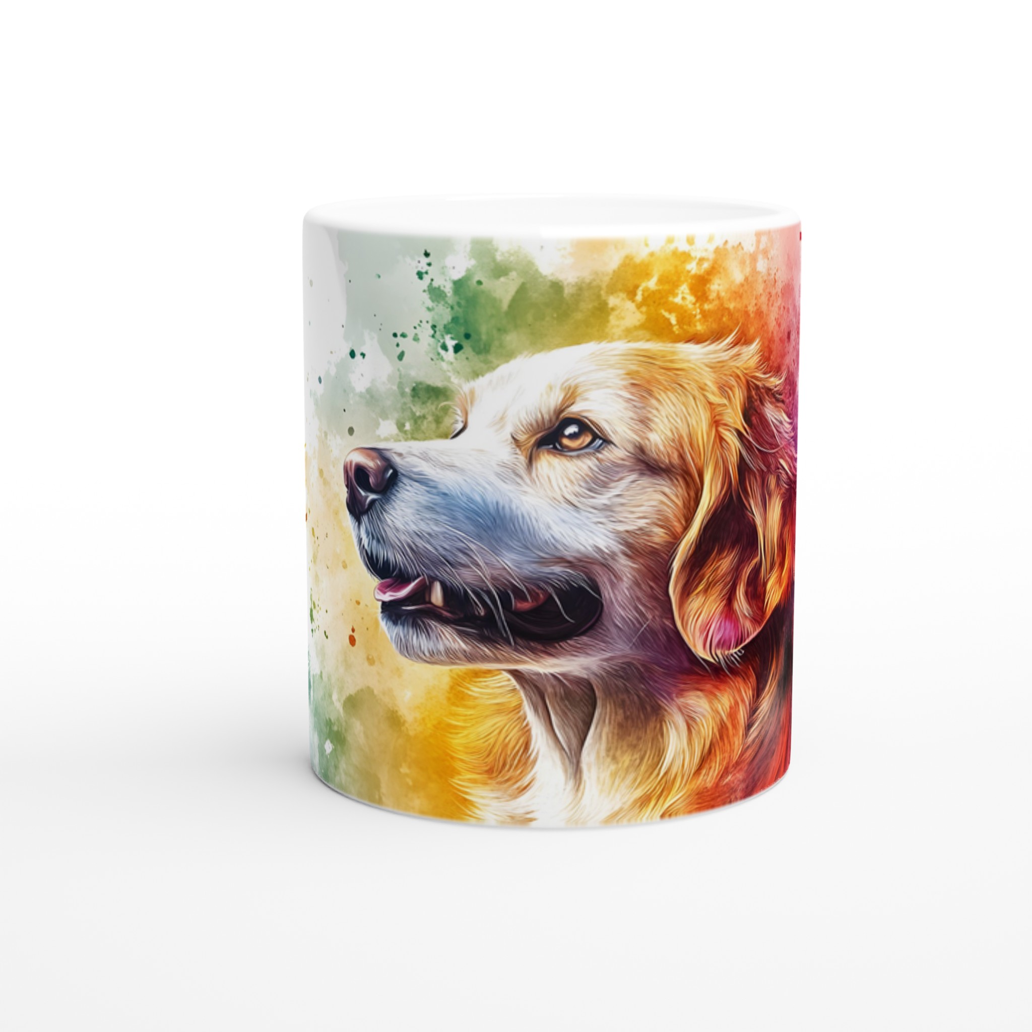 Keramikmugg 11 oz (ca 3,25 dl) med konstnärligt Golden Retriever-motiv