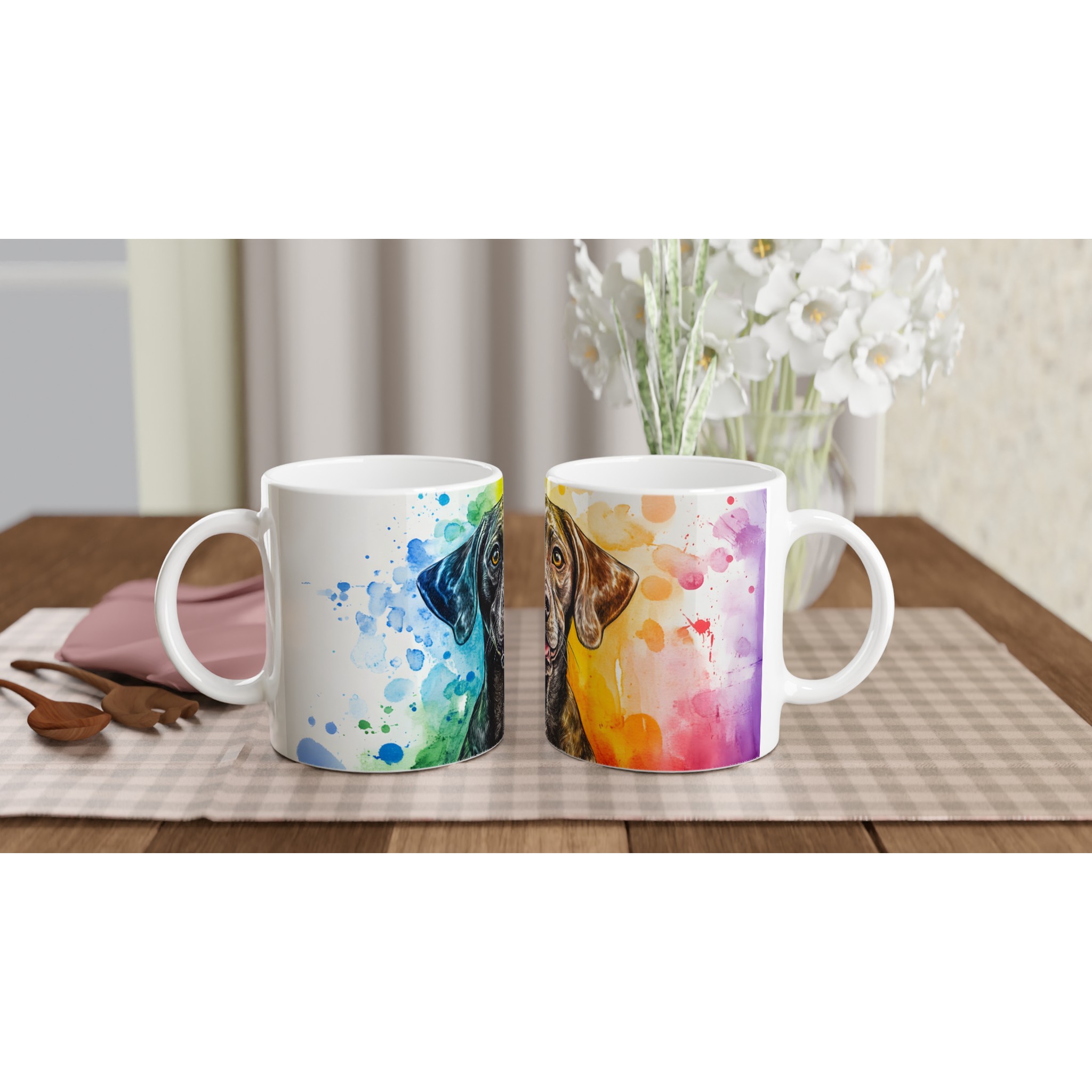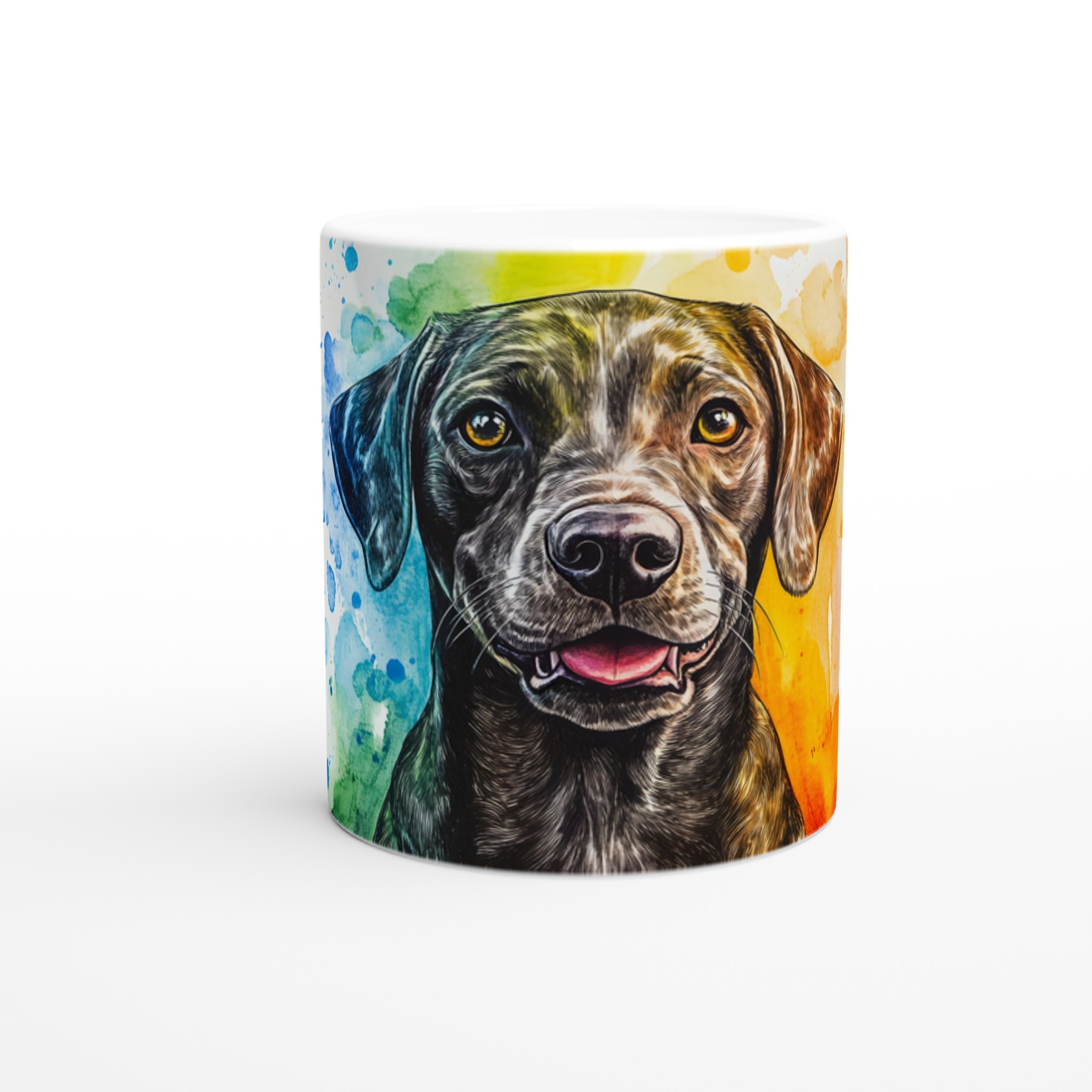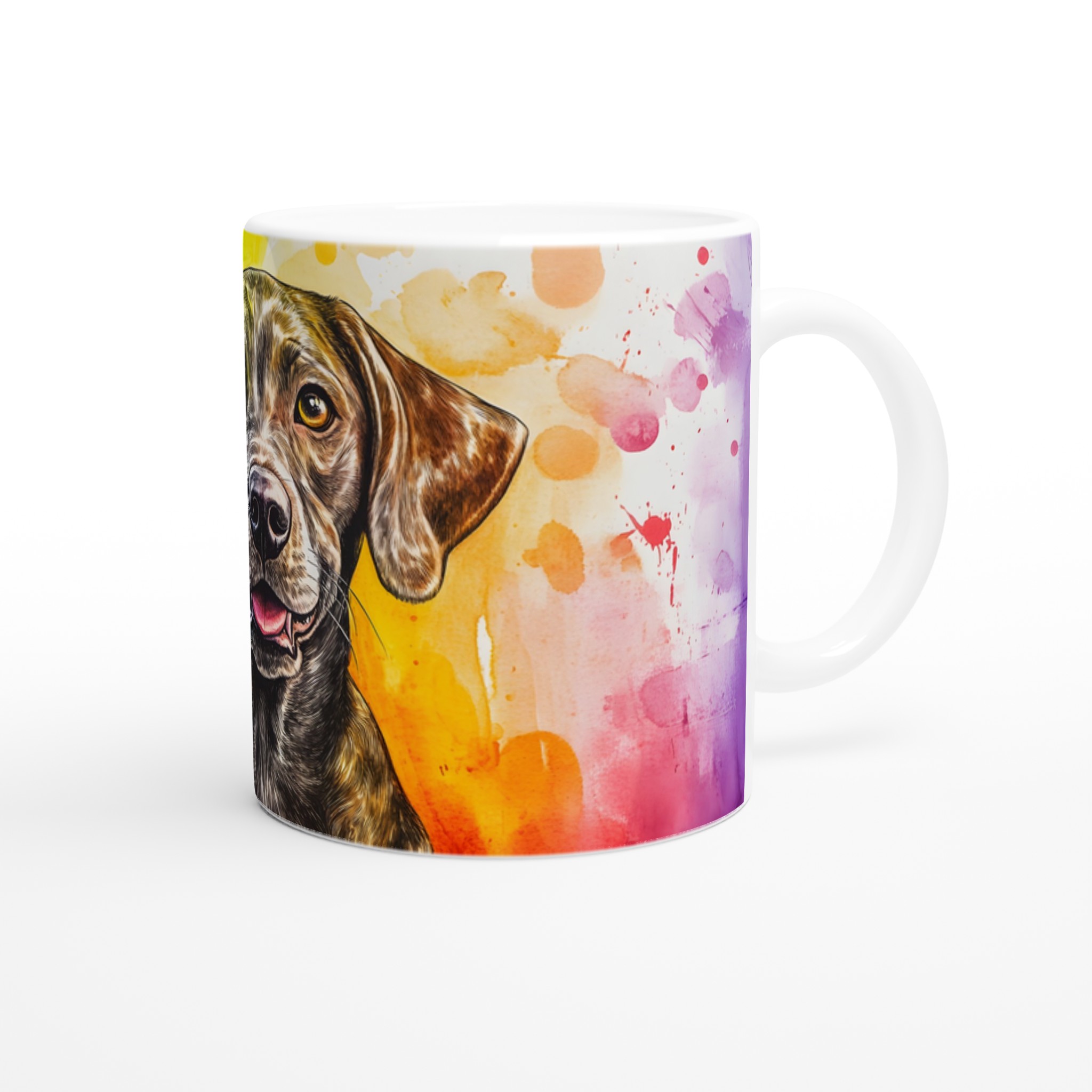 Muggen rymmer 11 oz (ca 3,25 dl), en lagom storlek för både jobb och hemmabruk. Den passar lika bra som en personlig vardagsmugg som en uppskattad present till familj, vänner eller kollegor som delar din kärlek till färger och hundar. Lägg till denna unika mugg i din samling eller ge bort den som en minnesvärd gåva – den kommer garanterat att sprida glädje!
