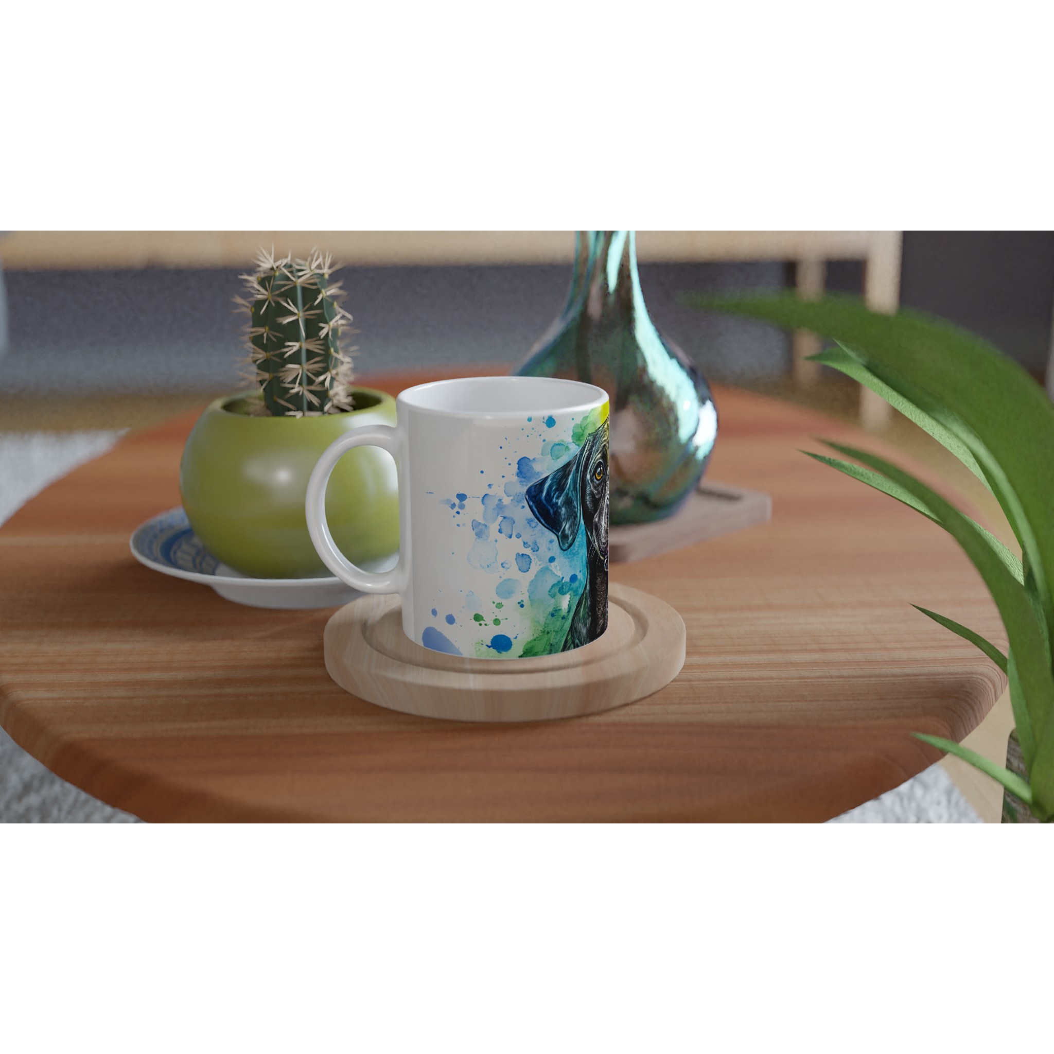 Upplev glädje varje dag med denna färgsprakande keramikmugg, prydd med ett unikt akvarellmotiv av en bedårande hund. De livfulla färgstänken och den konstnärliga designen fångar en lekfull och varm känsla, perfekt för alla djurälskare och de som uppskattar en touch av konst i vardagen. Denna mugg är inte bara en behållare för din favoritdryck, utan ett litet konstverk som lyser upp din morgon eller fikastund.