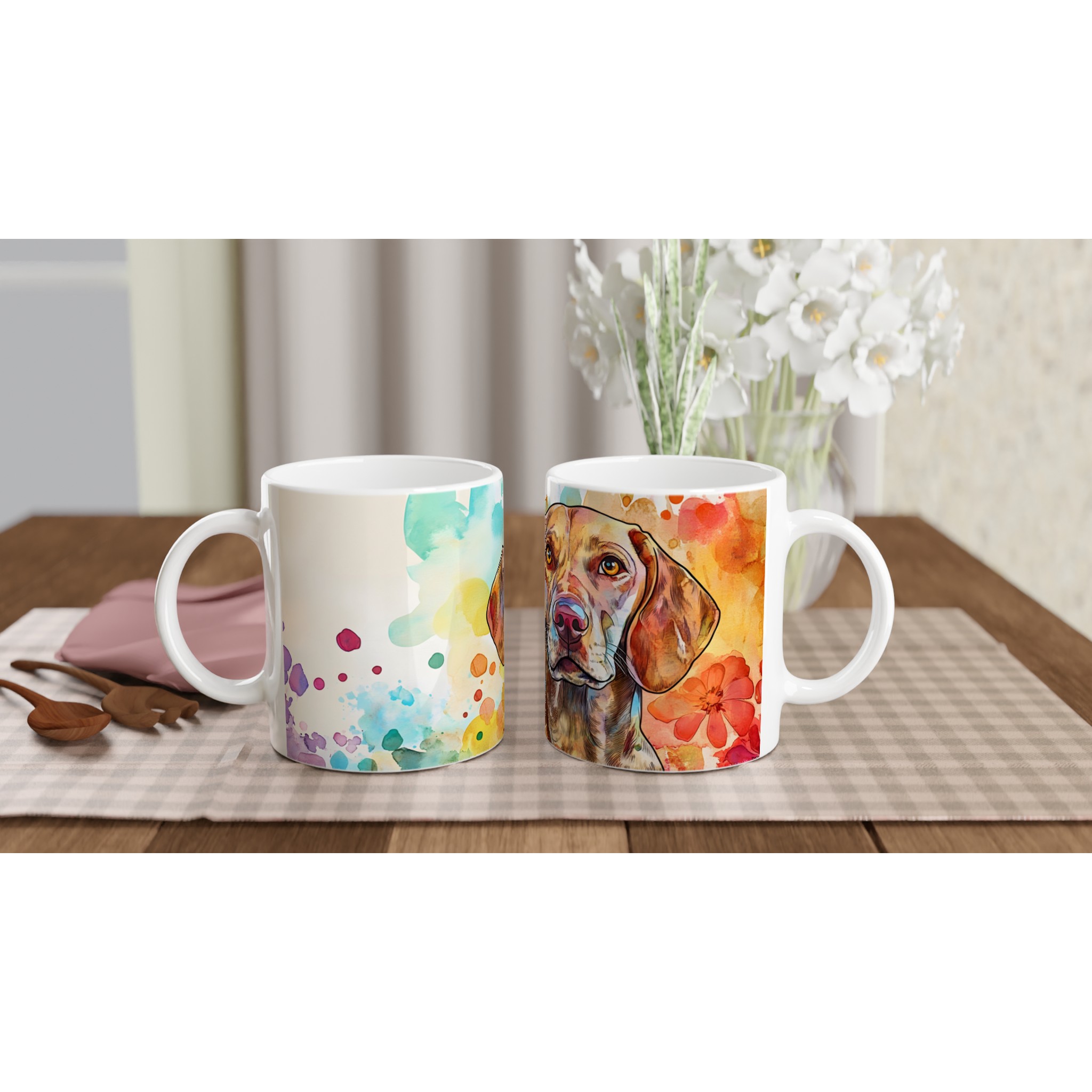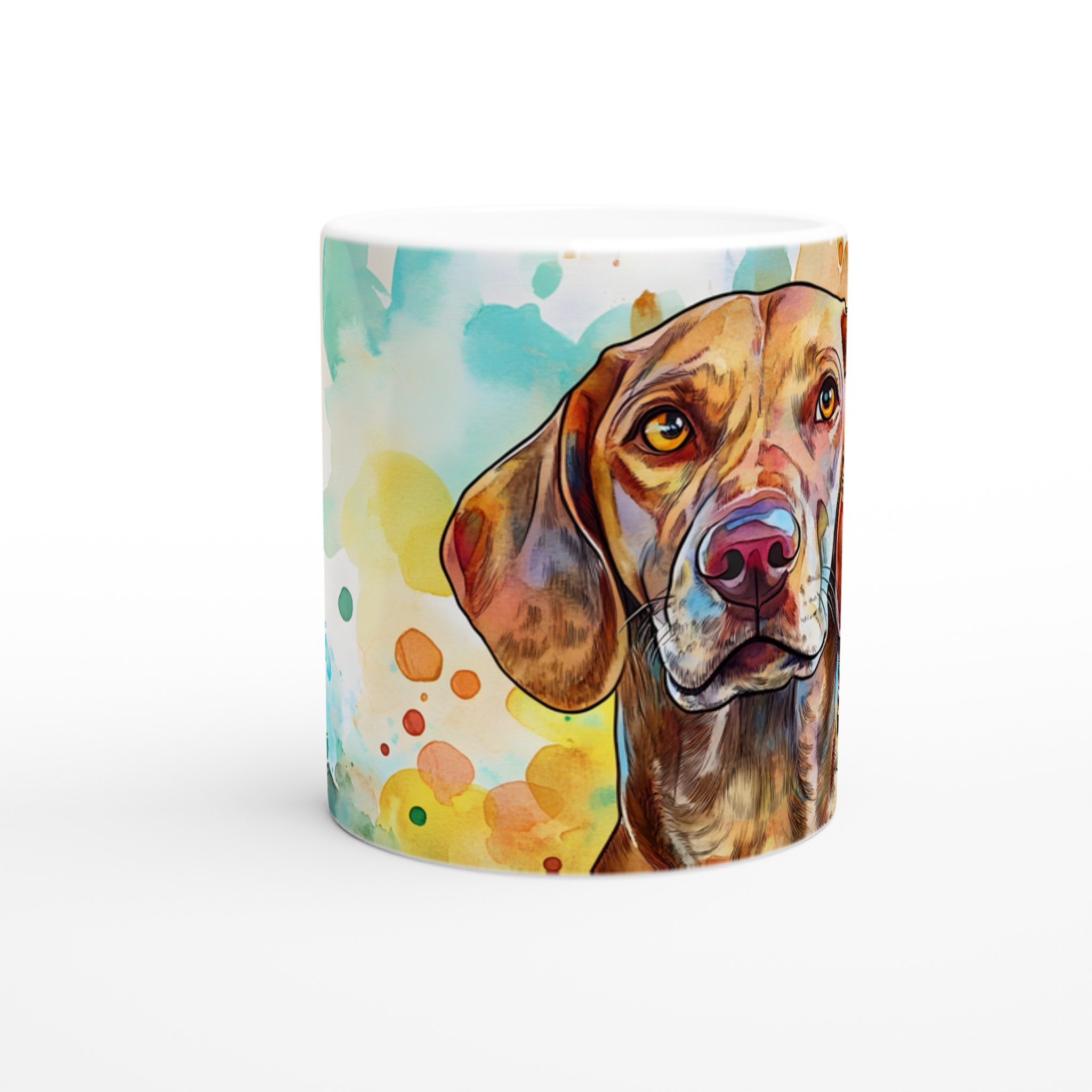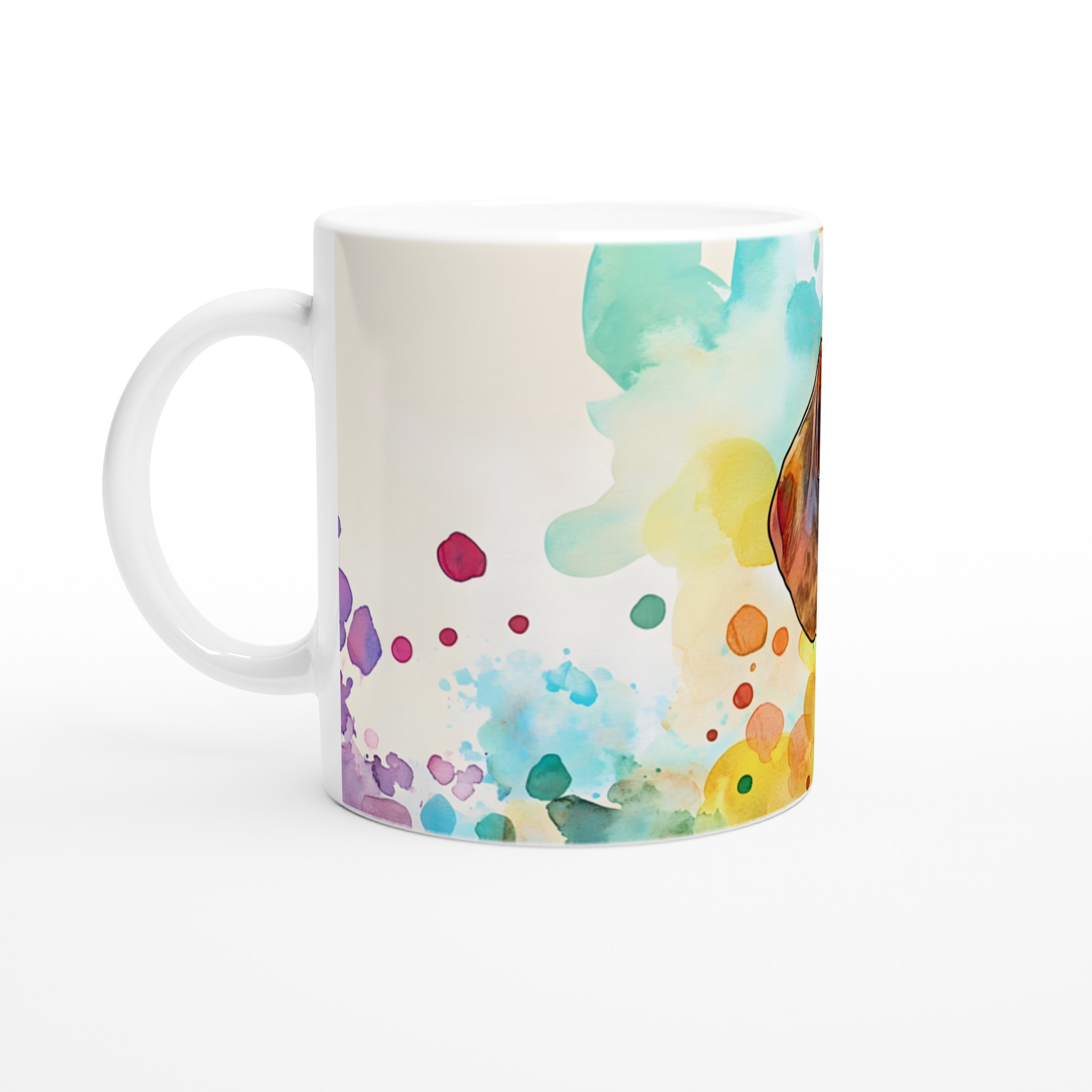 Vakna upp till glädje eller njut av en avkopplande stund med vår färgsprakande keramikmugg, prydd med ett bedårande akvarellporträtt av en hund. Denna mugg är inte bara en dryckesbehållare, utan ett konstverk som lyfter fram den livfulla paletten av mjuka akvarellfärger – från varma gula och orangea toner till svala blå och gröna stänk, allt samlat i en harmonisk explosion av glädje. Perfekt för alla dagens stunder – morgonkaffet, en värmande kopp te eller en härlig varm choklad.