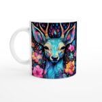 Lyft din fikastund med denna färgsprakande keramiska mugg, som stolt visar upp en majestätisk älg i en explosion av akvarellfärger och livfulla blommor. Den konstnärliga designen gör varje klunk till en upplevelse, perfekt för dig som älskar att omge dig med unika och inspirerande föremål.