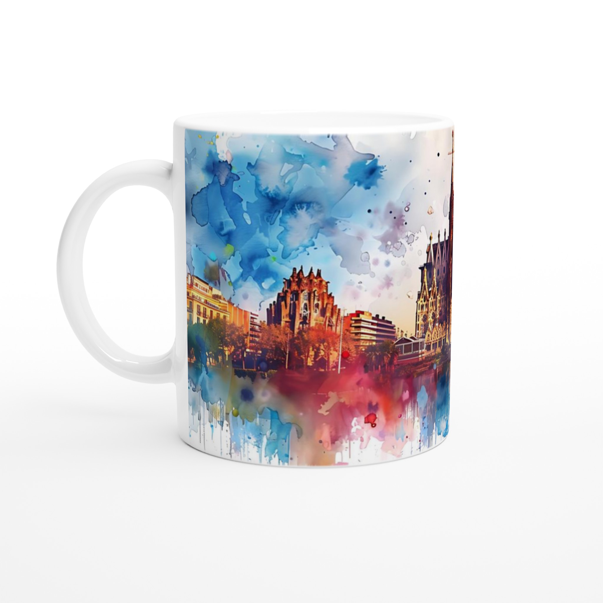 Med en hypnotiserande akvarellillustration av Barcelonas ikoniska Sagrada Familia, fångad i en explosion av levande blått, rött och gult, är denna mugg mer än bara en dryckesbehållare – den är ett konstverk. Den blanka vita ytan ger ett skarpt och levande tryck som verkligen sticker ut, oavsett om det är en personlig design, ett roligt citat eller en present till någon du tycker om.