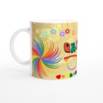 Väck dina sinnen med denna färgsprakande keramiska mugg, prydd med en levande blomsterdesign och texten ”Beautiful” i regnbågens alla färger. Varje klunk blir en påminnelse om skönheten i vardagen. Perfekt för morgonkaffet, kvällens varma choklad eller när du bara vill njuta av en kopp te i en mugg som sprudlar av positiv energi.