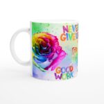 Den blanka vita ytan låter de klara, levande färgerna och det inspirerande budskapet verkligen stå ut. Trycket behåller sin lyster och skönhet, kopp efter kopp, disk efter disk. Den är inte bara en fröjd för ögat utan också otroligt praktisk och designad för att tåla din hektiska vardag. Ge bort en mugg fylld med glädje och uppmuntran – en uppskattad och personlig present som alltid kommer till användning och sprider goda vibbar.