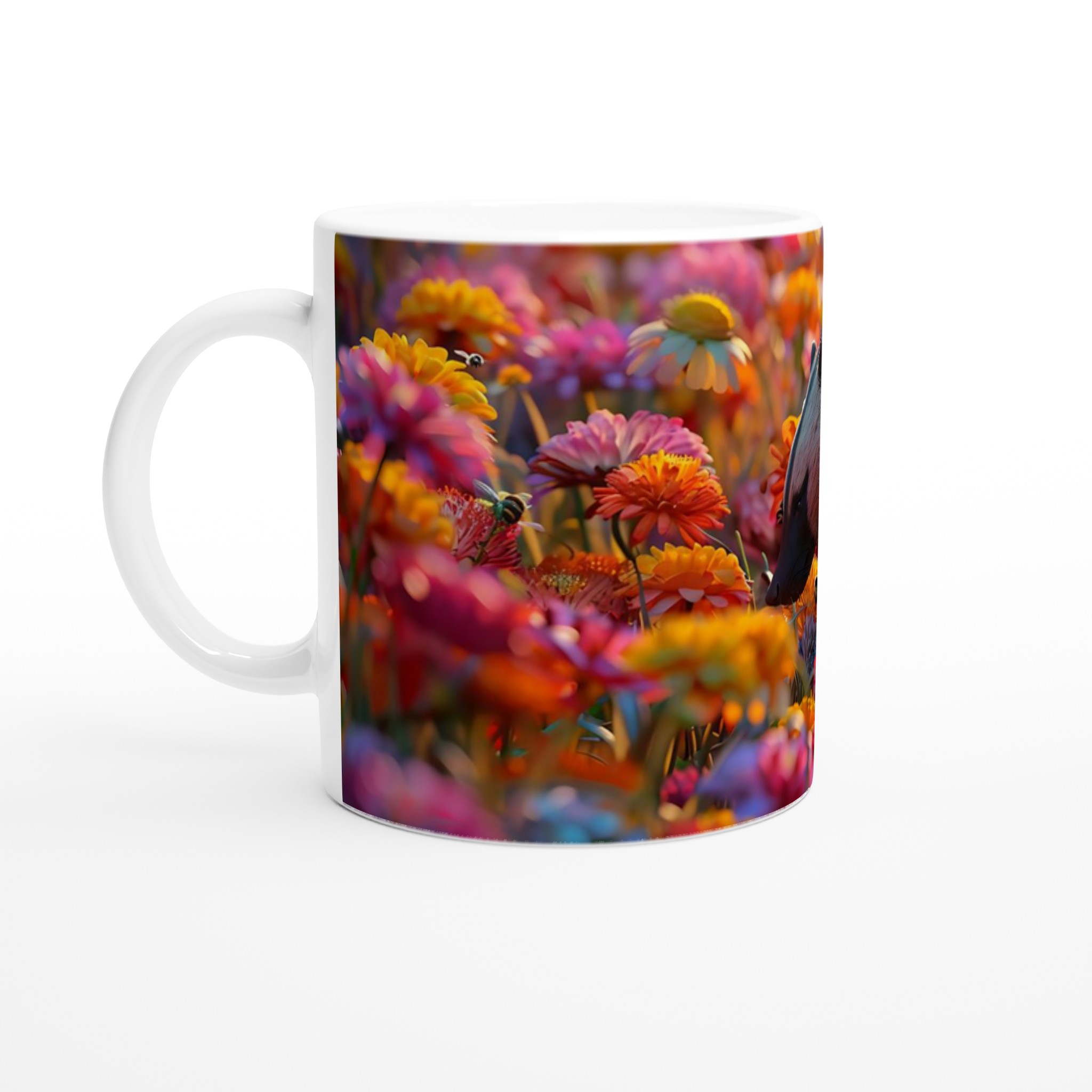 Inspirerad av den magiska känslan av en solnedgång över en blomstrande äng, där djurlivet vaknar till liv bland tusentals färgglada blommor, ger denna mugg en touch av naturens skönhet till din vardag. Varje sipp blir en stund av lugn och glädje, oavsett om det är en personlig design, ett roligt citat eller en present till någon du tycker om.
