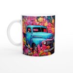 Lyft din fikastund med denna färgsprakande keramiska mugg, som förvandlar varje paus till en konstupplevelse. Med en design inspirerad av en vintage pickup bil överöst med en explosion av livfulla blommor i akvarellstil, blir denna mugg snabbt en favorit. De intensiva färgerna och den drömska stämningen, som påminner om ”stained glass art”, ger varje dryck en extra dimension – perfekt för morgonkaffet, kvällens varma choklad eller när du bara vill njuta av en kopp te.