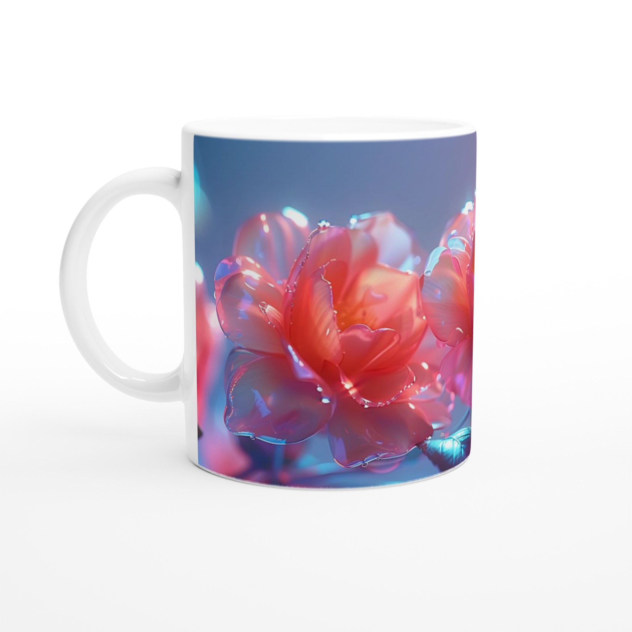 Inspirerad av den drömska glöden från frodiga blommor badade i morgondagg och eteriska ljus, får denna mugg ditt tryck att leva upp med en nästan magisk lyster. Den blanka vita ytan ger ett skarpt och levande tryck som verkligen sticker ut, oavsett om det är en personlig design, ett roligt citat eller en present till någon du tycker om.