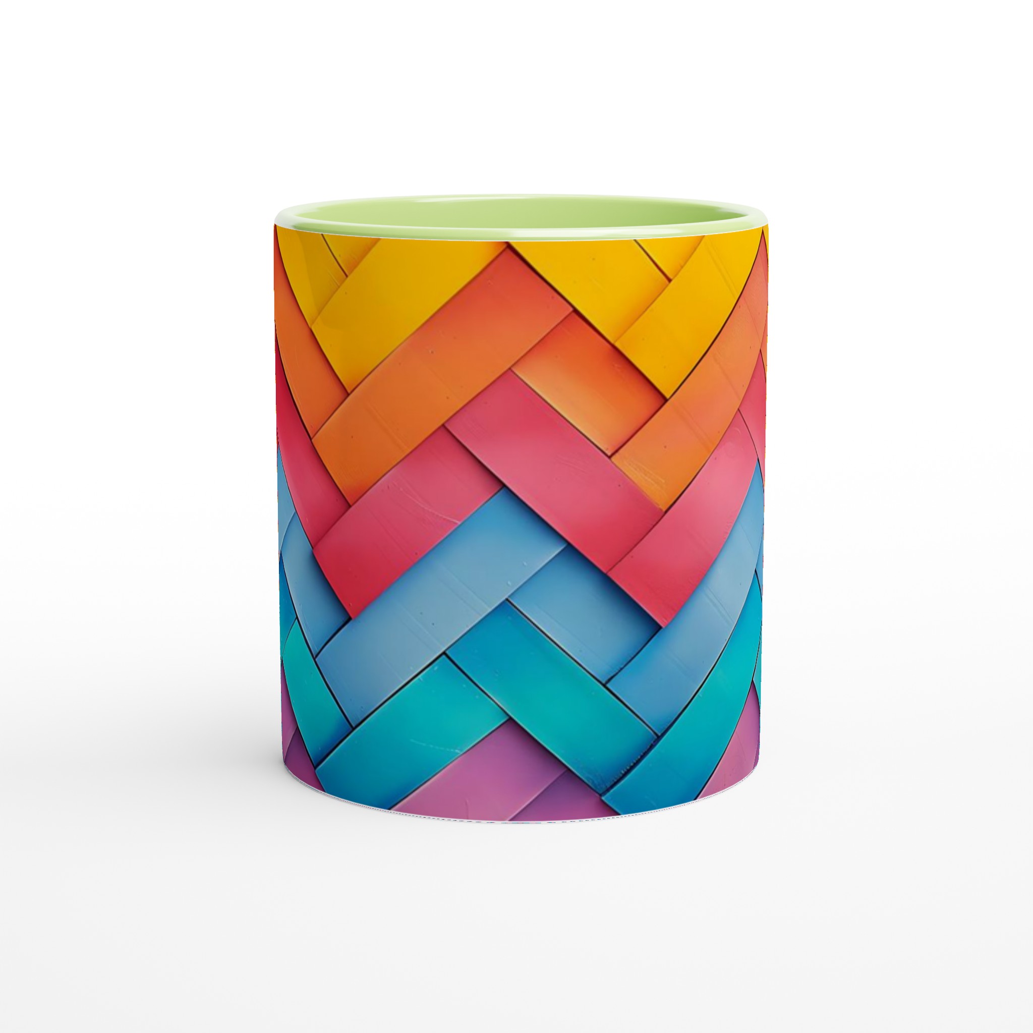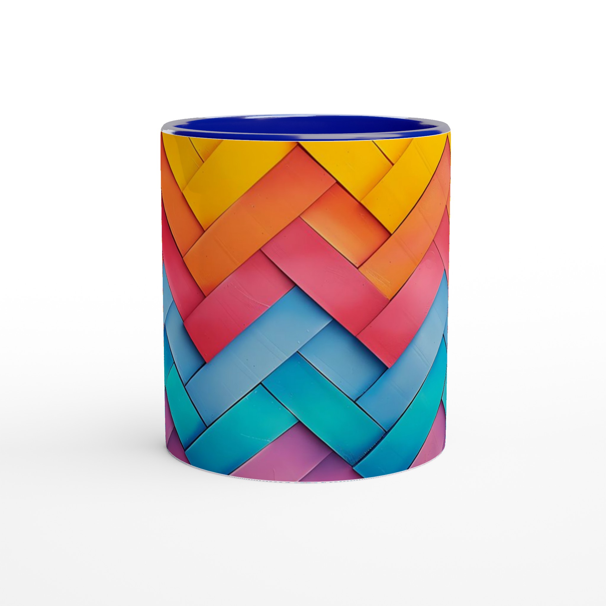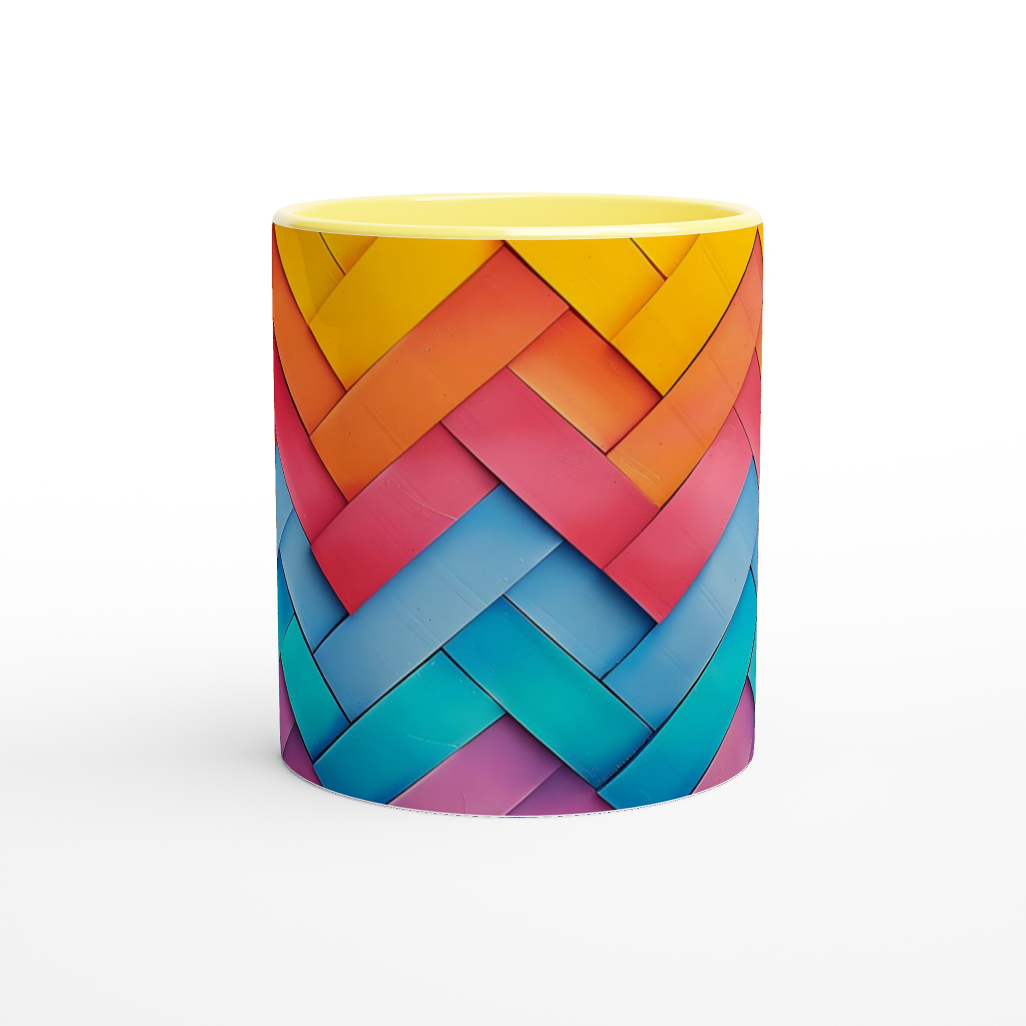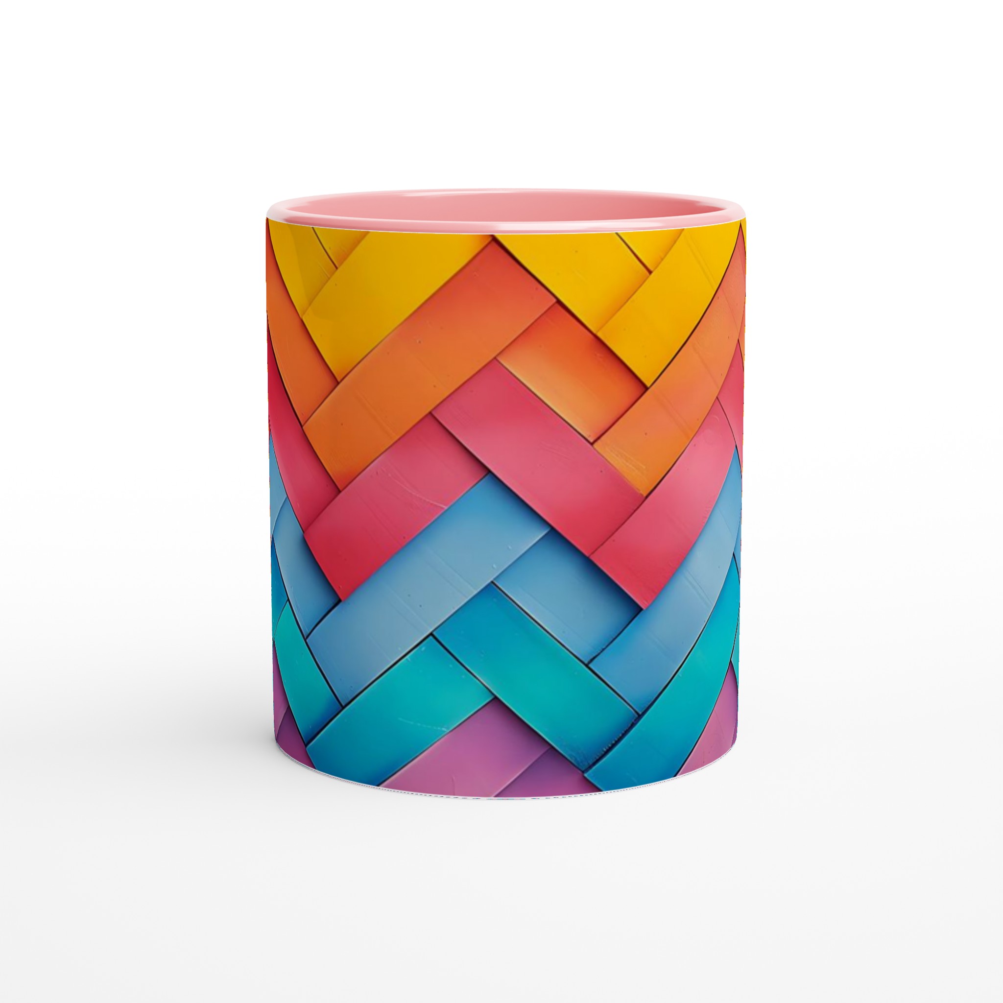 Lys upp din dag med denna färgsprakande keramikmugg, inspirerad av den glada och dynamiska chevron-designen. Med dess livfulla färger som smälter samman i en harmonisk gradient, är denna mugg en perfekt energiboost för morgonkaffet, en värmande kopp te eller en härlig varm choklad. Varje klunk blir en fest för sinnena, och den blanka ytan får ditt valda tryck att framträda klart och färgstarkt.