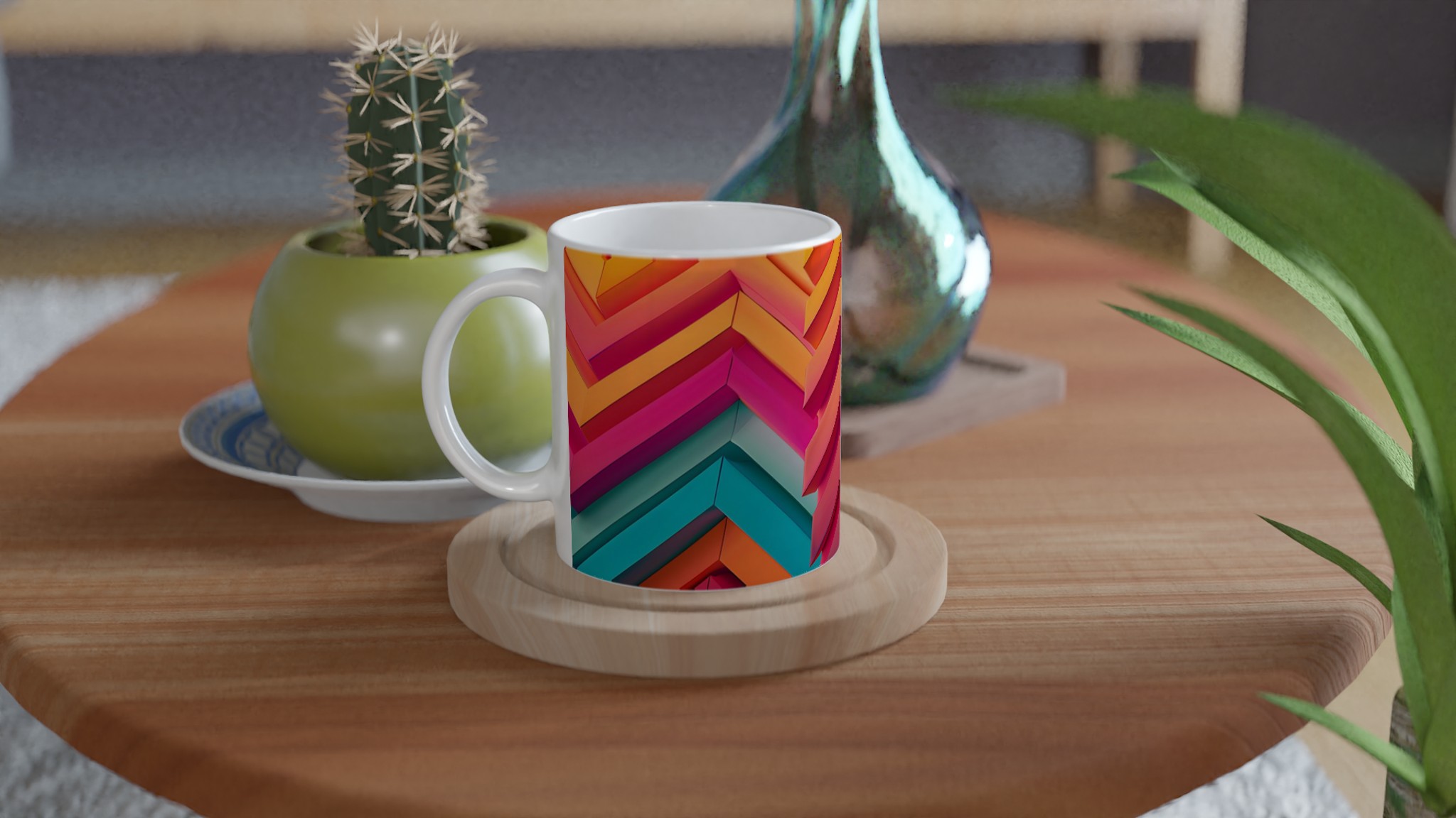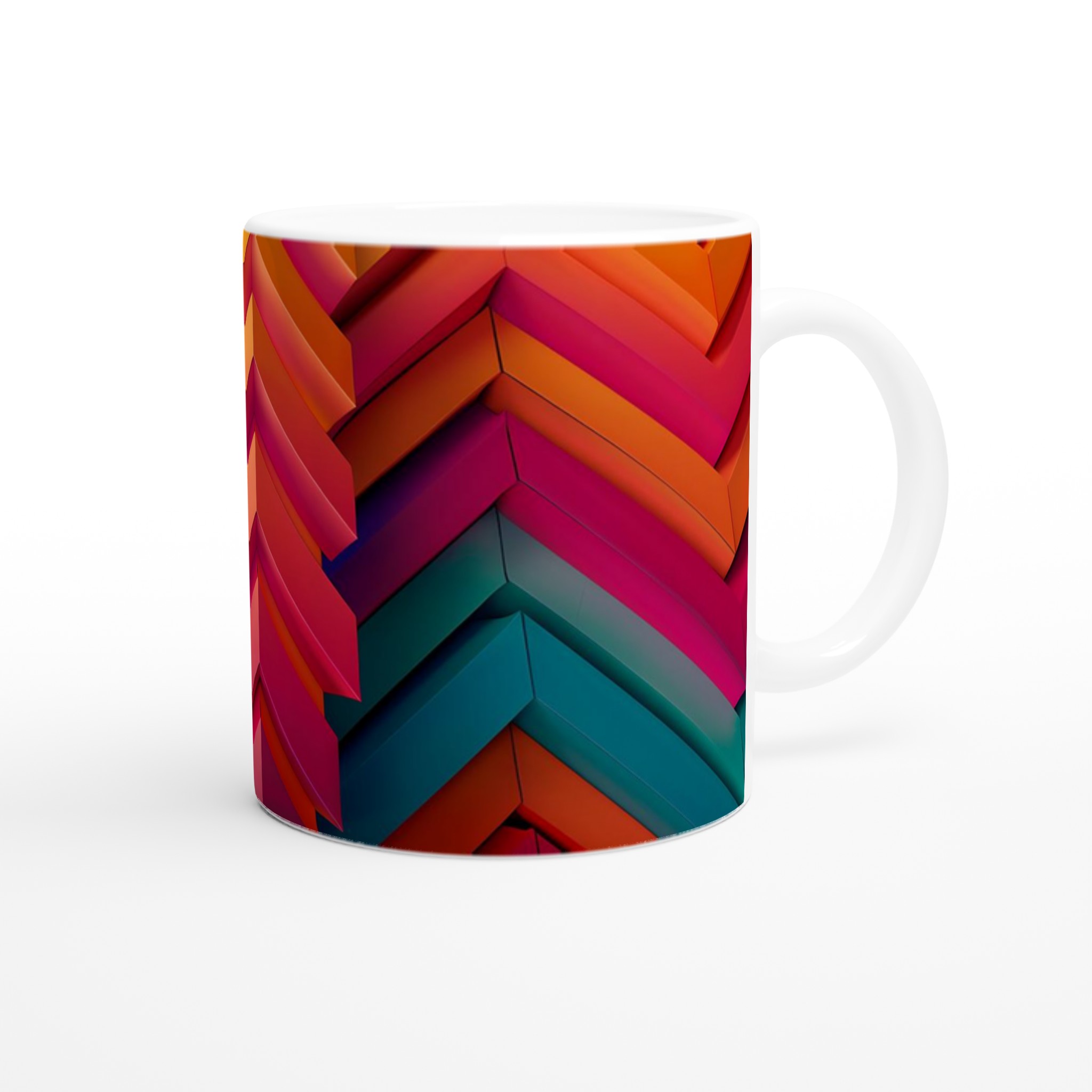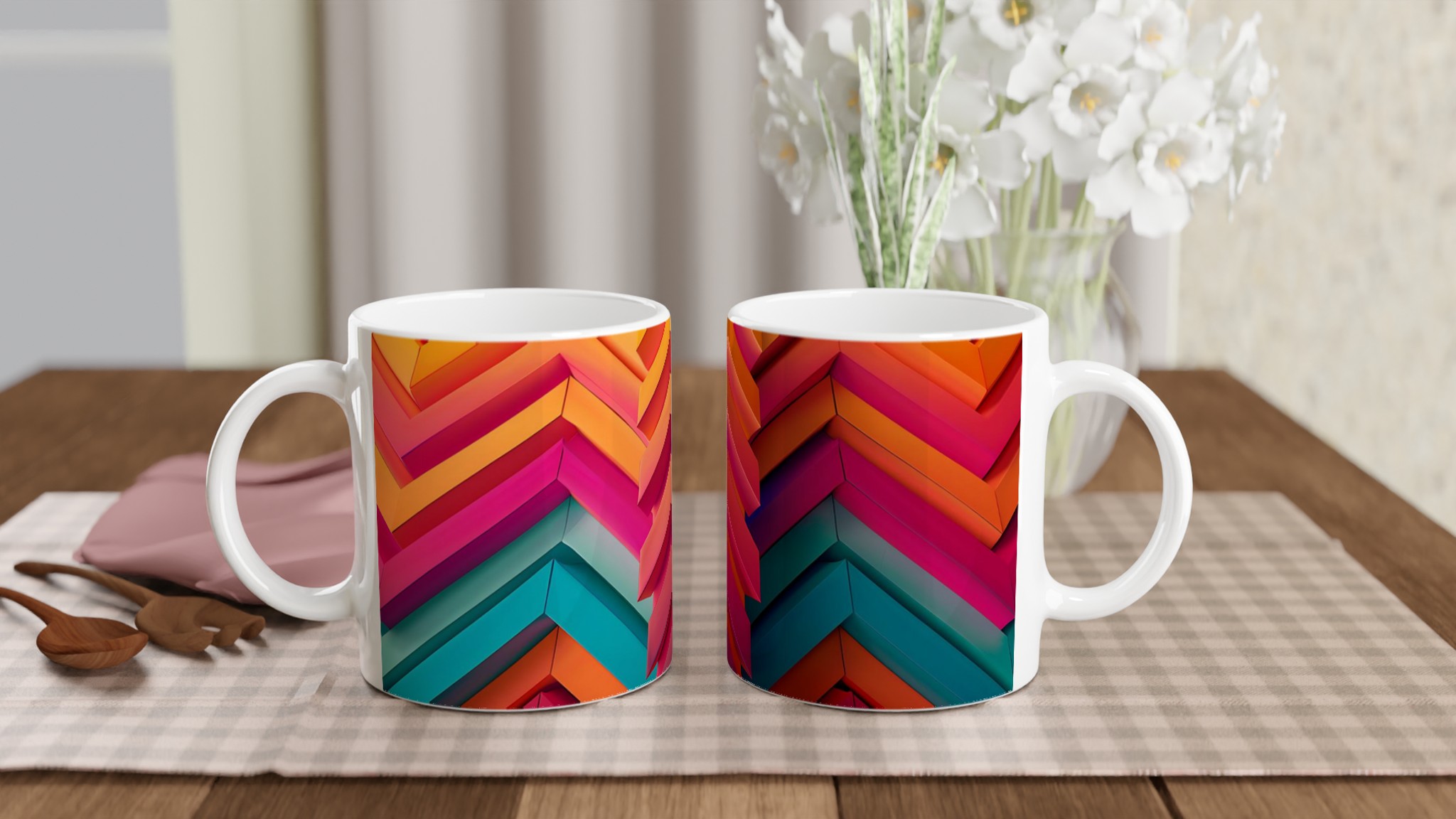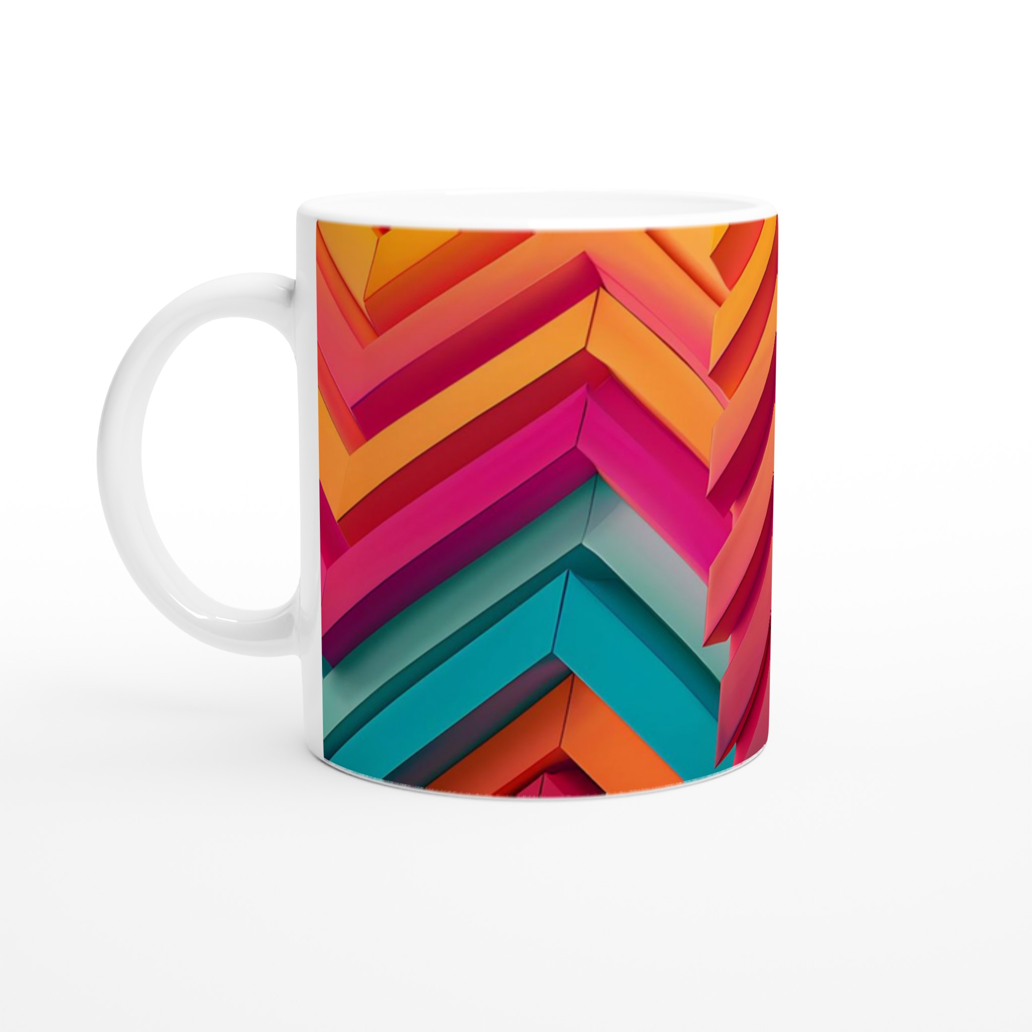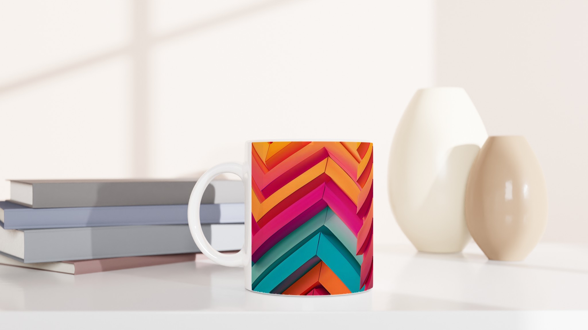 Lyft din vardagsrutin med denna livfulla keramikmugg, inspirerad av dynamiska mönster och en palett av glädjefyllda färger. Perfekt för alla dagens stunder – morgonkaffet, en värmande kopp te eller en härlig varm choklad. Den blanka ytan gör att trycken framträder klart och färgstarkt, vilket gör muggen till en riktig favorit i vardagen. Tack vare den höga kvaliteten behåller trycket sin lyster även efter många omgångar i både mikrovågsugn och diskmaskin.
