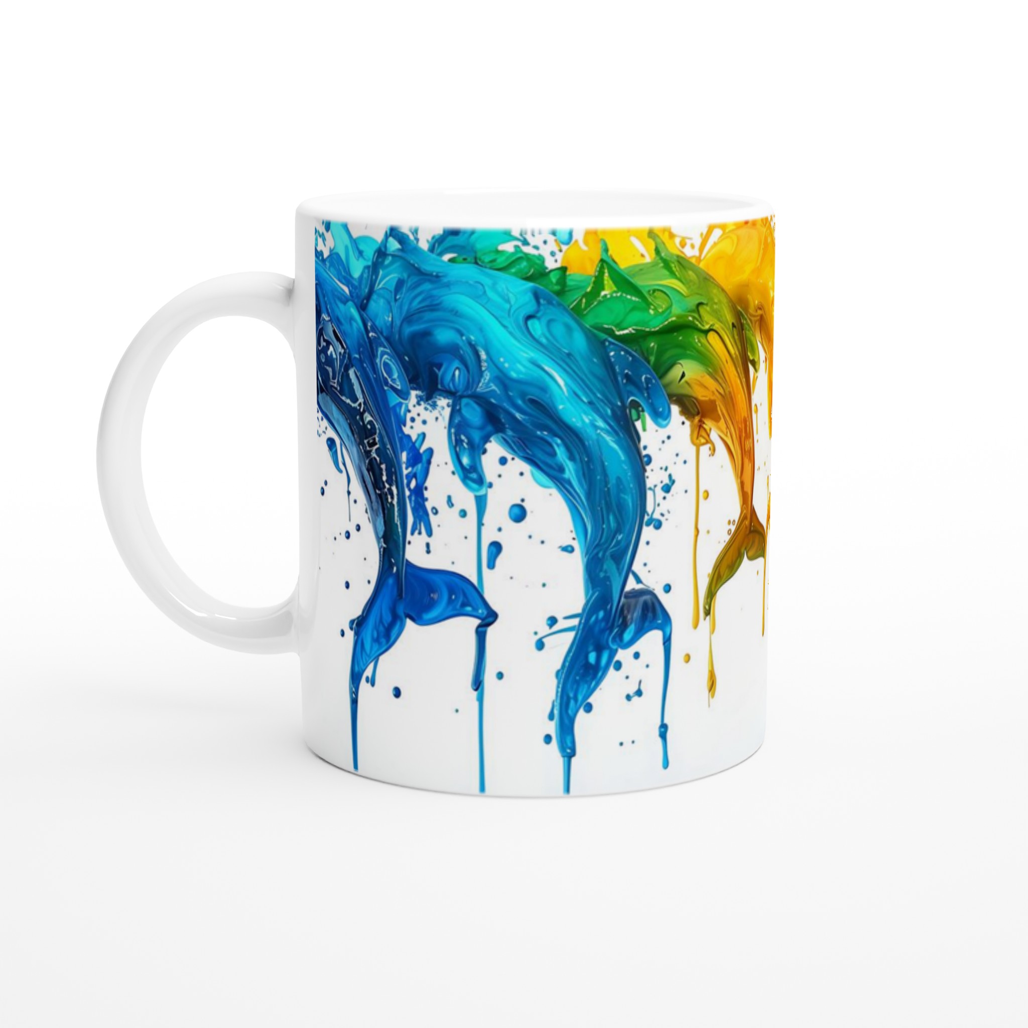 Väck dina sinnen varje morgon med vår ”Färgsprakande Delfinmugg”, inspirerad av havets lekfulla varelser och en explosion av levande färger. Denna 11 oz keramiska mugg är inte bara en dryckesbehållare, utan ett konstverk som fångar glädjen i varje klunk. Välj bland ett spektrum av sju uppfriskande nyanser – klassiskt Ceramic White, soligt Ceramic Yellow, lekfullt Ceramic Pink, fridfullt Ceramic Green, energiskt Ceramic Red, elegant Ceramic Black, eller lugnande Ceramic Blue – och låt din personlighet stråla. En perfekt present för den som älskar färg och unika design.