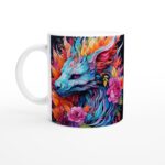 Låt dig förtrollas av denna fantastiska keramiska mugg, prydd med ett majestätiskt, färgsprakande drakmotiv. Varje detalj i det akvarellinspirerade konstverket, från de levande blå och gröna nyanserna till de glödande rosa och orangea tonerna, skapar en känsla av mystik och energi. Denna mugg är mer än bara en kopp – den är en konstnärlig upplevelse som förvandlar varje dryck till ett magiskt ögonblick, perfekt för den som älskar fantasy och unika design.