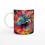 Väck din inre mystiker varje morgon med denna unika keramiska mugg, prydd med ett majestätiskt akvarellmotiv av två sammankopplade drakar i en explosion av levande färger. Denna mugg blir snabbt en vardagsfavorit, perfekt för morgonkaffet, kvällens varma choklad eller när du bara vill njuta av en kopp te. Den blanka vita ytan ser till att de intensiva trycken framhävs med klara och levande färger, som håller sig fina även efter många turer i mikron och diskmaskinen.