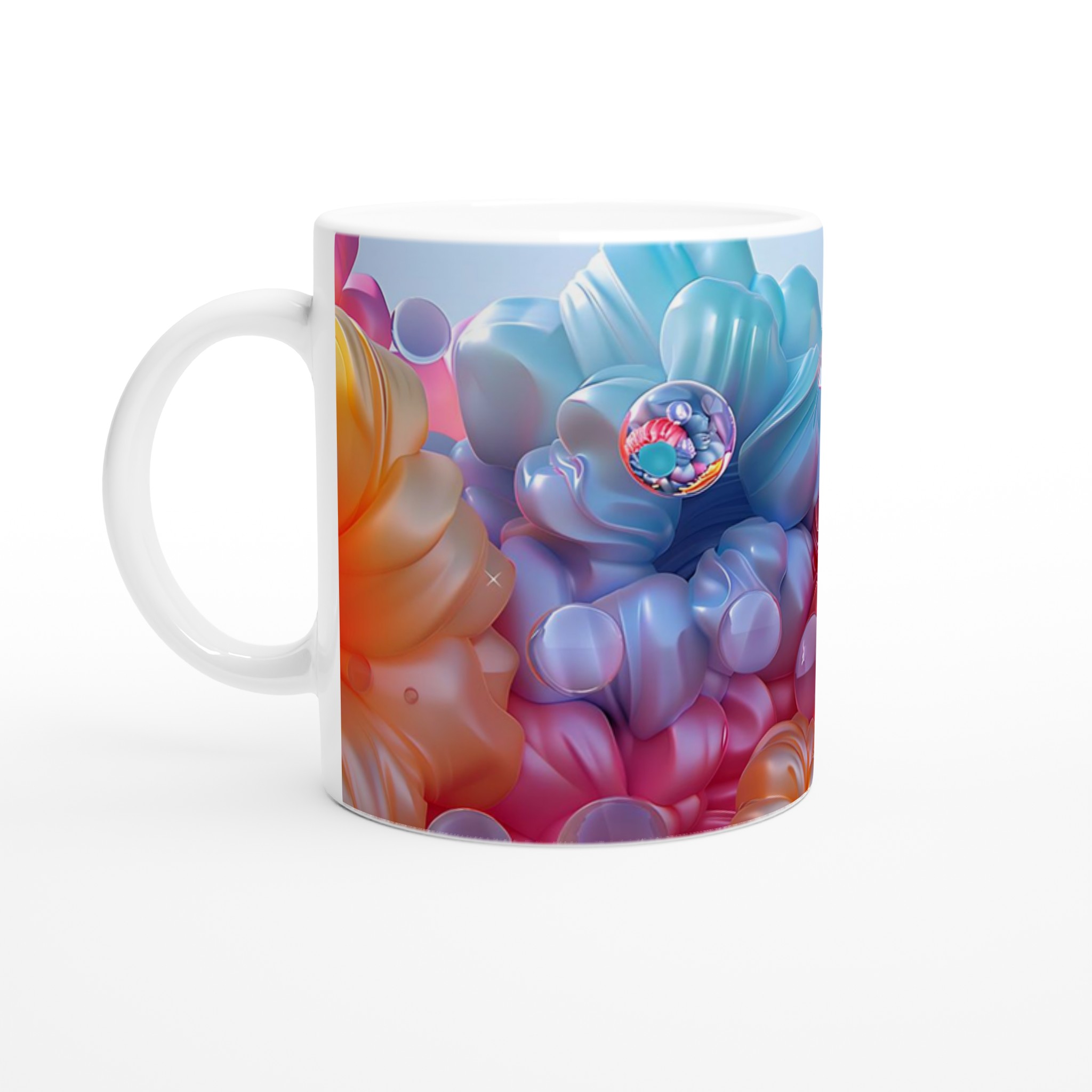 Inspirerad av den lekfulla, livfulla paletten av mjuka pasteller och drömska former, är denna mugg en hyllning till glädje och kreativitet. Den blanka vita ytan ger ett skarpt och levande tryck som verkligen sticker ut, oavsett om det är en personlig design, ett roligt citat eller en present till någon du tycker om.