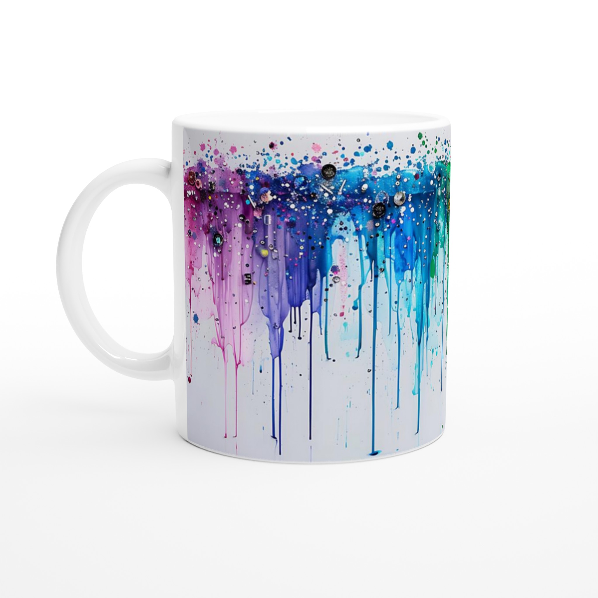 Inspirerad av konstens fria flöde och regnbågens livfulla palett, ger denna mugg varje dag en dos glädje. Den blanka vita ytan ger ett skarpt och levande tryck som verkligen sticker ut, oavsett om det är en personlig design, ett roligt citat eller en present till någon du tycker om. Varje sipp blir en upplevelse, omsluten av färg och kreativitet.