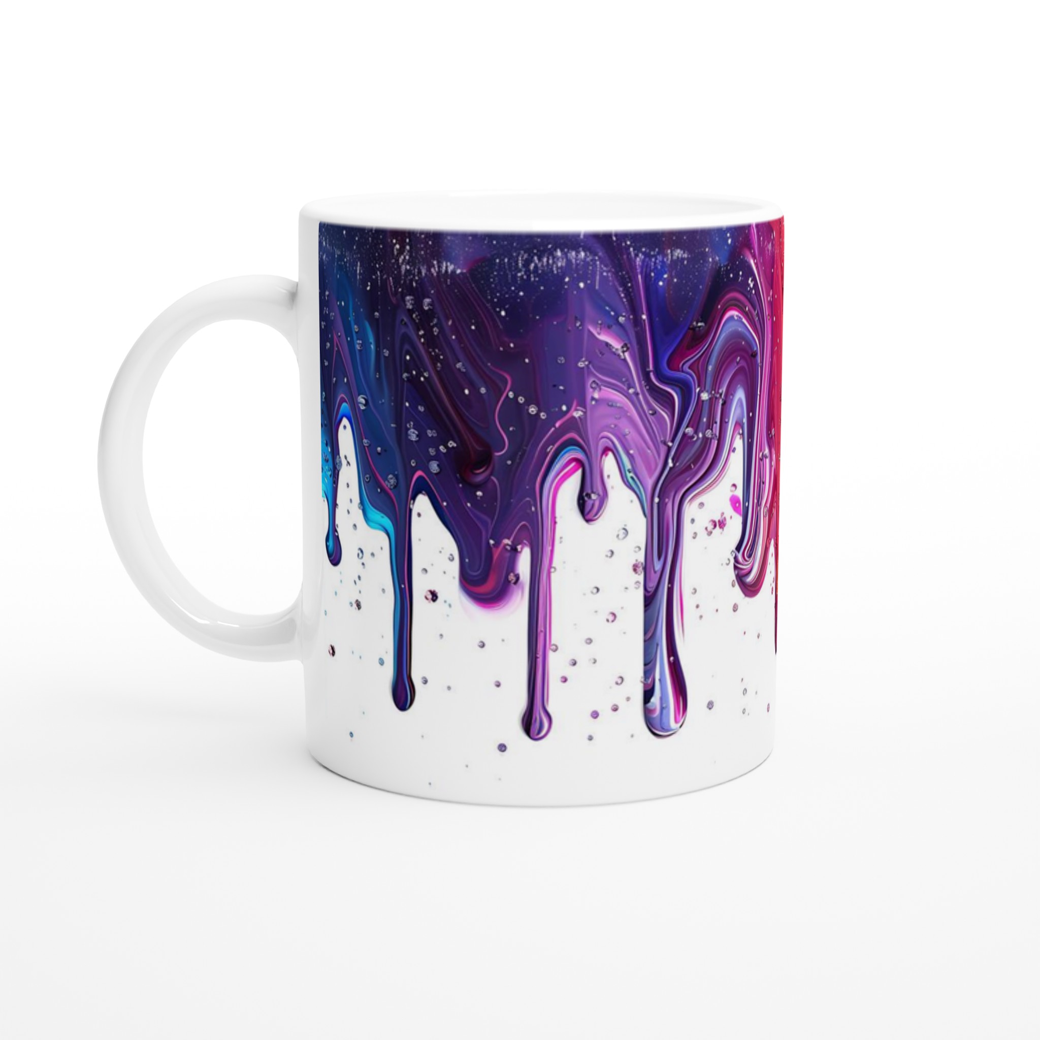 Den blanka vita ytan ger ett skarpt och levande tryck som verkligen sticker ut, oavsett om det är en personlig design, ett roligt citat eller en present till någon du tycker om. Inspirerad av regnbågens livfulla energi och glädje, blir denna mugg en explosion av färg som piggar upp varje fikapaus. Föreställ dig hur din favoritdryck blir ännu mer uppfriskande i en mugg som strålar av dynamiska färger och lekfulla bubblor!