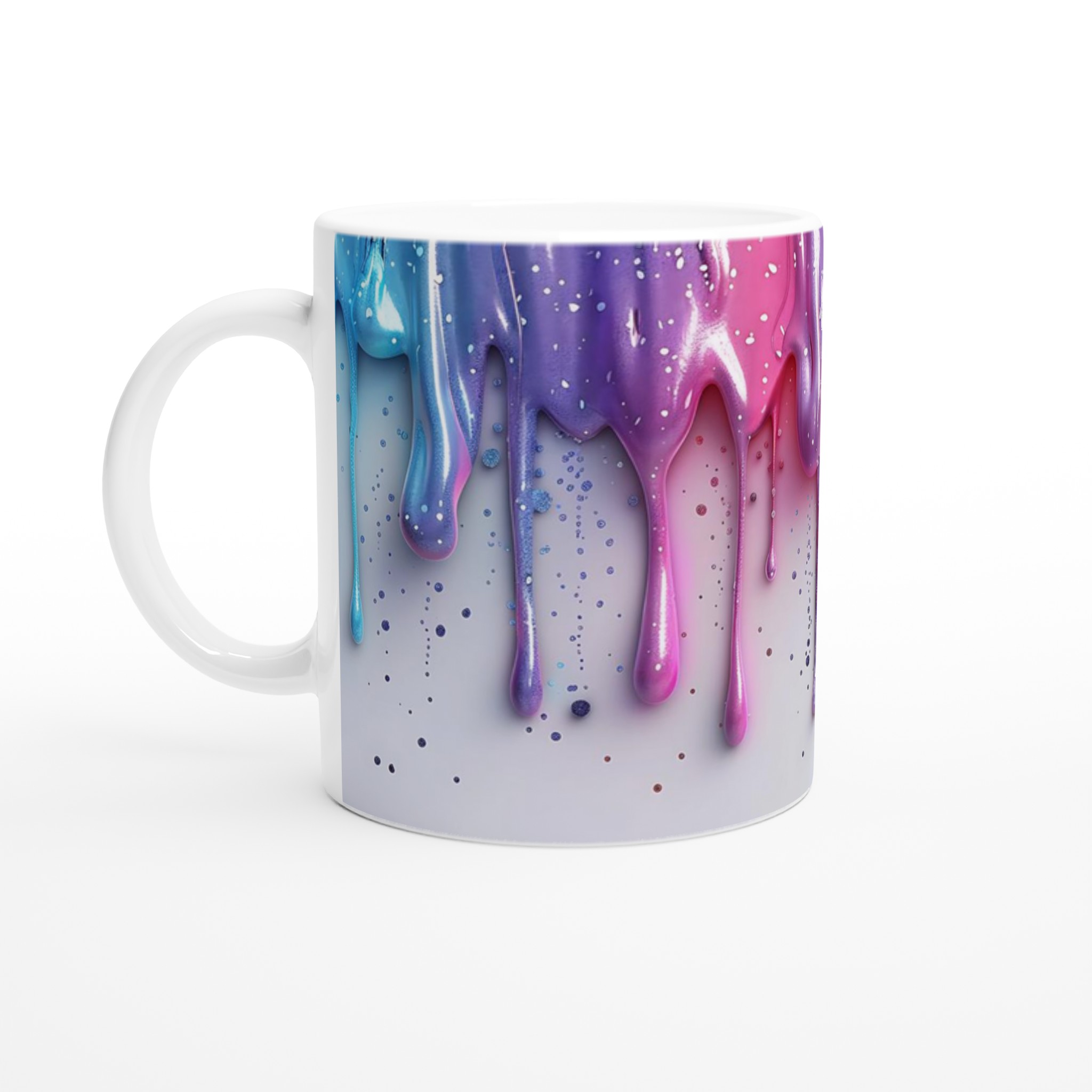 Den blanka vita ytan ger ett skarpt och levande tryck som verkligen sticker ut, oavsett om det är en personlig design, ett roligt citat eller en present till någon du tycker om. Inspirerad av regnbågens glädje och smältande pastellfärger, kan du nu välja en mugg som perfekt matchar din personlighet eller inredning. Låt varje sipp ta dig till en värld av färg och fantasi!
