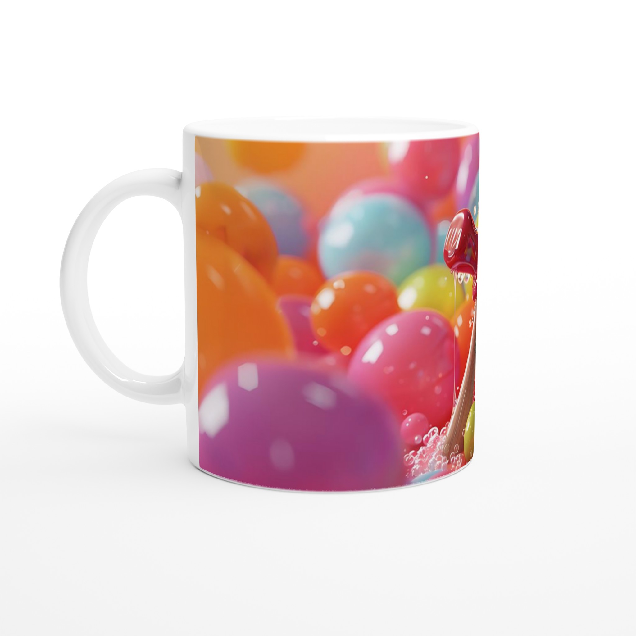 Den blanka vita ytan ger ett skarpt och levande tryck som verkligen sticker ut, oavsett om det är en personlig design, ett roligt citat eller en present till någon du tycker om. Inspirerad av en värld av livfulla färger och lekfull glädje, är denna mugg designad för att addera en explosion av färg till din vardag.