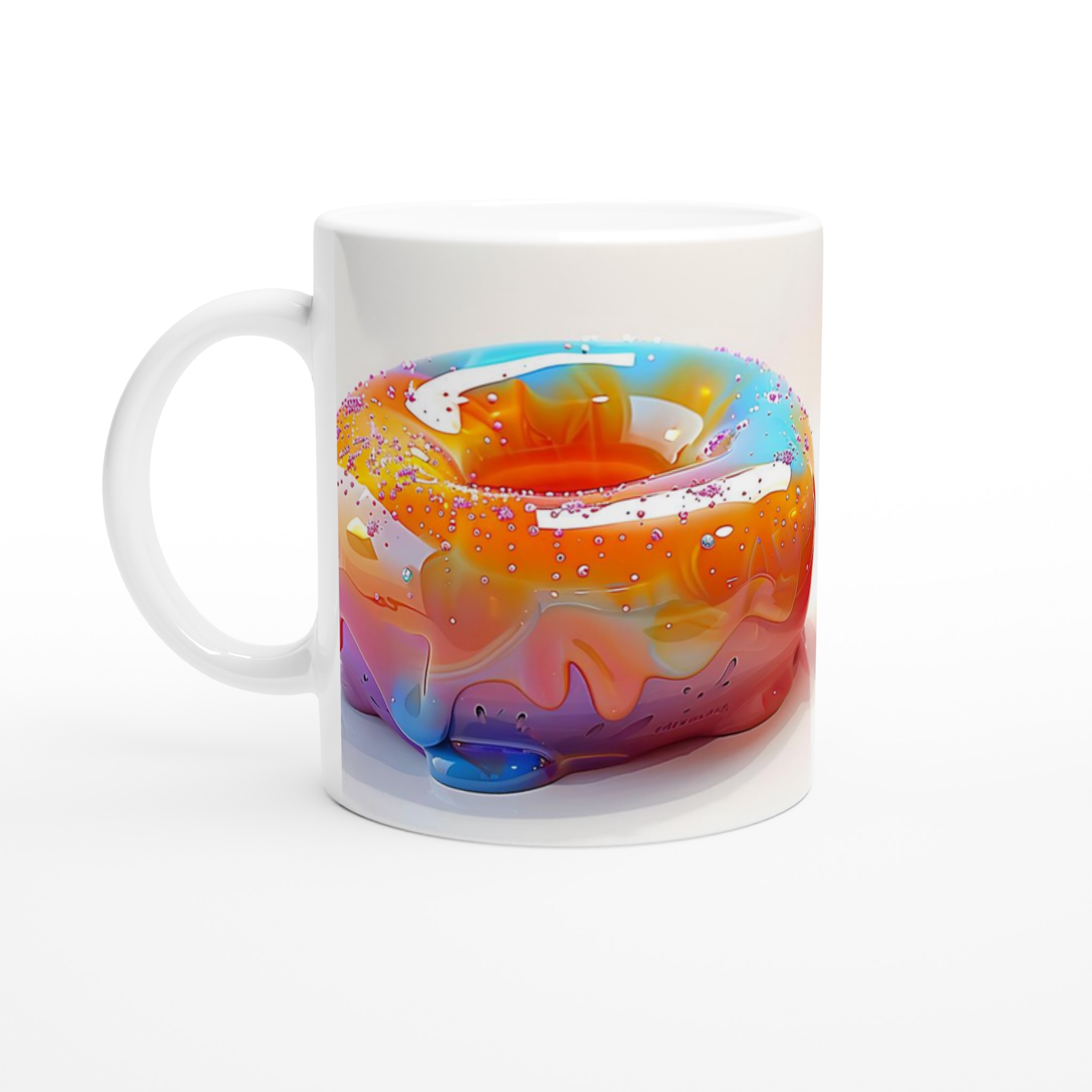 Inspirerad av lekfulla färgblandningar och en känsla av glädje, blir denna mugg en explosion av personlighet. Den blanka vita ytan ger ett skarpt och levande tryck som verkligen sticker ut, oavsett om det är en personlig design, ett roligt citat eller en present till någon du tycker om.
