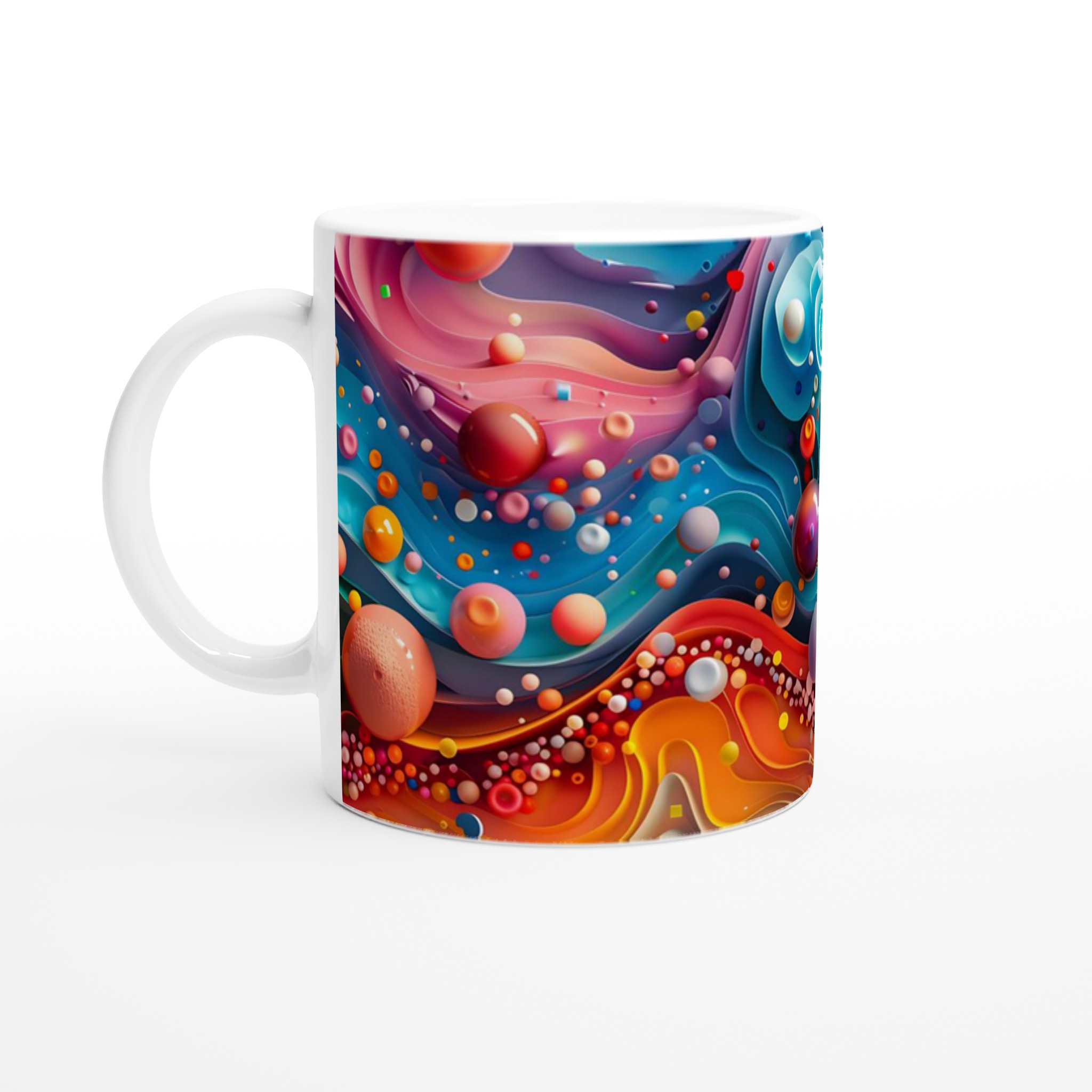 Inspirerad av en magisk värld av svävande former och en explosion av glädjefyllda färger, är denna mugg den perfekta duken för dina mest fantasifulla designer. Den blanka vita ytan ger ett skarpt och levande tryck som verkligen sticker ut, oavsett om det är en personlig design, ett roligt citat eller en present till någon du tycker om. Välj mellan en palett av sju livfulla keramikfärger – från klassisk vit till energisk gul, lugnande blå eller lekfull rosa – för att perfekt matcha din vision och addera en skvätt personlighet till varje sip.