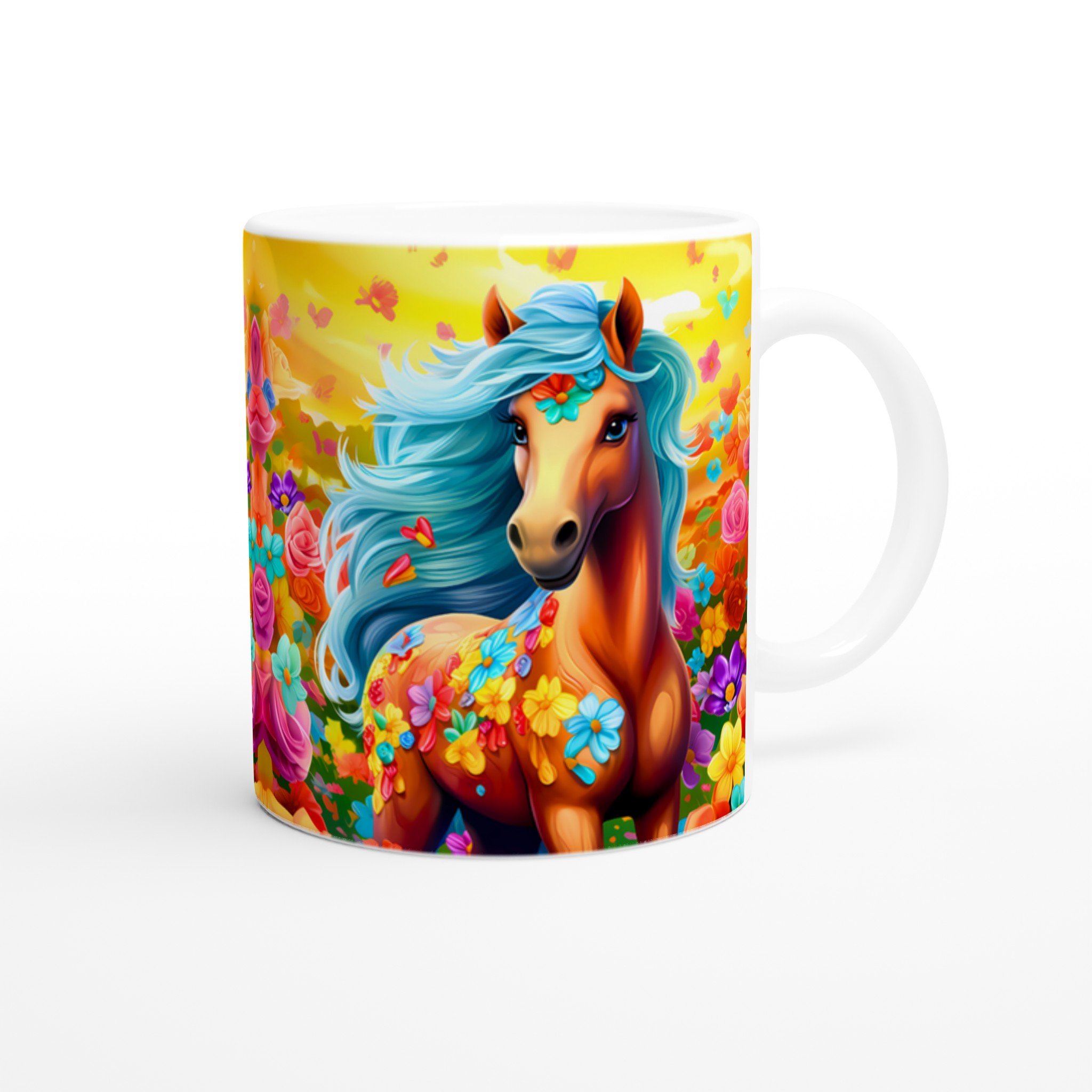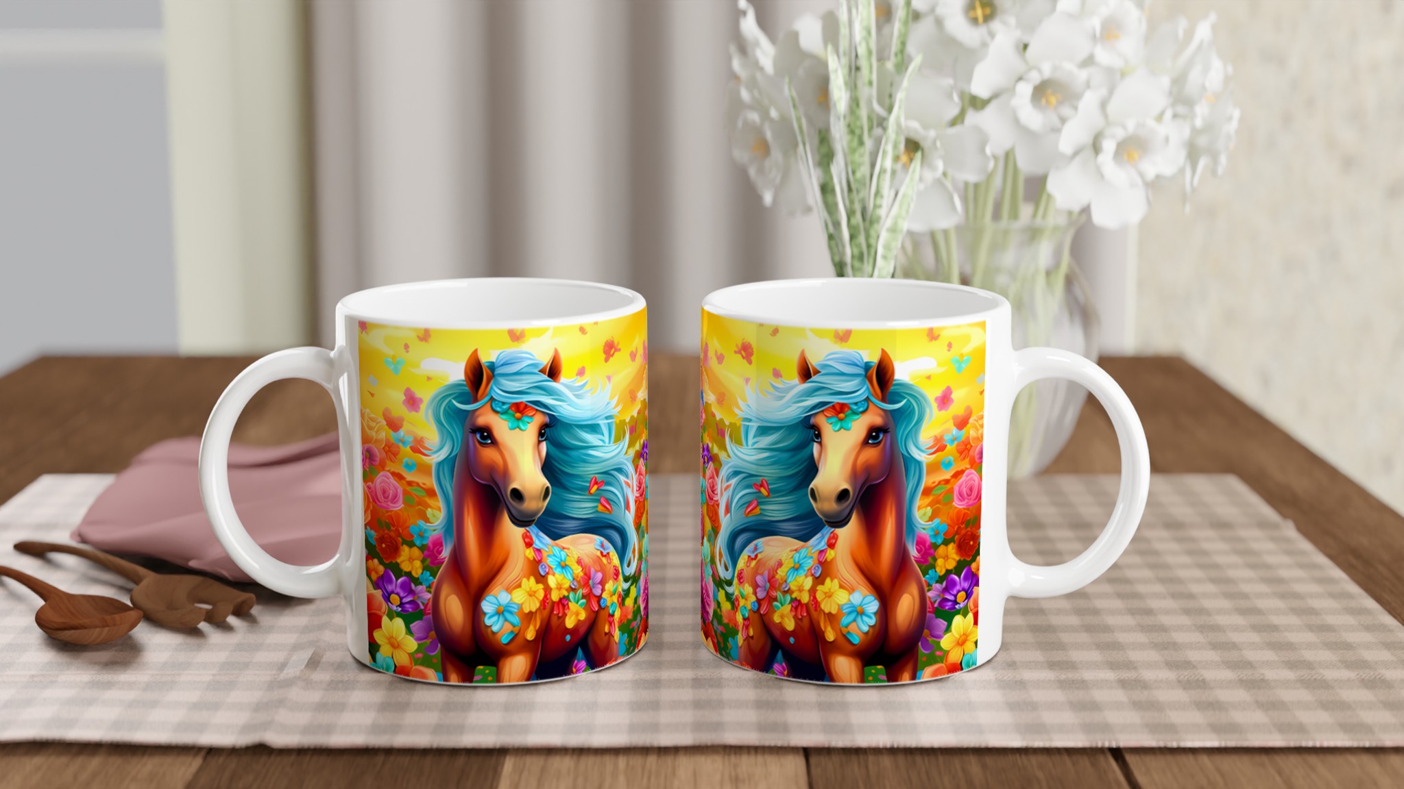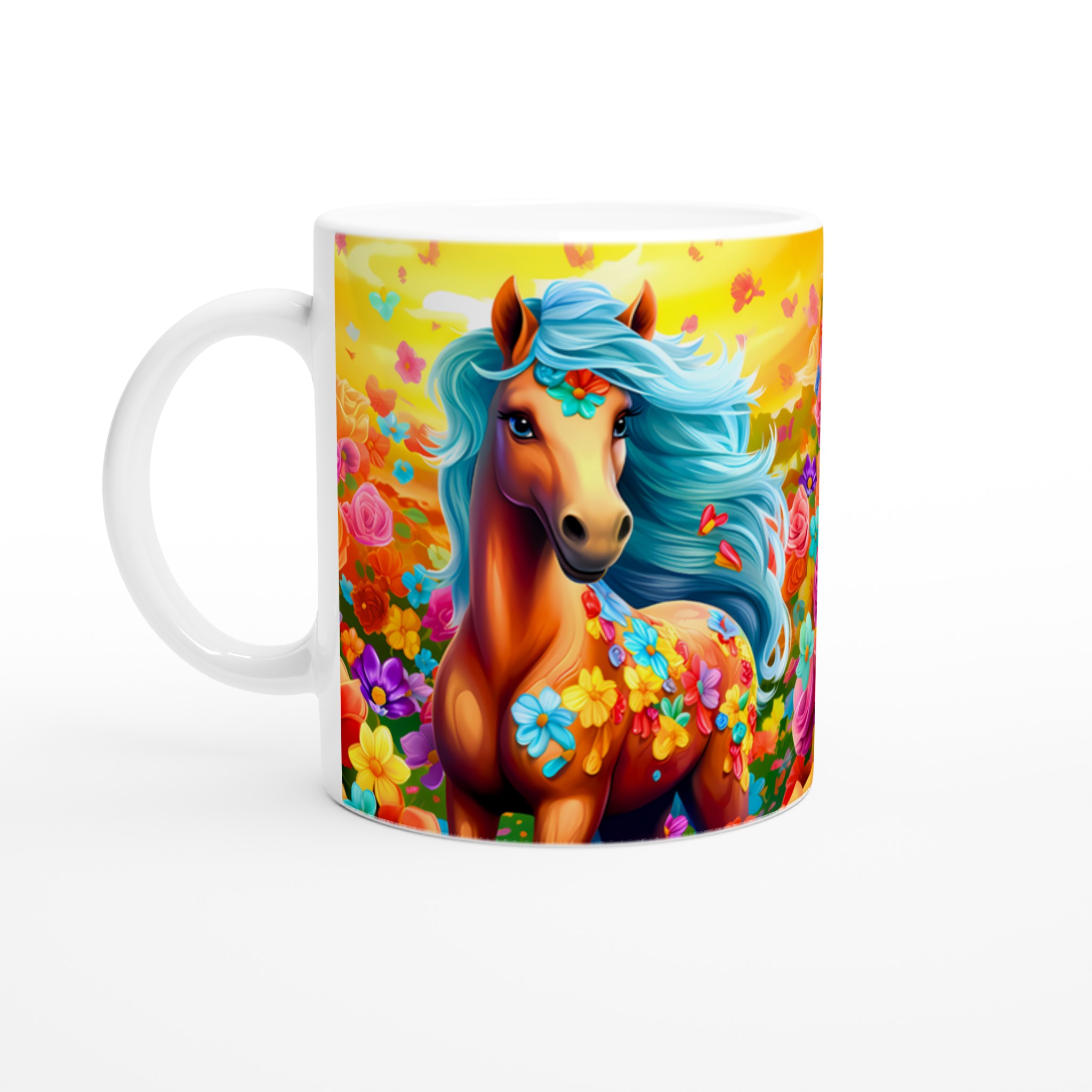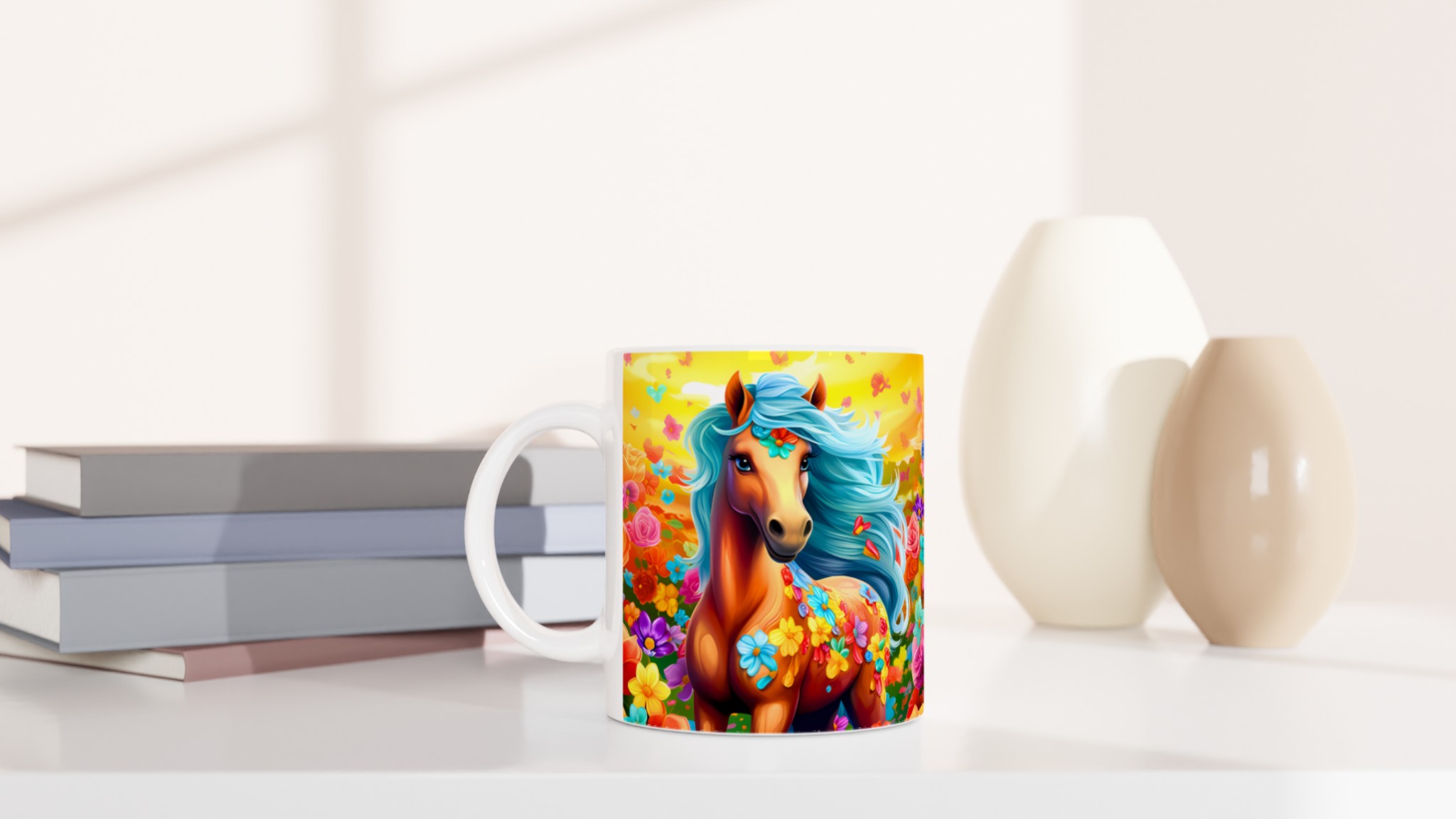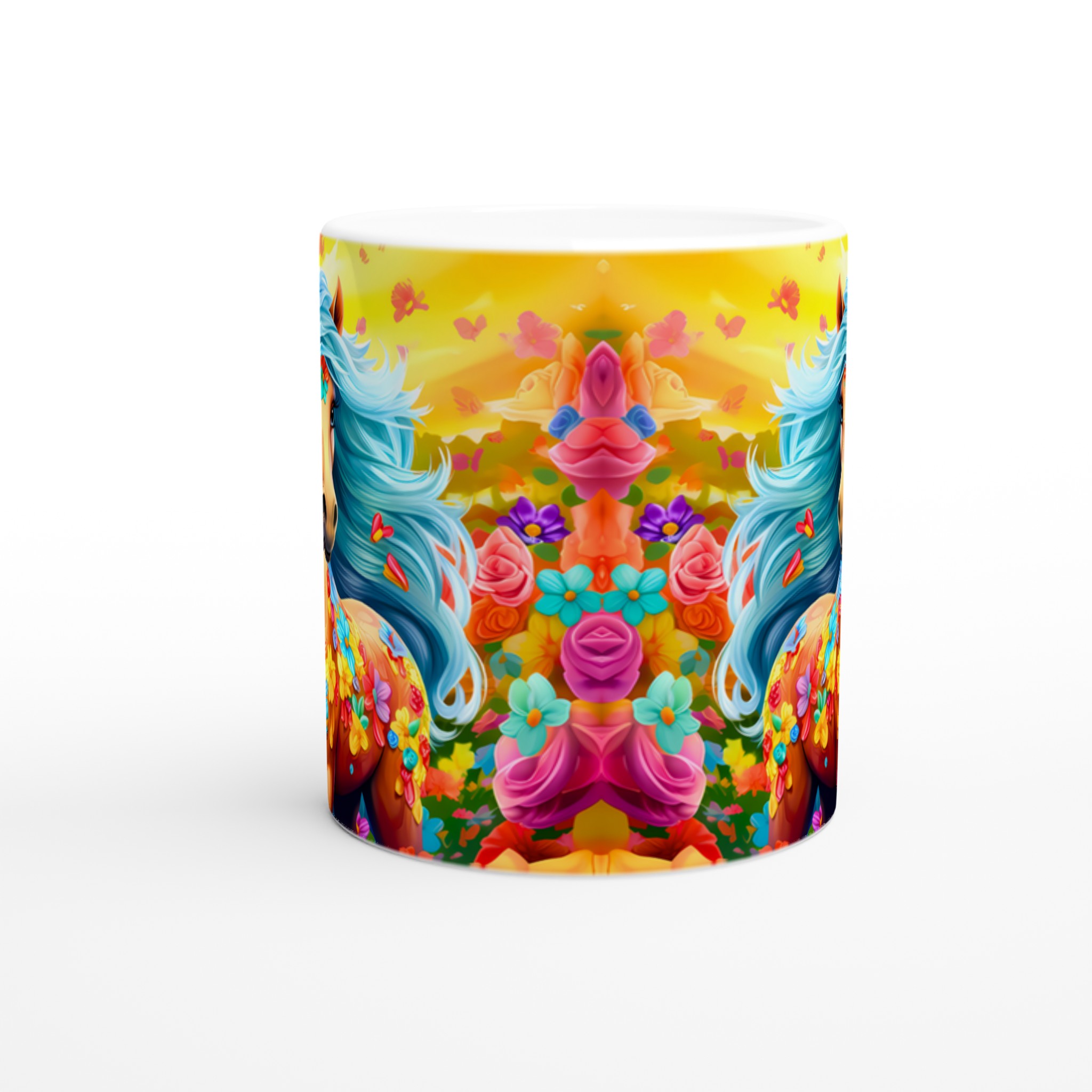 Låt varje klunk bli en resa till en förtrollad värld med vår färgsprakande keramiska enhörningsmugg. Inspirerad av bilden med dess lekfulla, blomsterprydda hästar och levande färger, är denna mugg mer än bara en dryckesbehållare – den är ett konstverk som lyser upp din dag. Perfekt för morgonkaffet, en lugnande kvällsté eller när du bara vill drömma dig bort. Den blanka vita ytan låter det magiska trycket framträda med otrolig klarhet och djup, och behåller sin charm genom otaliga mikro- och diskmaskinsturer.