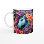 Låt fantasin flöda med denna förtrollande keramiska mugg, prydd med ett majestätiskt enhörningsmotiv i en explosion av livfulla färger. Denna mugg är inte bara en dryckesbehållare, utan ett konstverk som lyser upp varje ögonblick – perfekt för ditt morgonkaffe, en lugnande kvällschoklad eller en stunds avkoppling med te. De klara, regnbågsfärgade nyanserna framträder fantastiskt mot den blanka vita ytan och behåller sin magiska lyster, även efter otaliga rundor i mikrovågsugnen och diskmaskinen.
