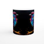 Väck dina sinnen varje morgon med denna iögonfallande keramikmugg, prydd med ett explosion av färg som föreställer en magnifik fågel i akvarellstil. De livfulla nyanserna av turkos, magenta och gult mot den svarta bakgrunden skapar en dynamisk och konstnärlig känsla som förvandlar varje dryckesstund till en upplevelse. Oavsett om det är till ditt morgonkaffe, en lugnande kopp te eller en festlig varm choklad, kommer denna mugg att lysa upp din dag och addera en konstnärlig touch till ditt hem eller kontor.
