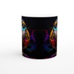 Väck dina sinnen varje dag med vår färgsprakande keramiska mugg, som stoltserar med ett konstfullt tryck av en vibrerande fågel mot en mörk bakgrund, omgiven av lekfulla, stänkande färger. Denna mugg är inte bara en behållare för din favoritdryck, utan ett litet konstverk som lyser upp din morgonrutin, fikastund eller kvällste.