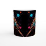 Fånga dagen med denna livfulla keramikmugg som sprudlar av färg! Med ett akvarellinspirerat motiv av en fågel mot en dramatisk bakgrund av färgstänk, blir varje dryckesstund en konstupplevelse. Denna mugg är perfekt för alla som älskar unik design och vill addera en kreativ touch till sin vardag – oavsett om det är för morgonkaffet, en värmande kopp te eller en härlig varm choklad.
