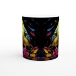 Väck din inre konstnär varje morgon med denna fantastiska keramikmugg! Prydd med en livfull illustration av en färgsprakande fågel, vars lysande fjäderdräkt i regnbågens alla nyanser – från djupaste turkos till glödande rött och solgult – garanterat lyser upp din dag. Denna mugg är en hyllning till naturens skönhet och konstens kraft att inspirera, perfekt för dig som älskar unika detaljer i vardagen.