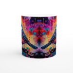 Låt din morgonkaffe eller eftermiddagste flyga högt med vår fantastiska keramikmugg, prydd med en förtrollande och färgsprakande fågelkonst. Denna mugg är inte bara ett kärl för din favoritdryck, utan en explosion av livfulla färger – från djupt turkos och azurblått till brinnande orange och kungligt lila – som garanterat lyser upp din dag. Den detaljerade, nästan emaljliknande designen fångar essensen av naturens skönhet i en modern, konstnärlig stil.