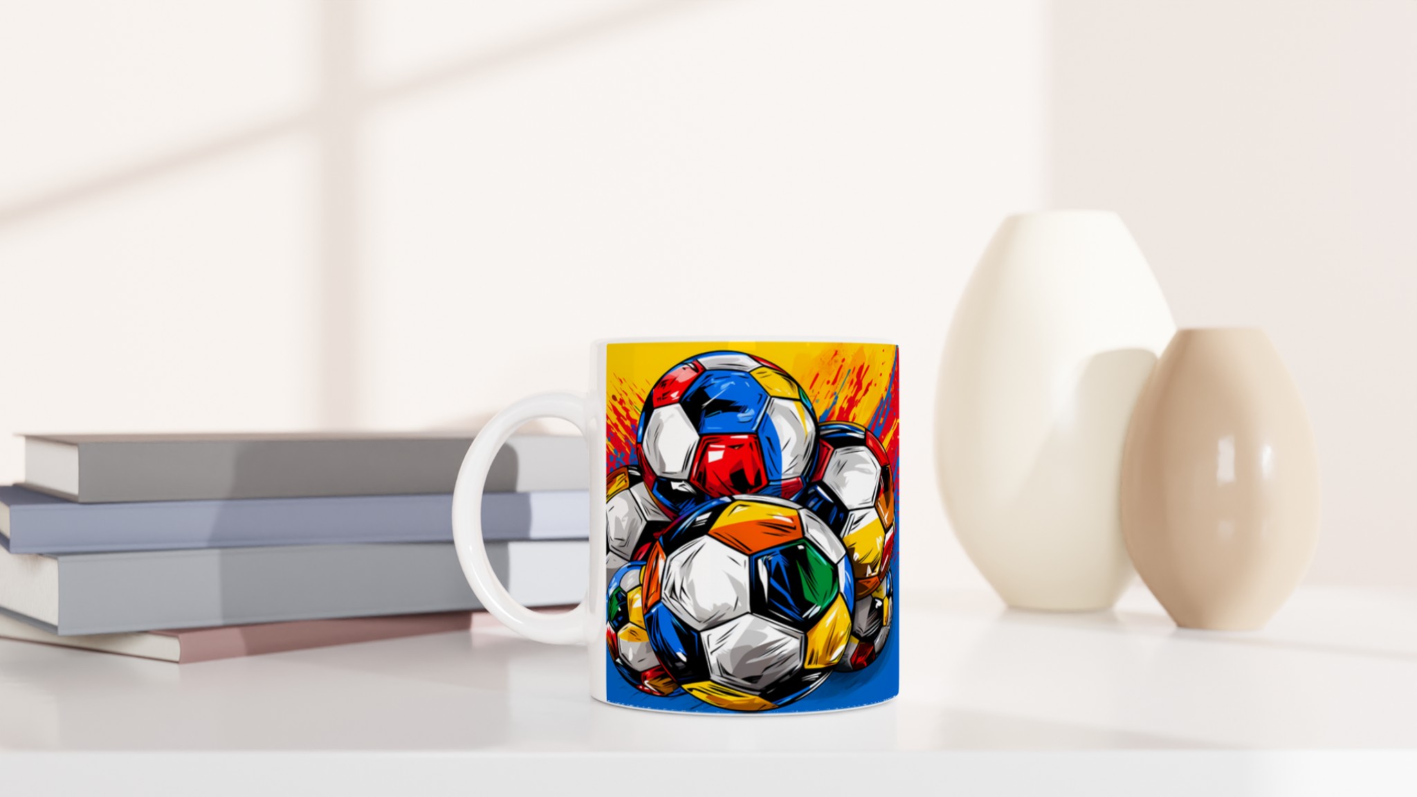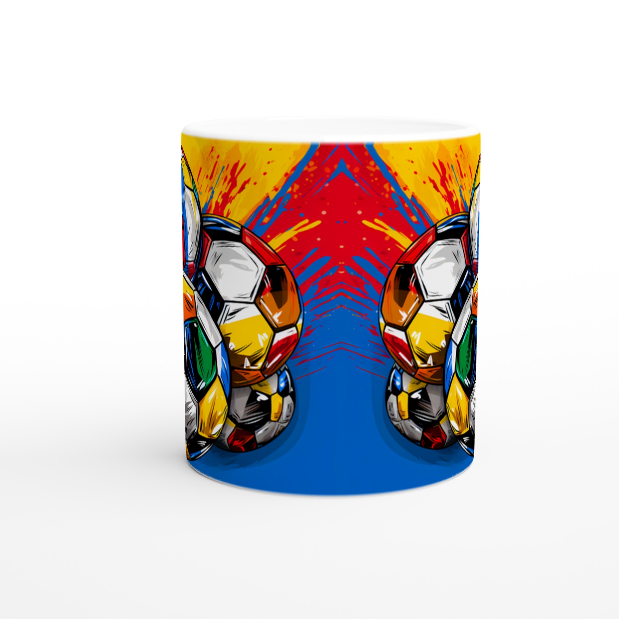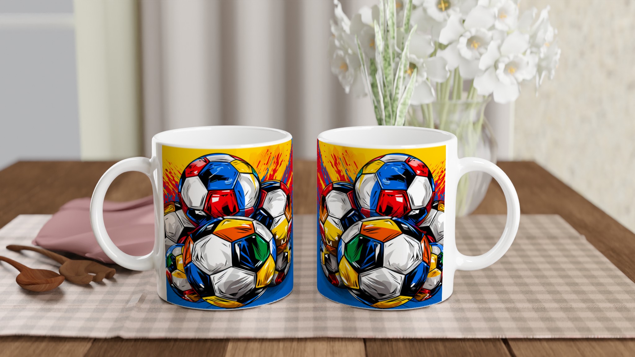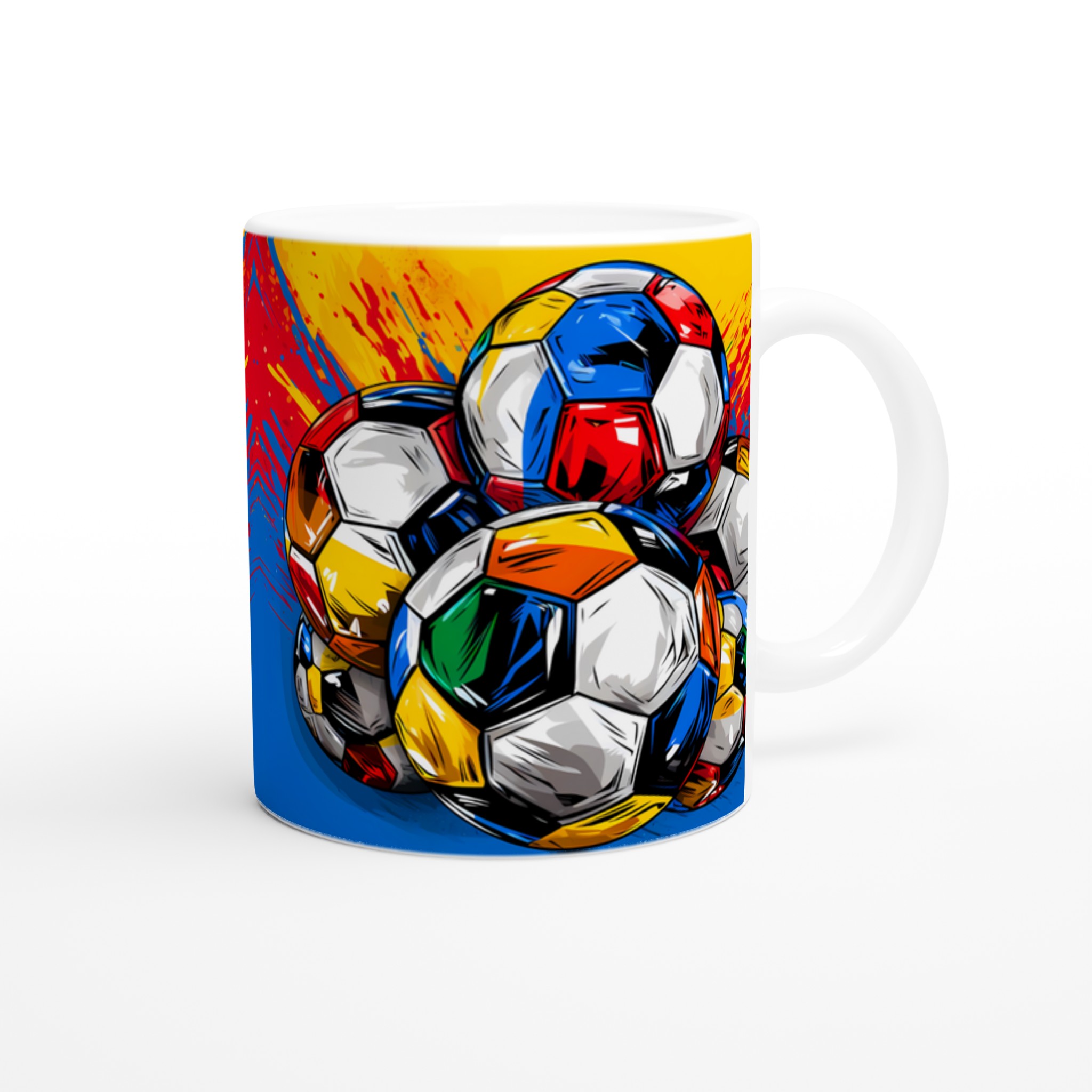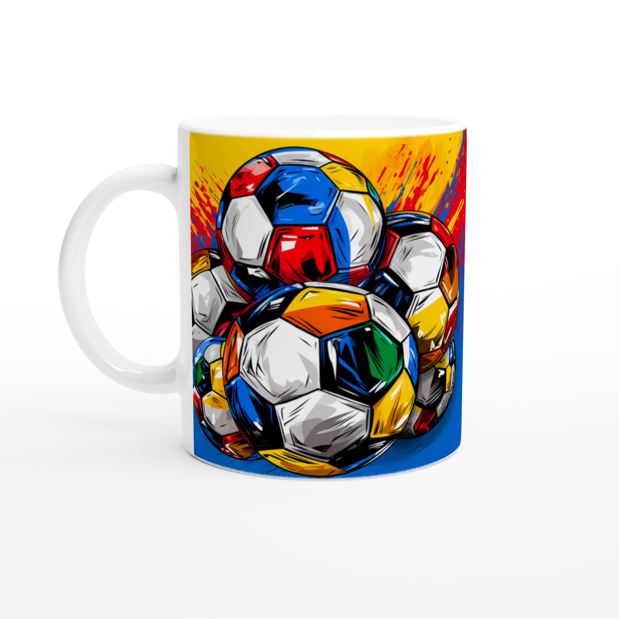Kickstarta dagen med en explosion av färg och energi! Denna iögonfallande keramiska mugg, prydd med livfulla fotbollsmotiv och dynamiska färgstänk, är designad för alla som älskar sport och stil. Den blir snabbt en favorit, perfekt för morgonkaffet, kvällens varma choklad, eller när du bara vill njuta av en kopp te medan du drömmer om nästa match.