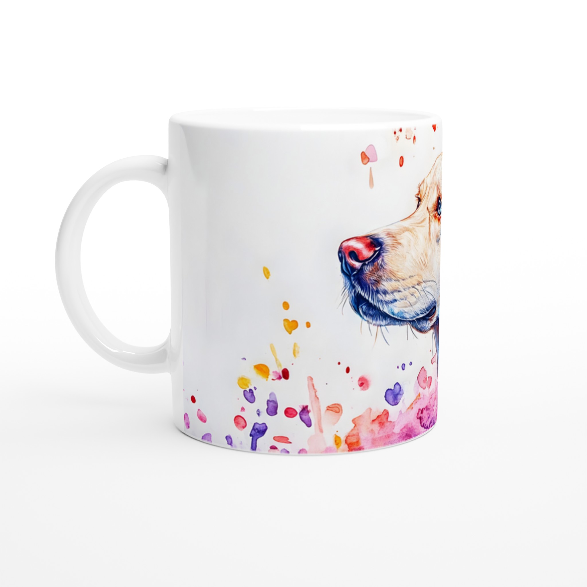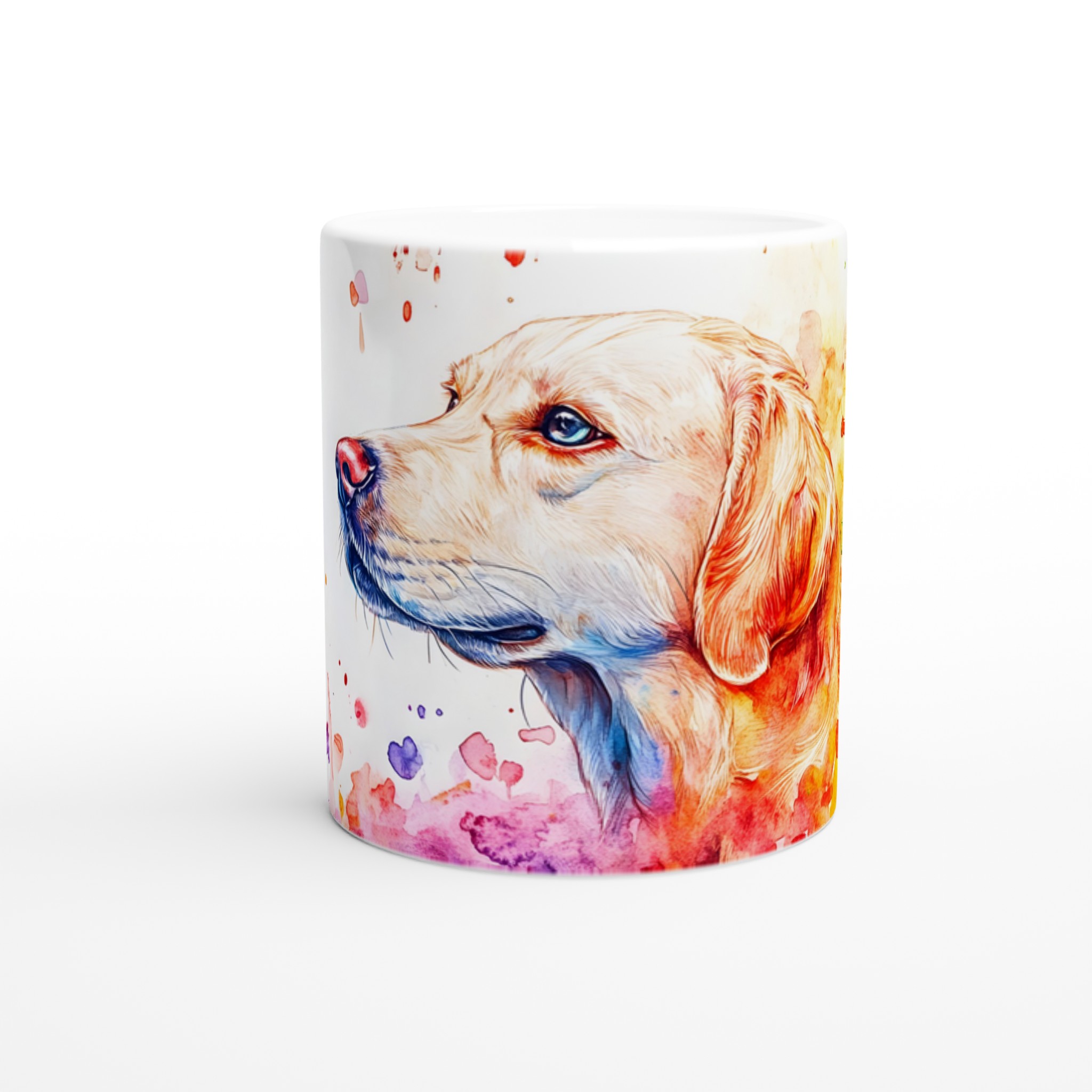 Lys upp din dag med denna underbara keramiska mugg, prydd med en levande akvarellmålning av en Golden Retriever. De glada färgstänkarna och den mjuka, konstnärliga stilen fångar hundens själfulla blick och sprider en känsla av värme och glädje. Denna mugg är inte bara ett kärleksfullt konstverk, utan också den perfekta följeslagaren för dina favoritdrycker – vare sig det är morgonkaffet, en värmande kopp te eller en härlig varm choklad.