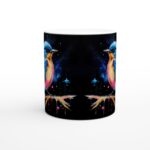Väck dina sinnen varje morgon med denna unika keramikmugg, prydd med ett explosion av färg och livfull graffiti-konst föreställande en stilig korp. Denna mugg är inte bara ett kärl för din favoritdryck, utan ett konstverk som lyfter din vardag med sin djärva och moderna estetik. De intensiva färgerna framträder brilliant mot den blanka vita ytan, vilket gör varje klunk till en upplevelse.