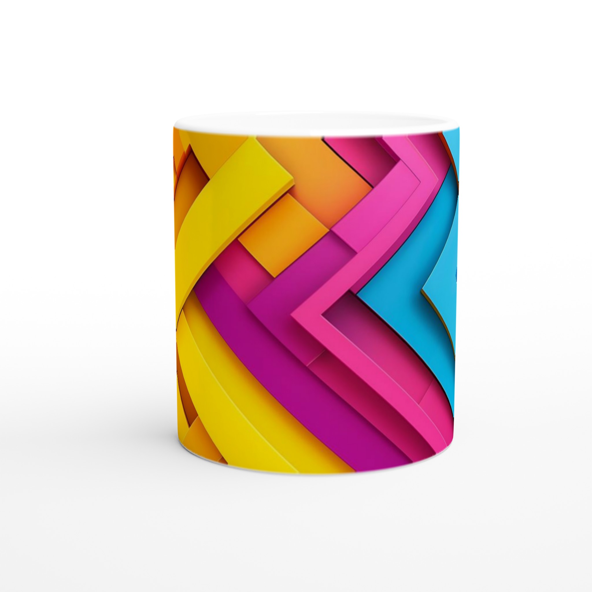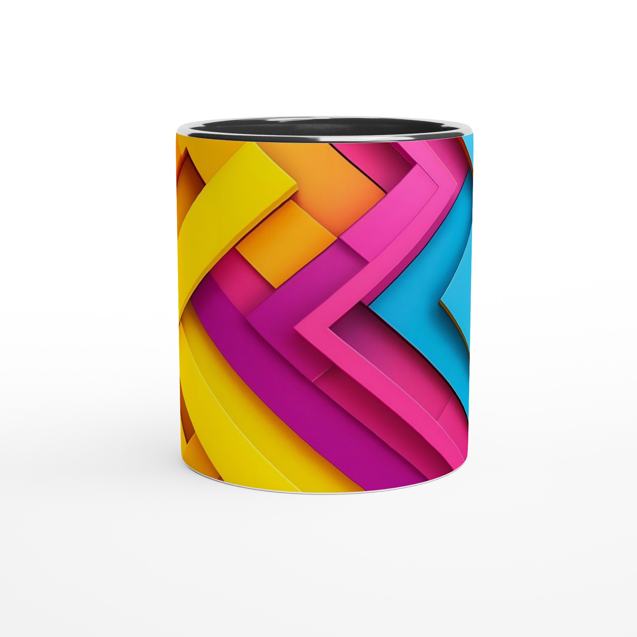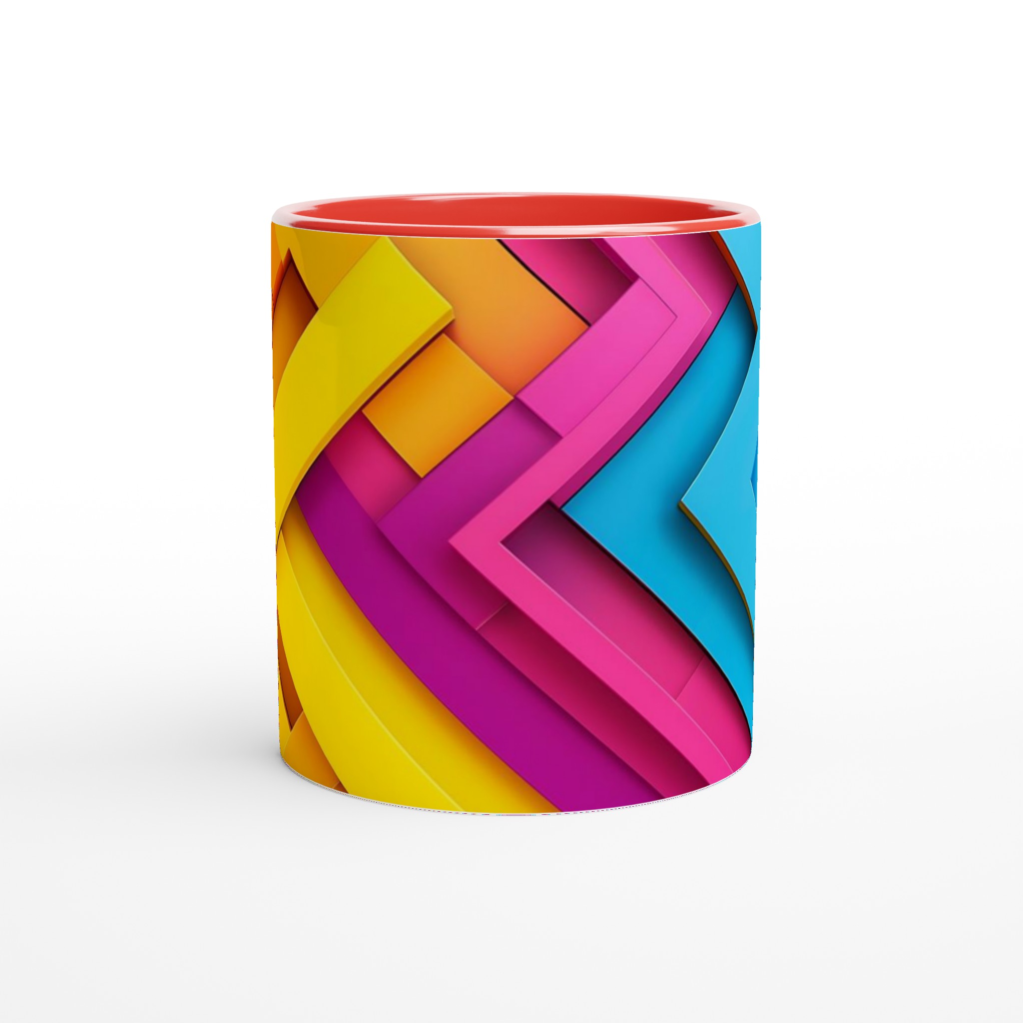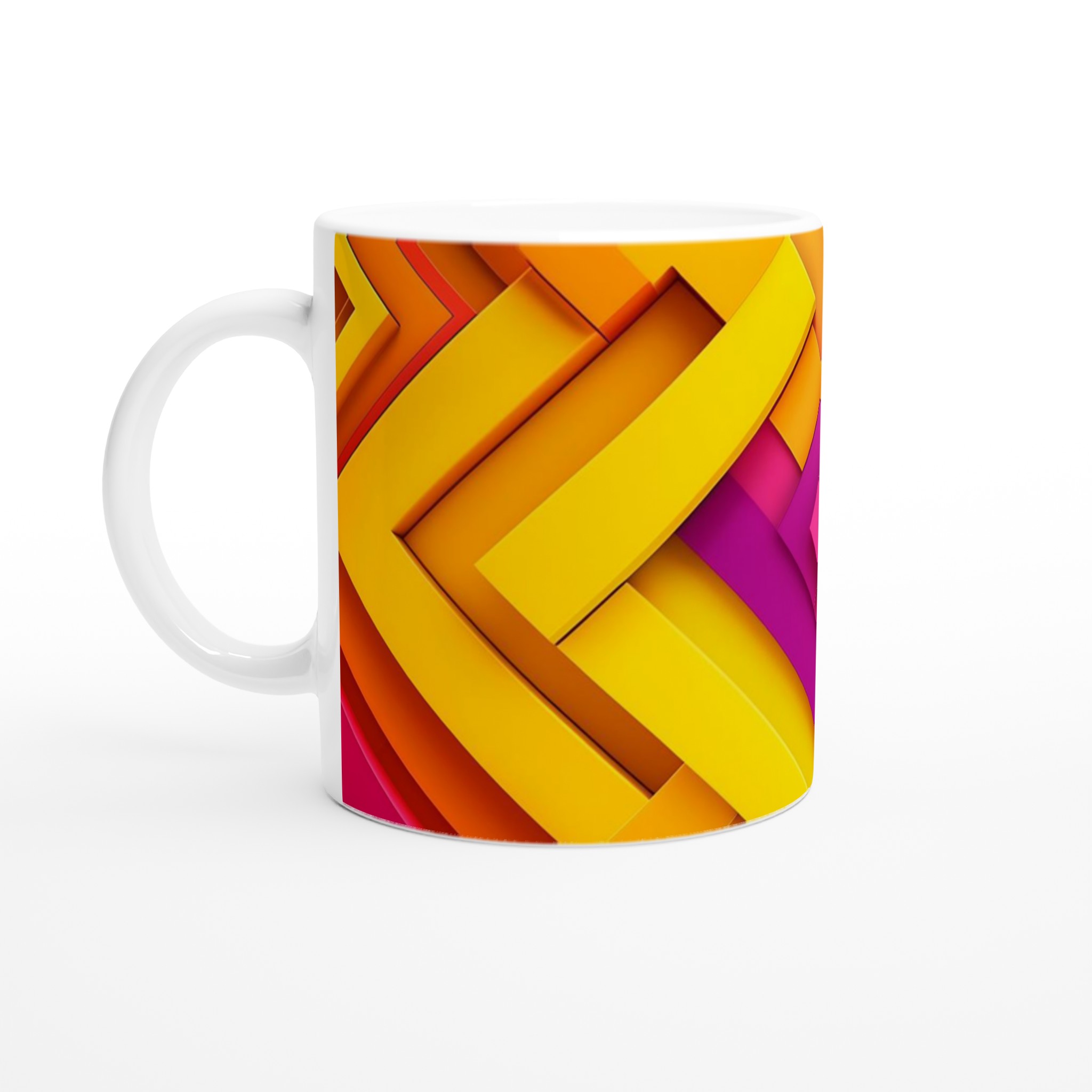 Väck dina morgnar till liv med denna iögonfallande keramikmugg, prydd med ett dynamiskt grafiskt mönster i livfulla nyanser av gult, orange, fuchsia och blått. Dess stilrena och vackra design gör den till den perfekta följeslagaren för alla dagens stunder – oavsett om det är morgonkaffet, en värmande kopp te eller en härlig varm choklad. Den blanka ytan gör att de färgstarka trycken framträder klart och tydligt, vilket gör muggen till en riktig favorit i vardagen.